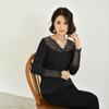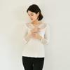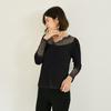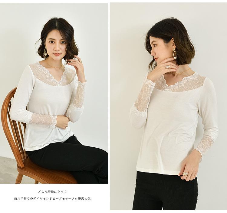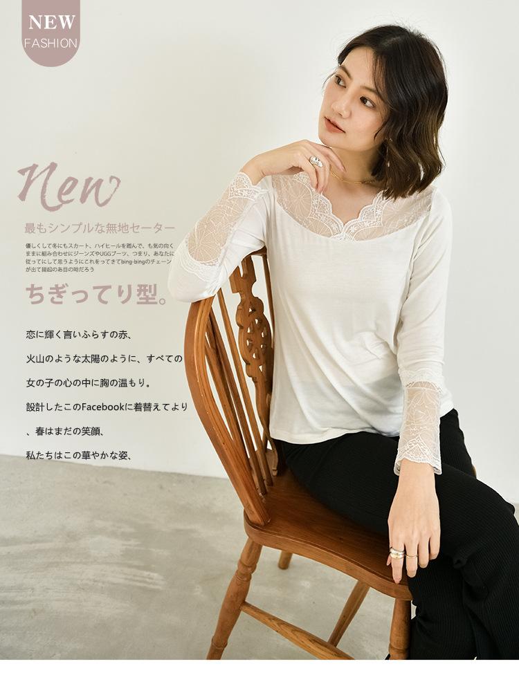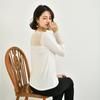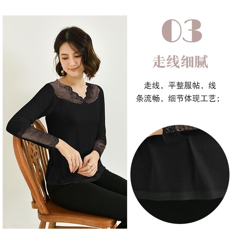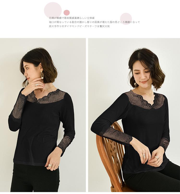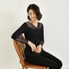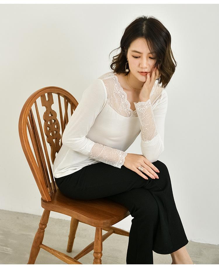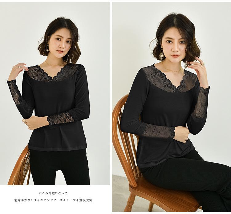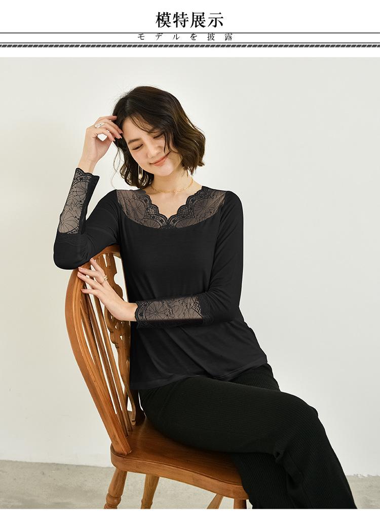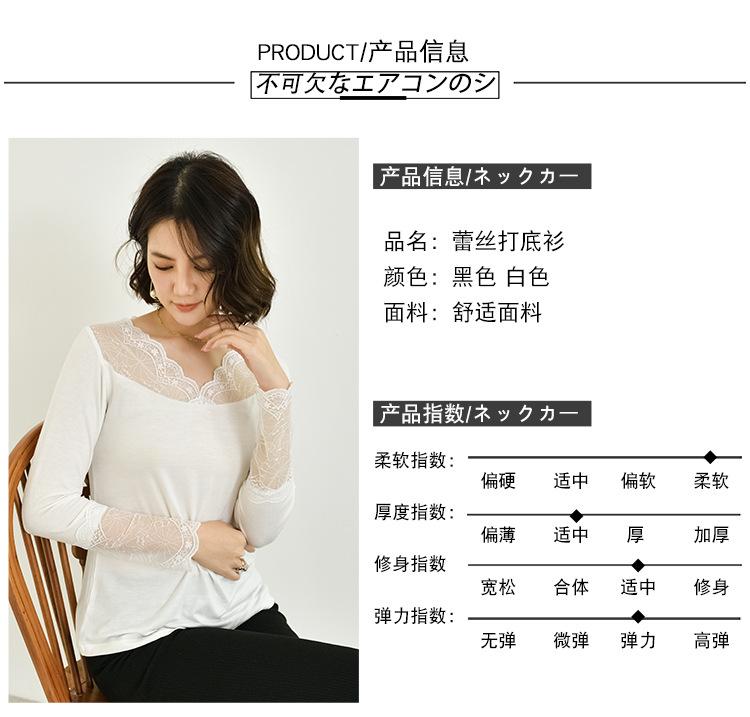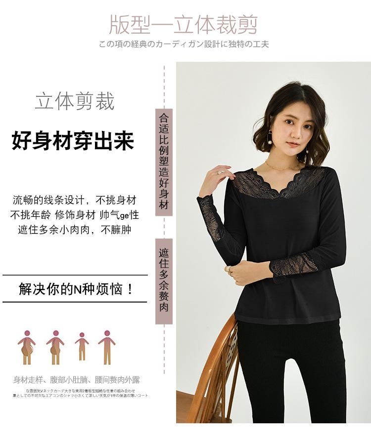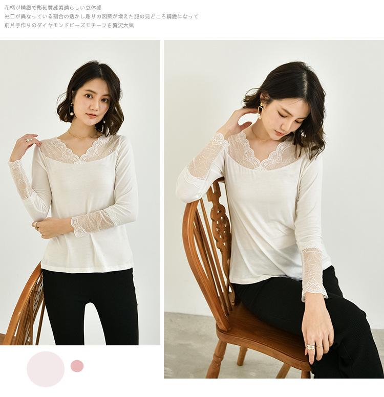 Camiseta elegante de manga larga estilo coreano de primavera y verano con costuras de encaje y base modal, blusa de mujer con cuello en V, color liso, combinable con todo.