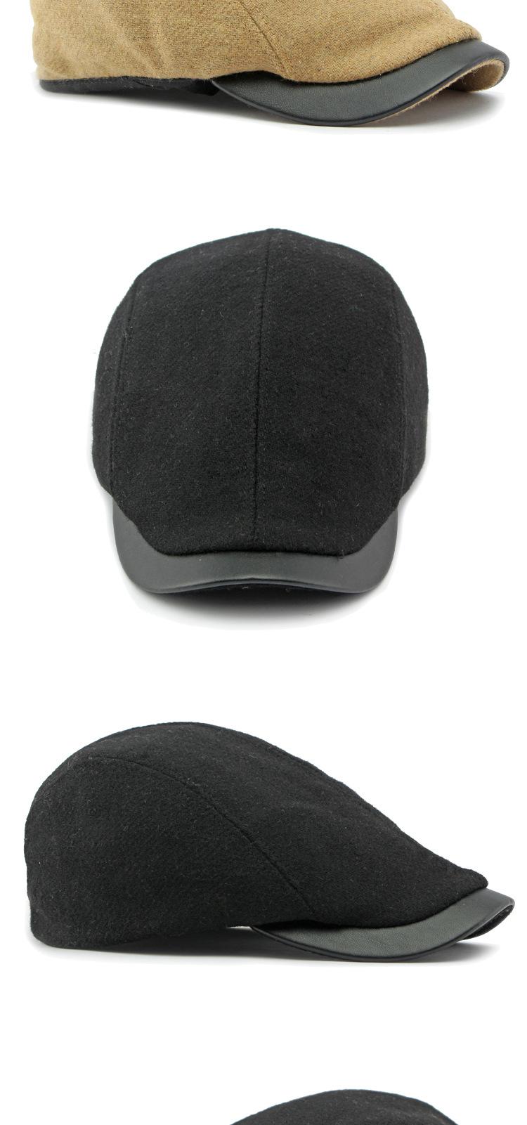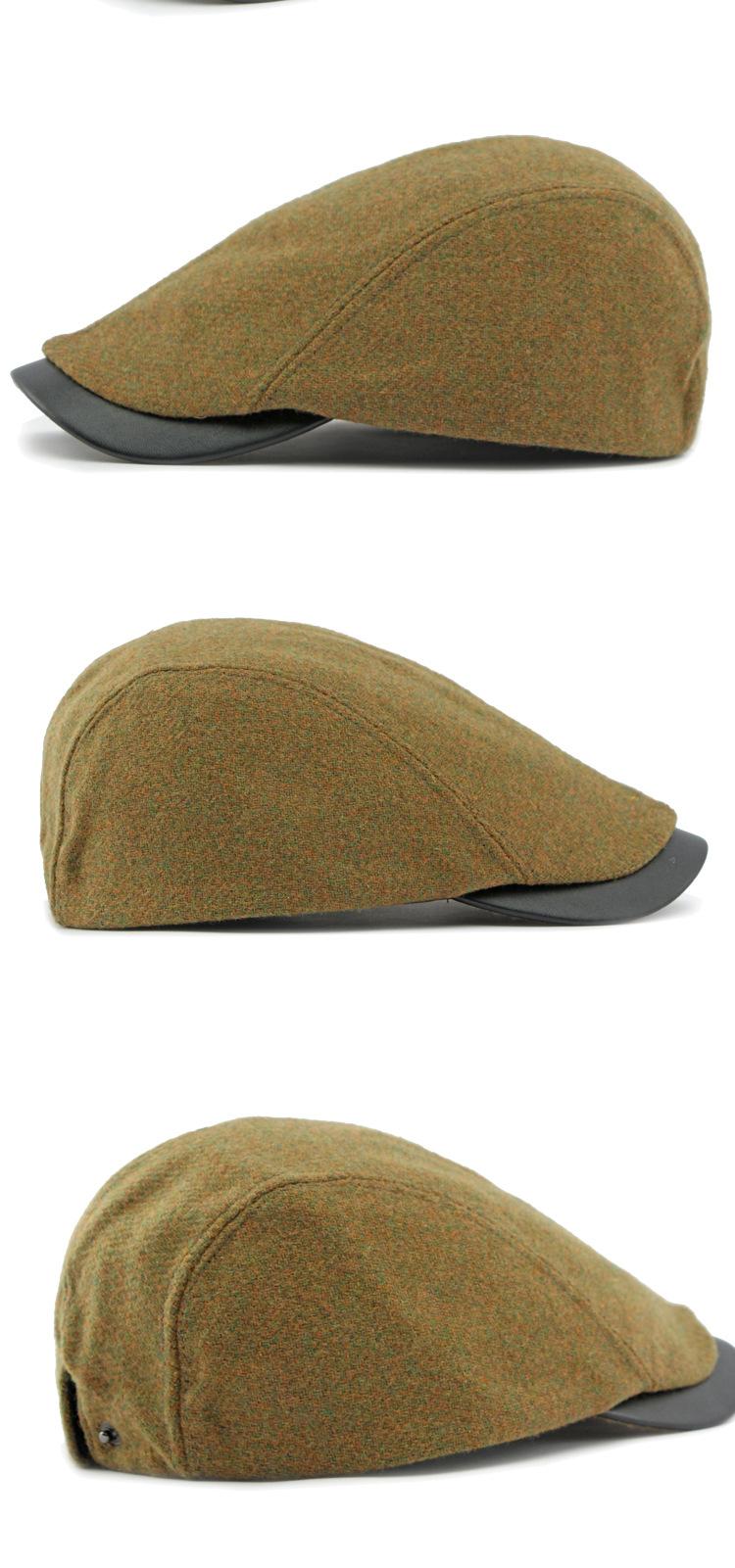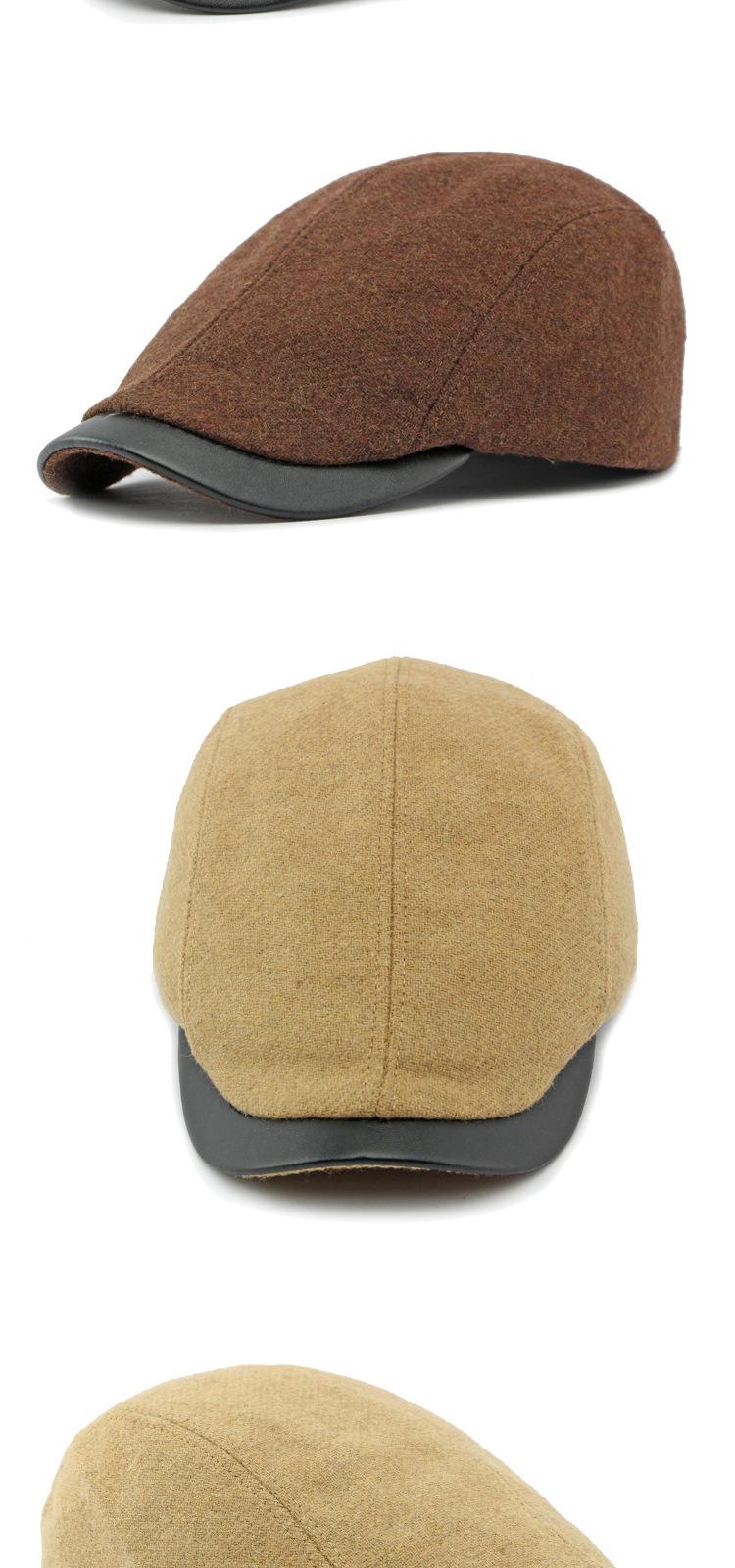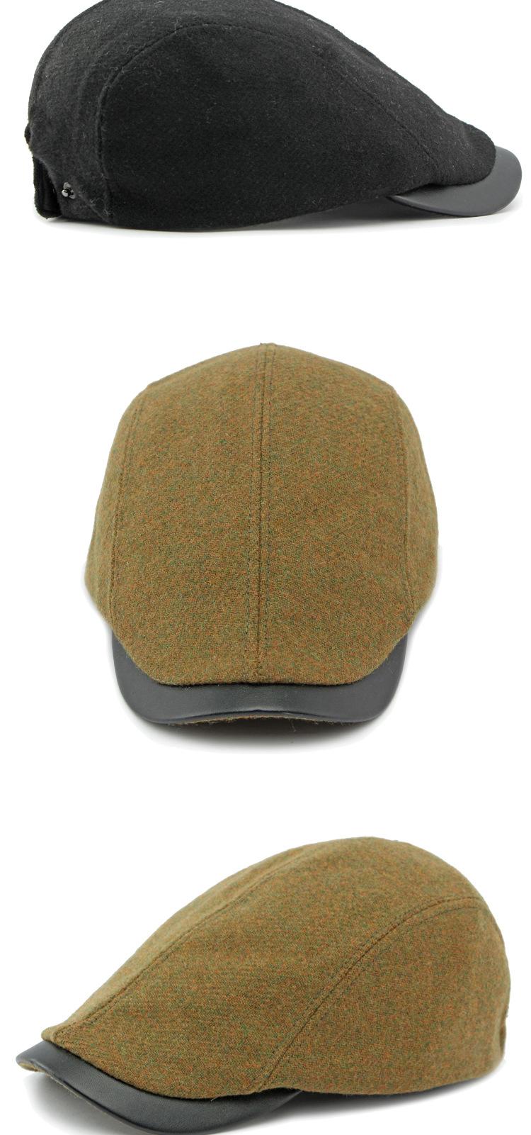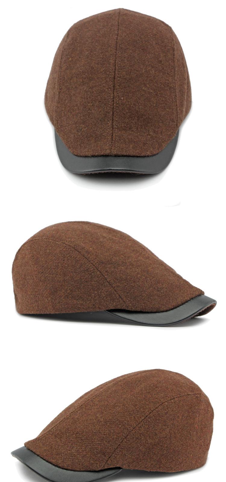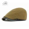 Boina de lana con ala de cuero estilo europeo y americano para hombres y mujeres, otoño e invierno, nueva gorra con visera retro británica, sombrero delantero