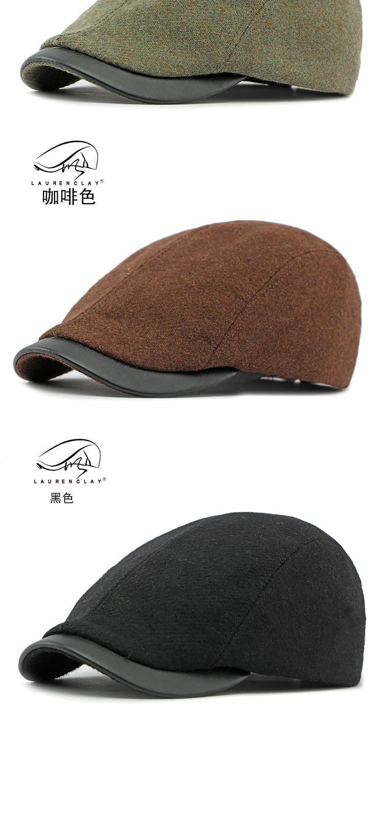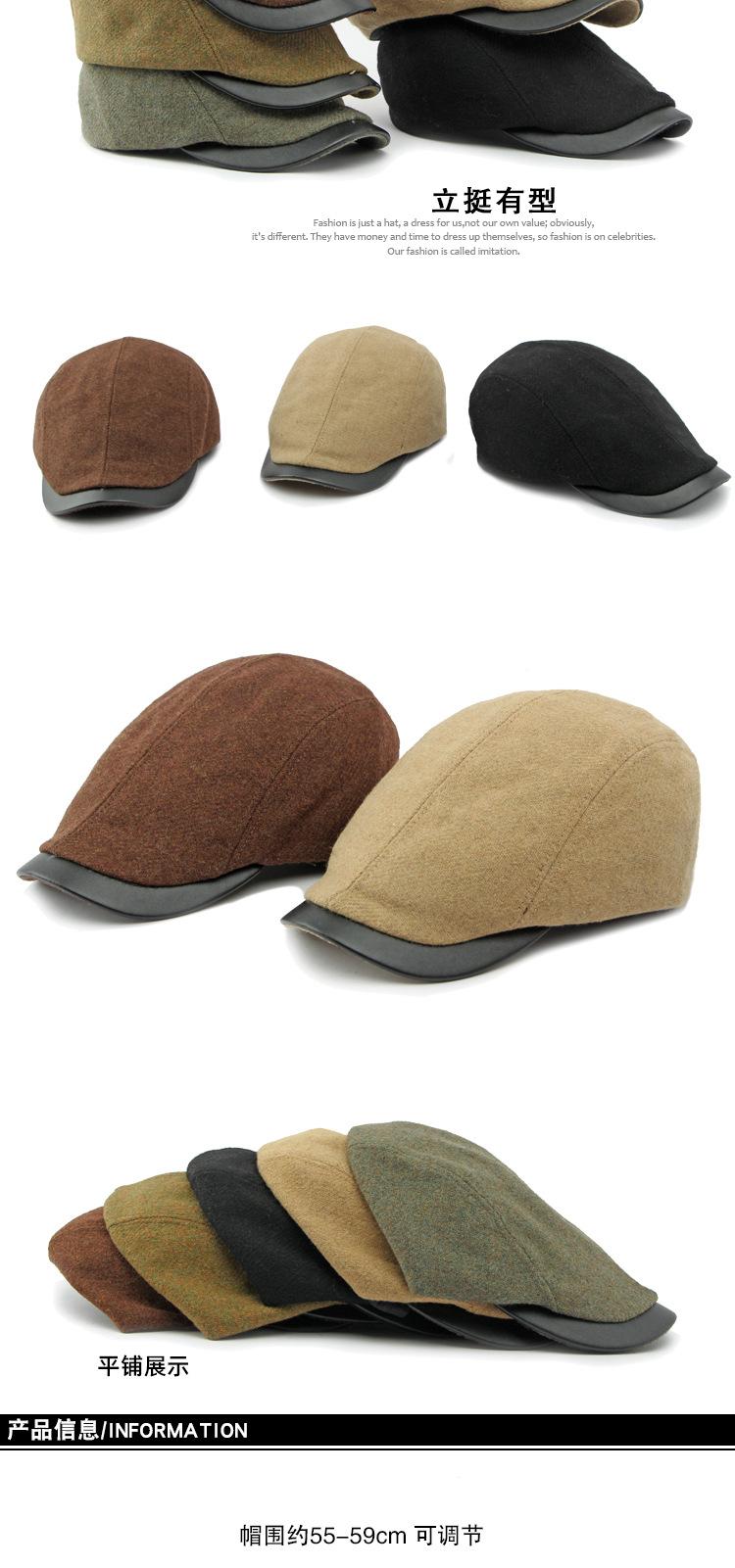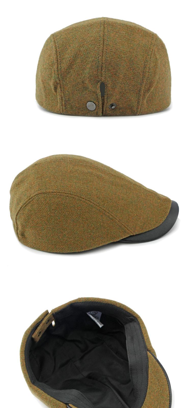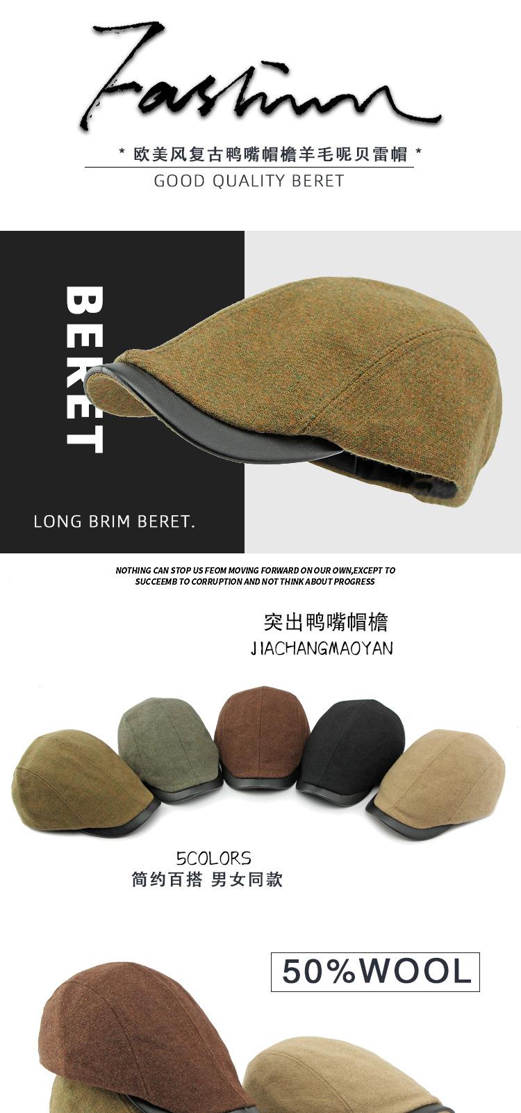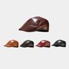 Boina de lana con ala de cuero estilo europeo y americano para hombres y mujeres, otoño e invierno, nueva gorra con visera retro británica, sombrero delantero