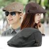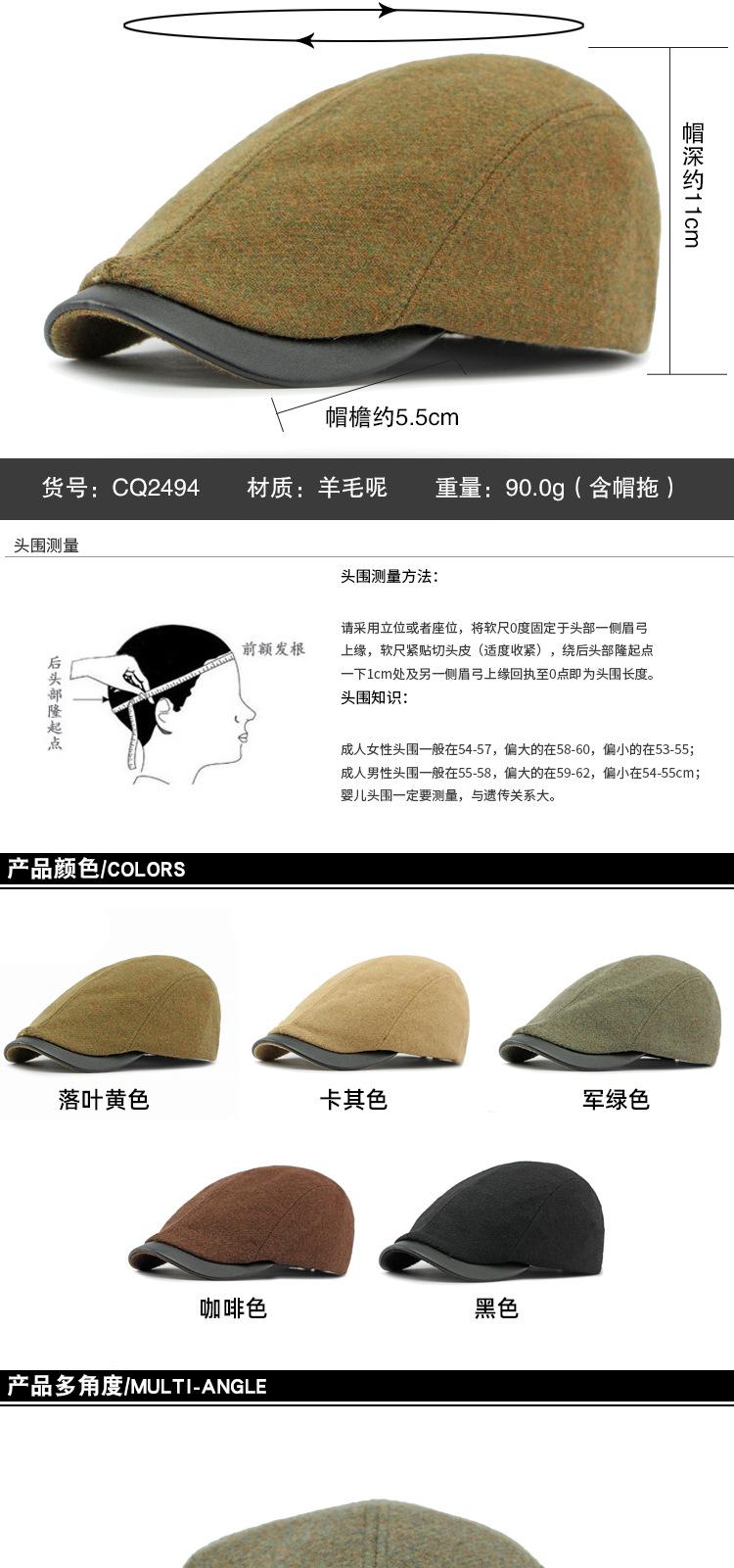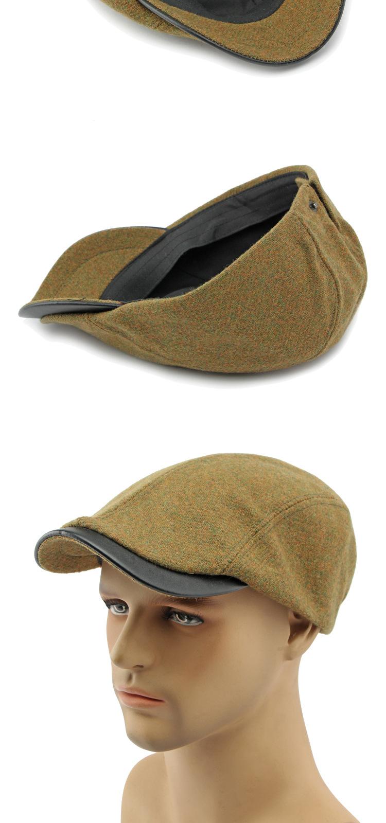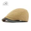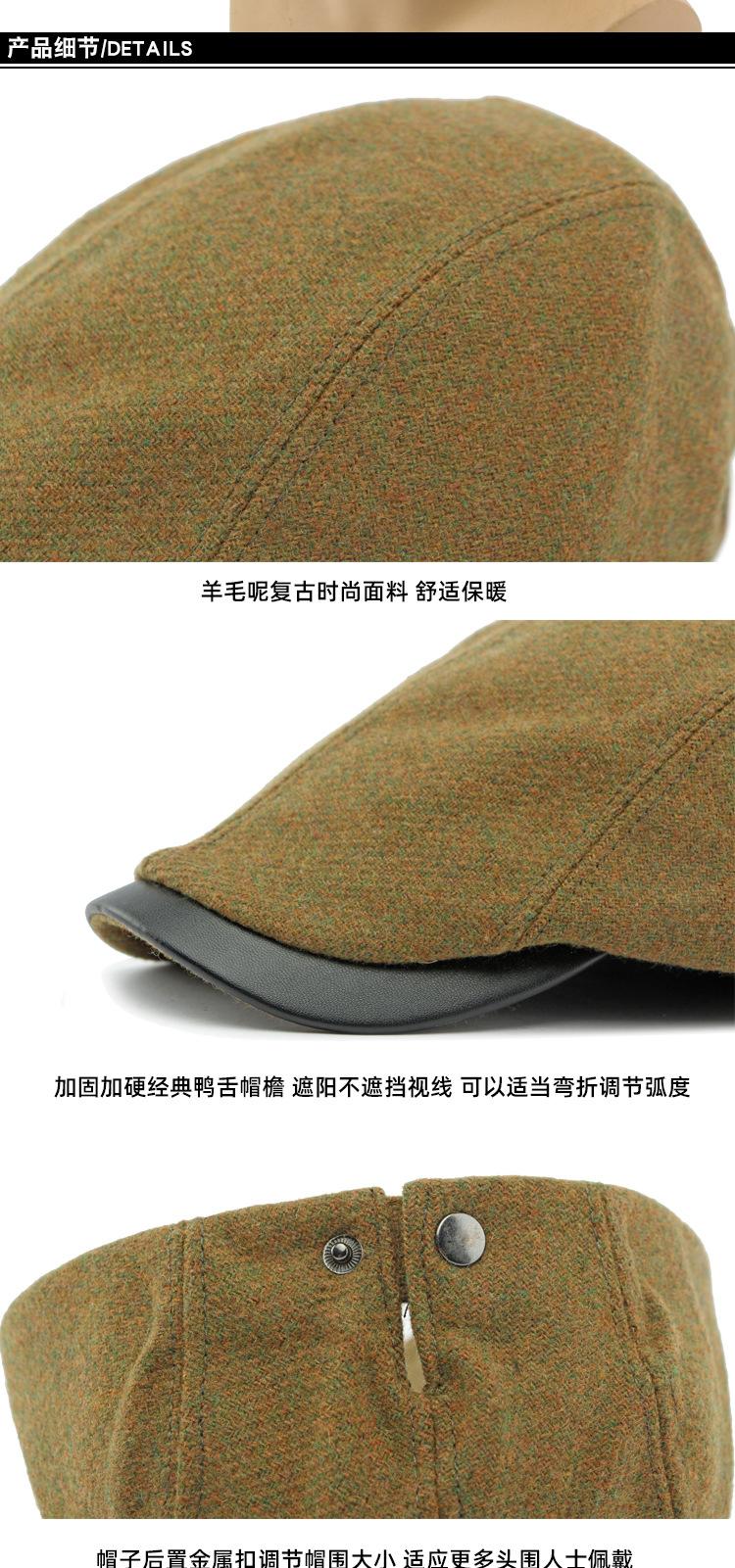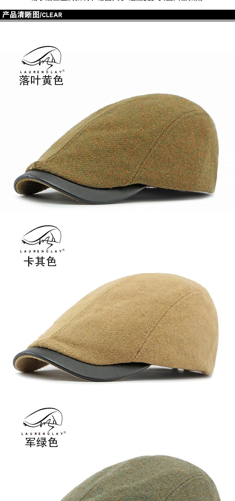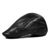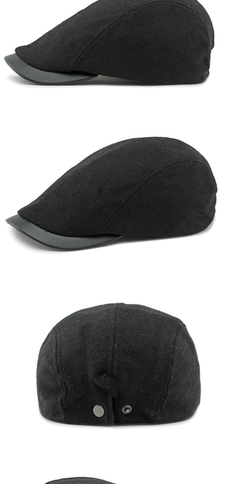 Boina de lana con ala de cuero estilo europeo y americano para hombres y mujeres, otoño e invierno, nueva gorra con visera retro británica, sombrero delantero