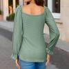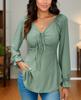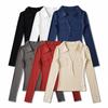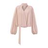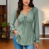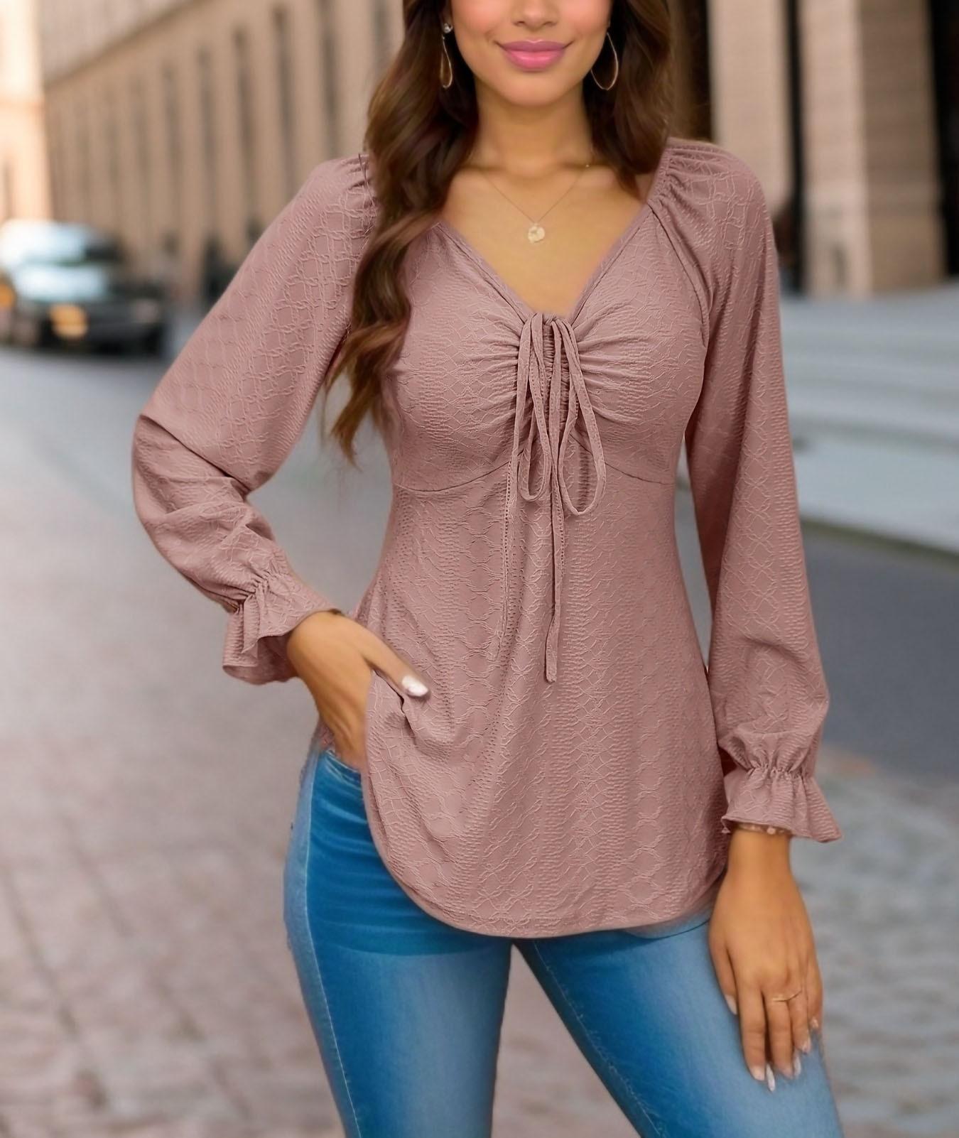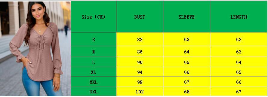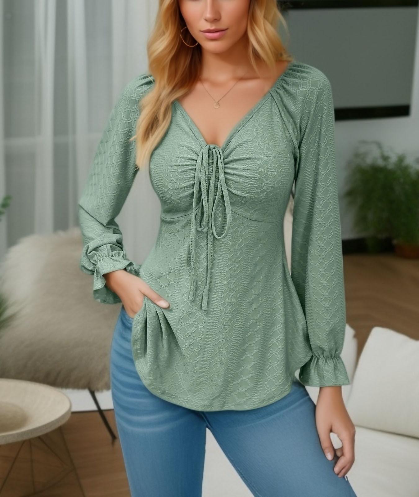 Otoño 2024, nueva camiseta de manga larga sexy con cuello en V y cordón en la cintura de comercio exterior europeo y americano, ropa de mujer de color sólido