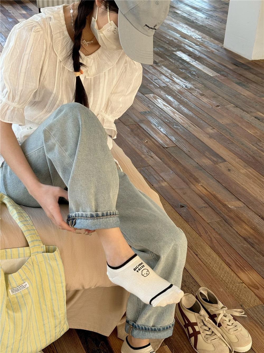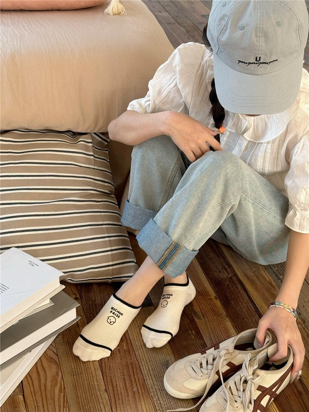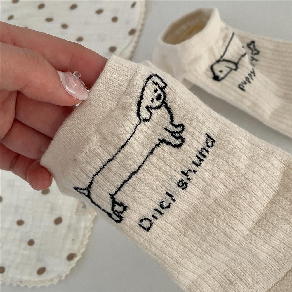 Calcetines IOULOR con bordado de cachorros para mujer, estilo ins, transpirables, de algodón, informales, estilo universitario, venta al por mayor