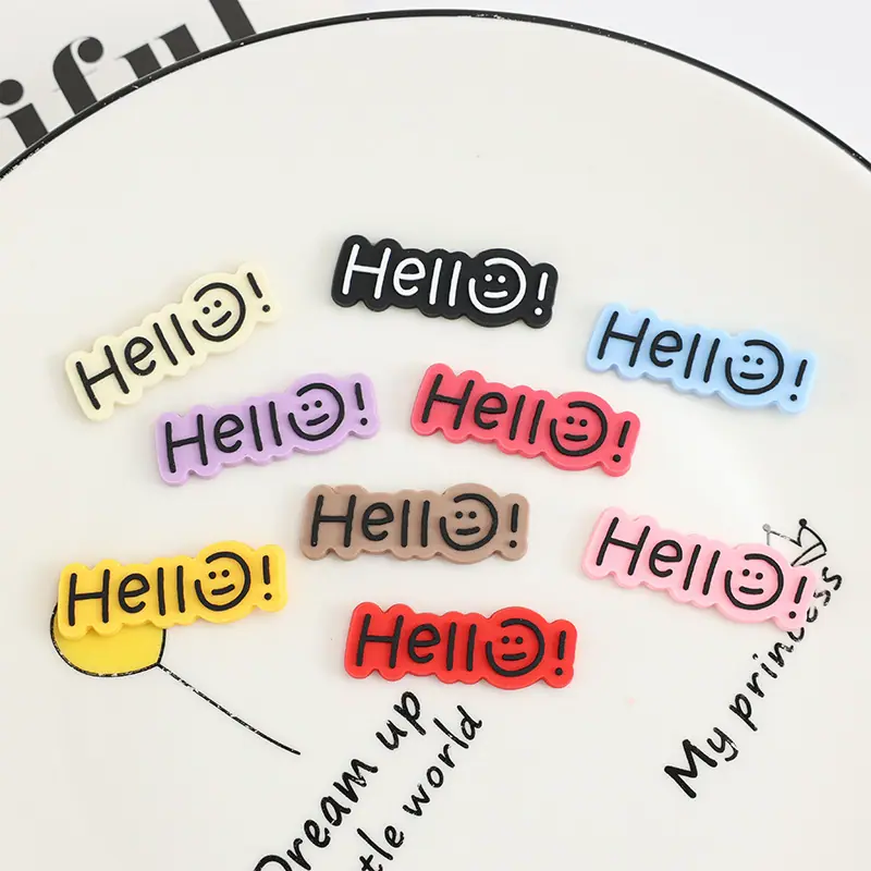 Hola Carta Accesorios DIY Hola Parches Decorativos Fuente Linda Buenas Letras Coloridas Cuchara Moño Pvc