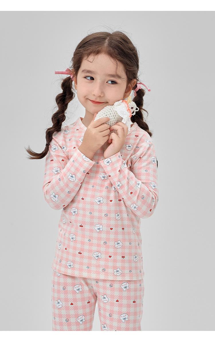 Conjunto de ropa interior infantil de diseño ZYZ, pijama a cuadros rosa y blanco para niña, ropa de hogar infantil de licra para otoño e invierno.