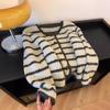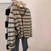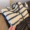 Suéter de punto holgado con cuello redondo y diseño de rayas en contraste de color francés para mujer, otoño e invierno