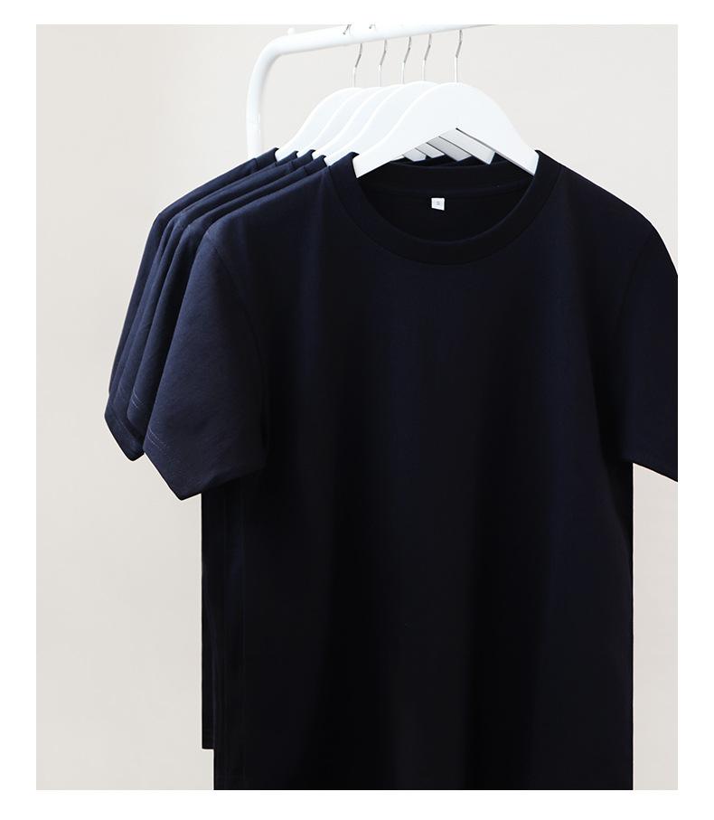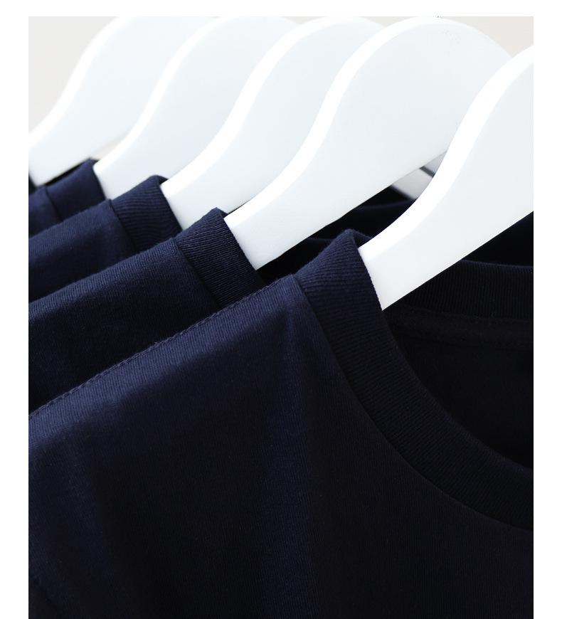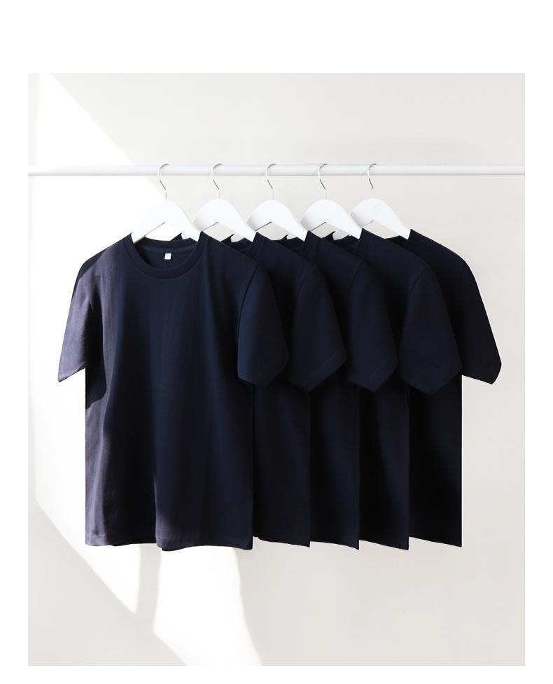 Camiseta de manga corta de algodón pesado retro azul oscuro 230g verano color sólido tejido tubular Joker camiseta chaqueta para hombres y mujeres