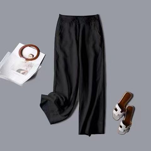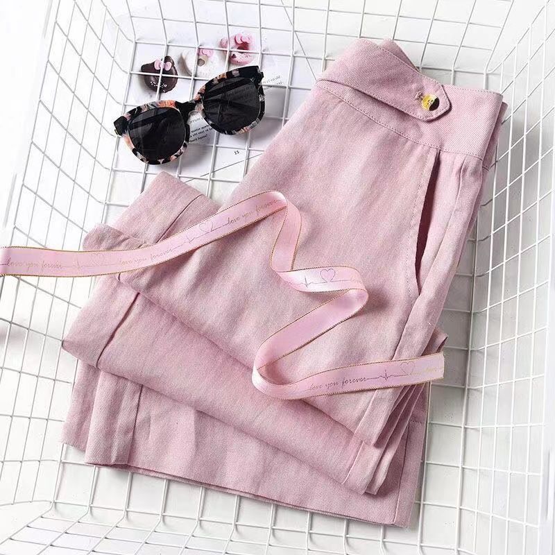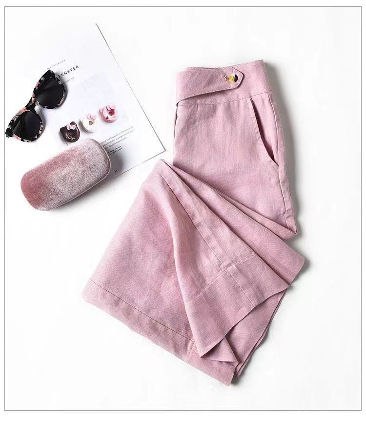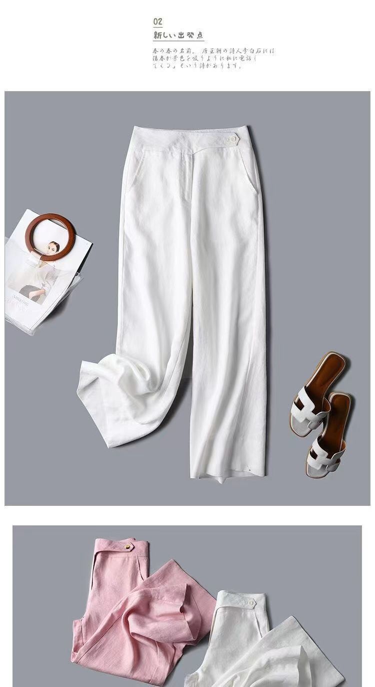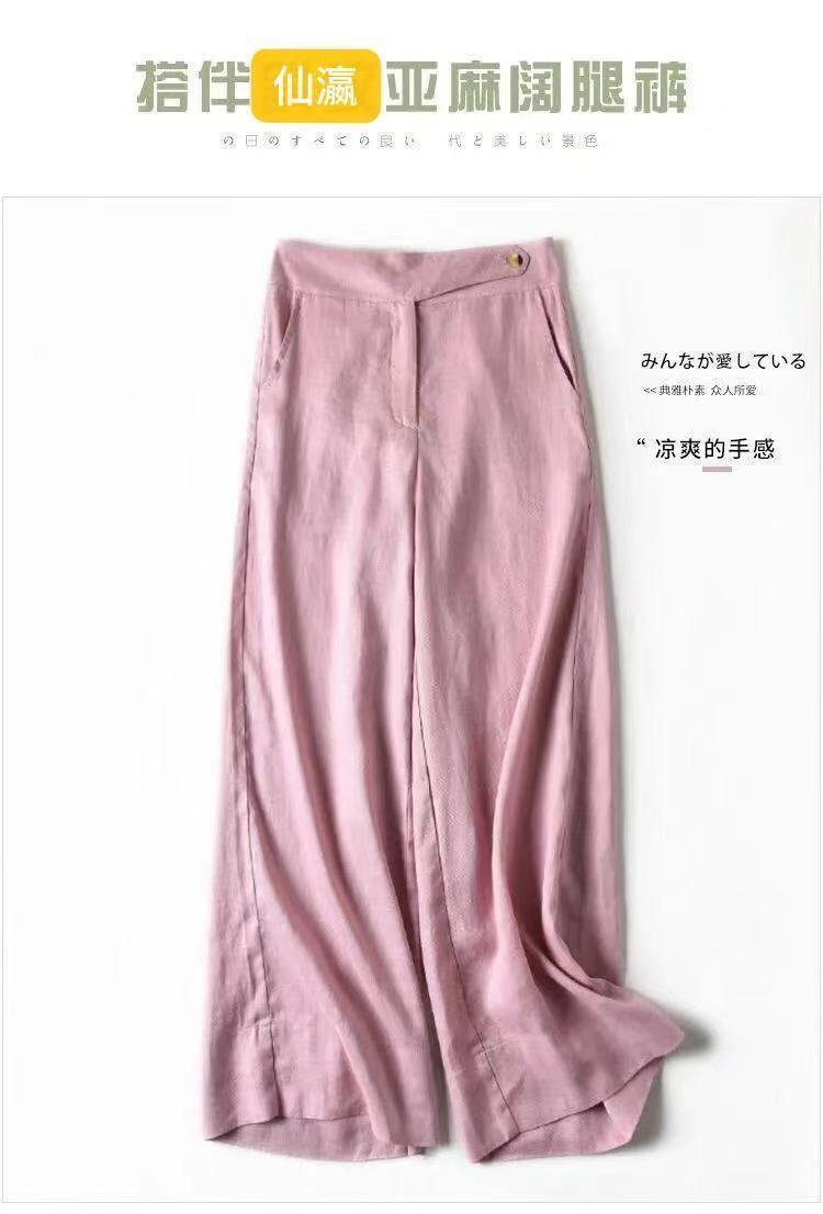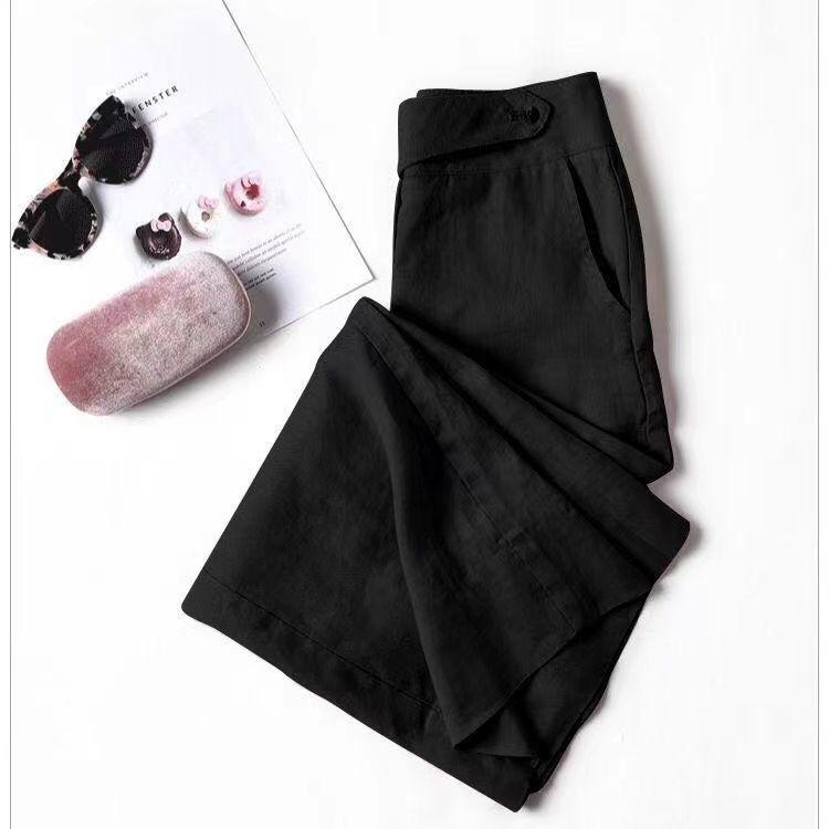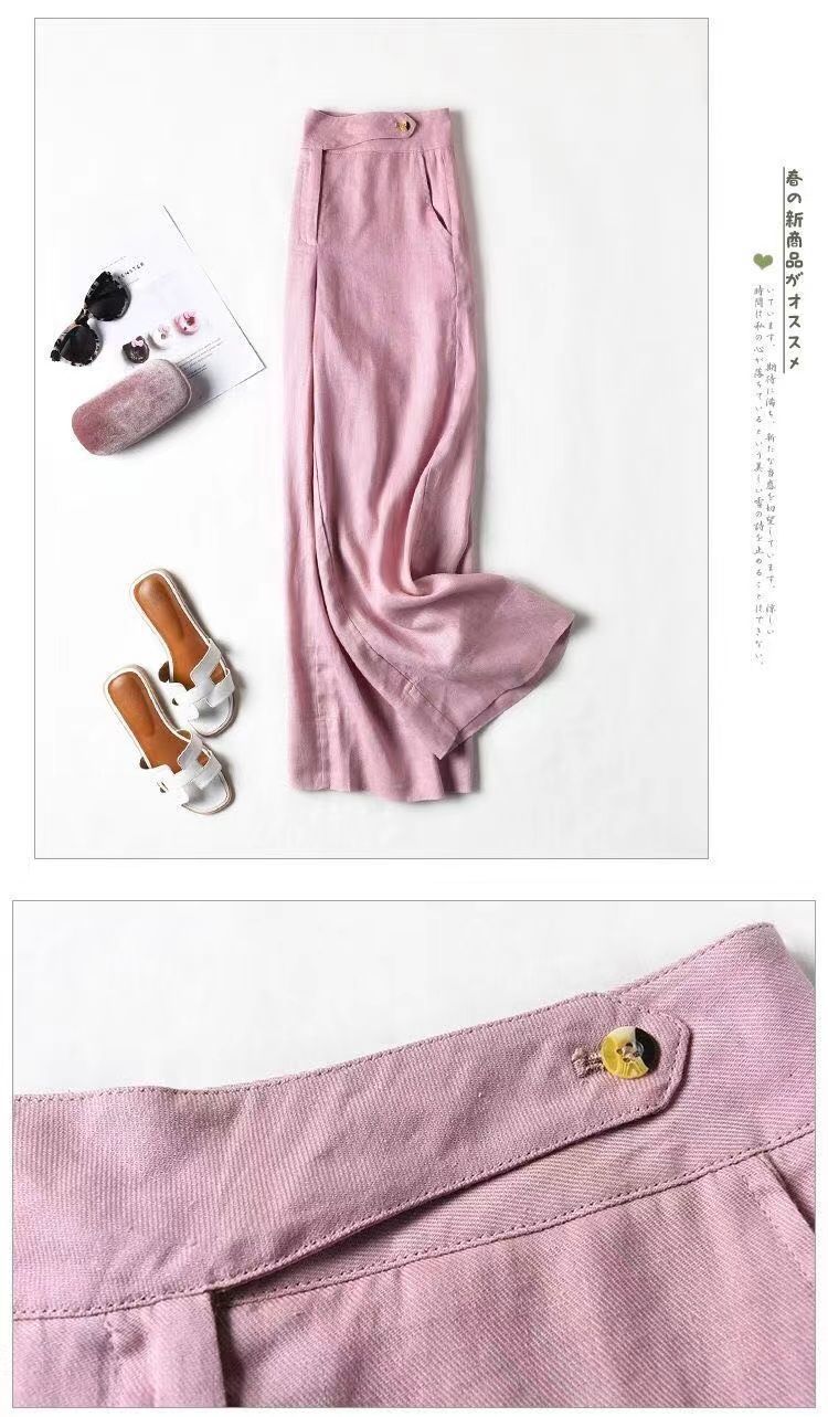 Pantalones de lino de estilo coreano para mujer, pantalón holgado, de cintura alta, con pierna ancha y colgante, estilo casual, para primavera y verano