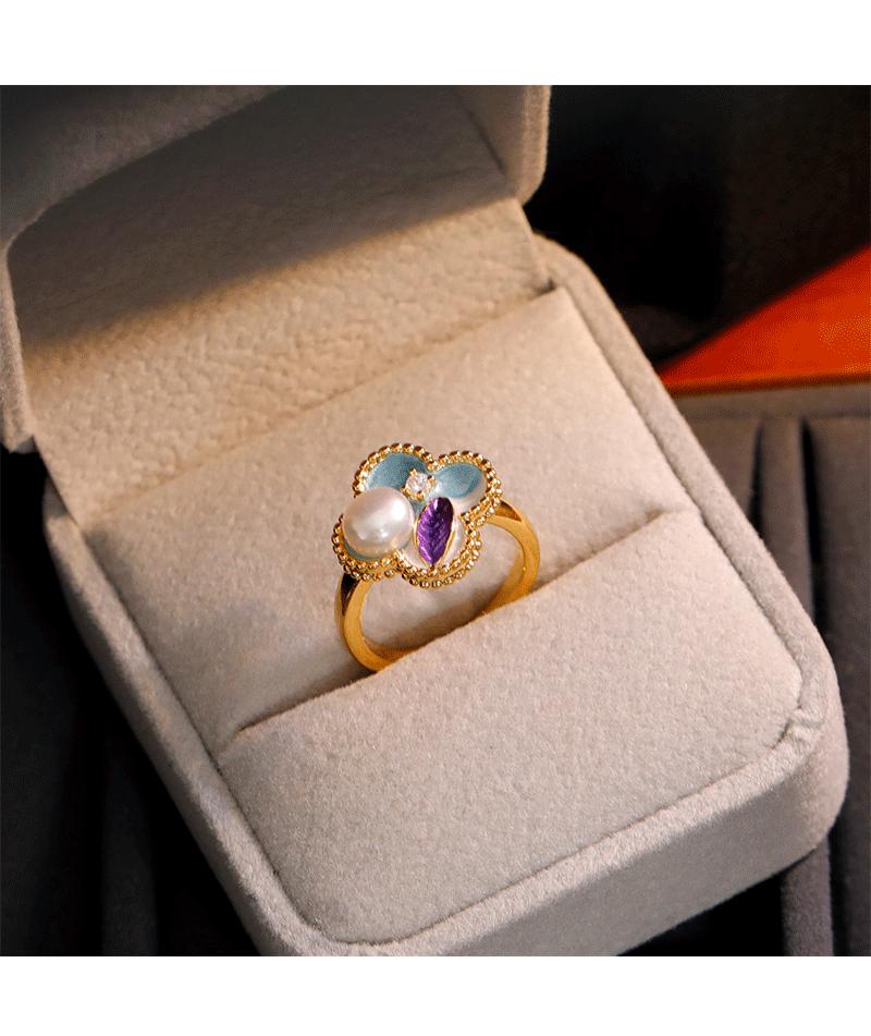 Nombre: Anillo de perlas de pintura al óleo esmaltada