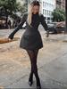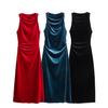 Vestido estampado retro ajustado sin espalda con tirantes sexy a la moda para mujer, otoño e invierno 2023, estilo europeo y americano