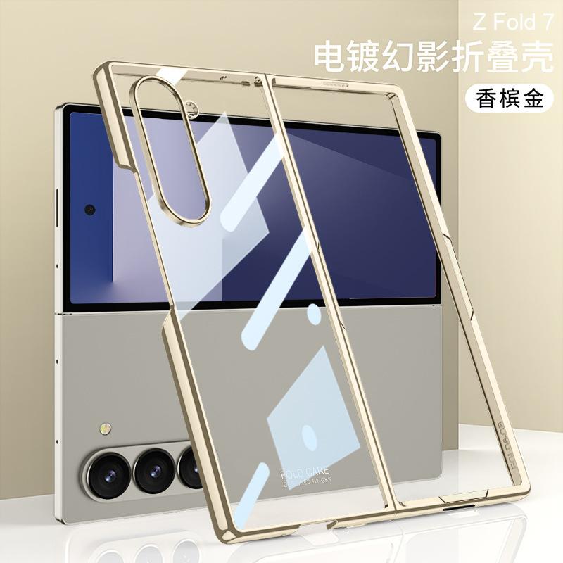 Adecuado para Samsung Z Fold7/6/5 Funda para Teléfono Móvil Electrochapado Transparente Phantom Plegable Pantalla Anti-Caída Cubierta Protectora Transfronteriza