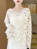Suéter de lana hueca con cuello redondo para mujer, suéter de punto holgado de color liso para principios de otoño e invierno, suéter tipo camisa, suéter superior para mujer