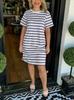 Vestido casual de cuello redondo a rayas de moda europea y americana 2024 para mujer