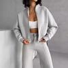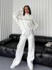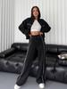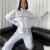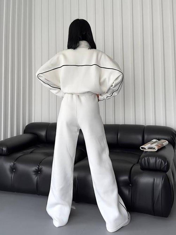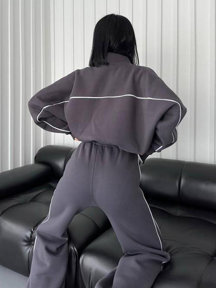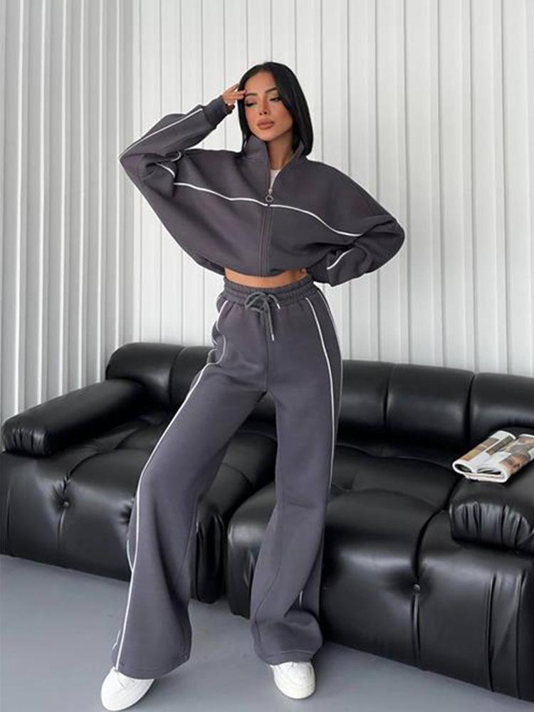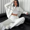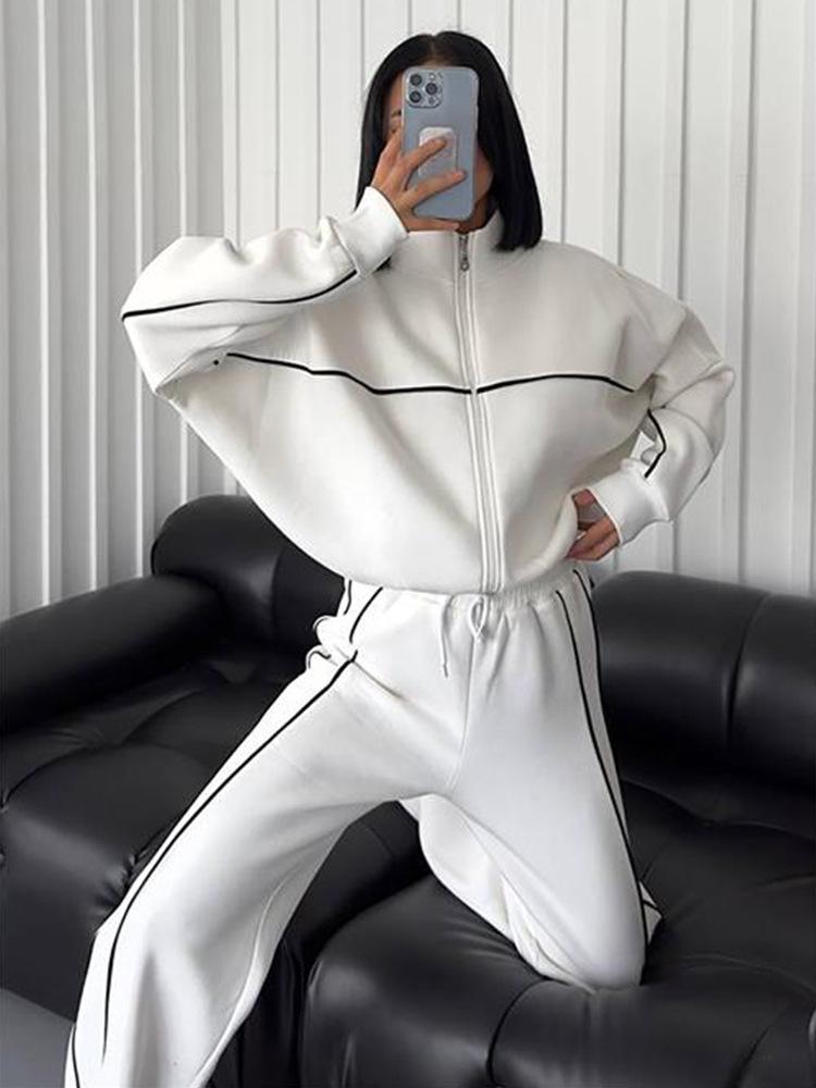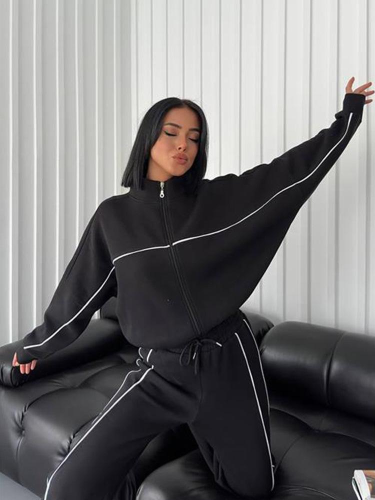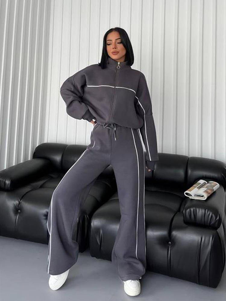 2025 Nuevo Traje Casual Europeo y Americano Transfronterizo de Amazon Cárdigan de Cuello Alto de Manga Larga Sudadera Pantalones Rayados con Cordones