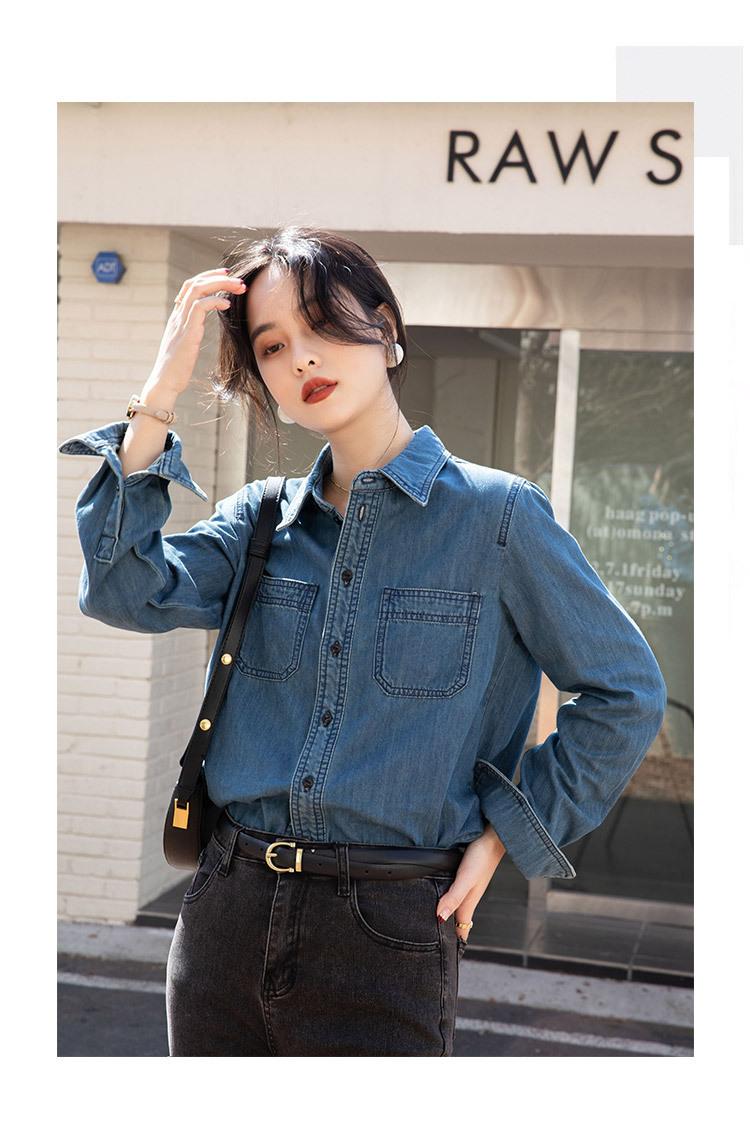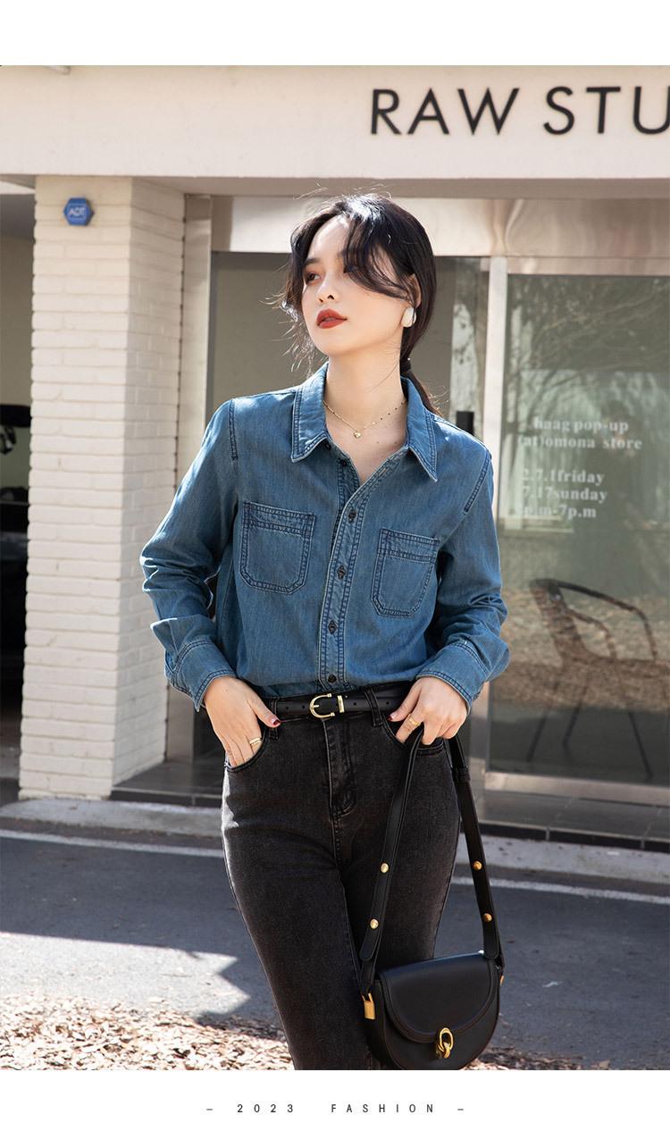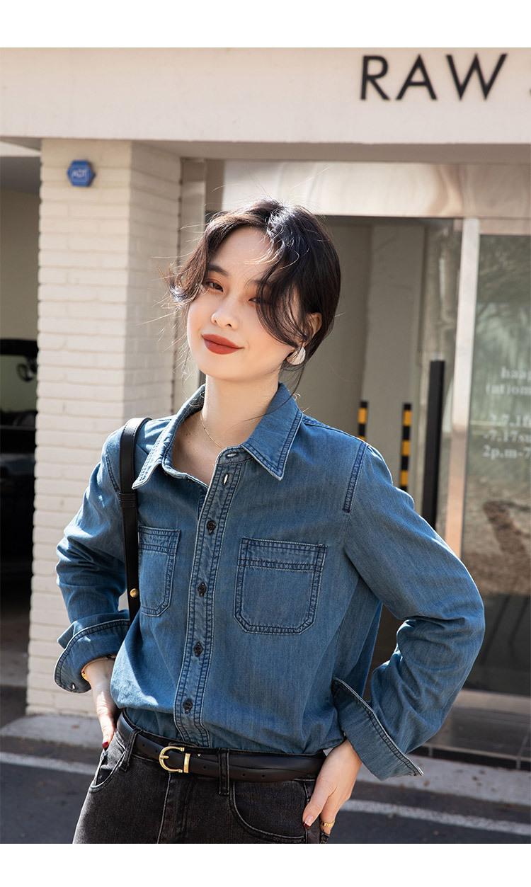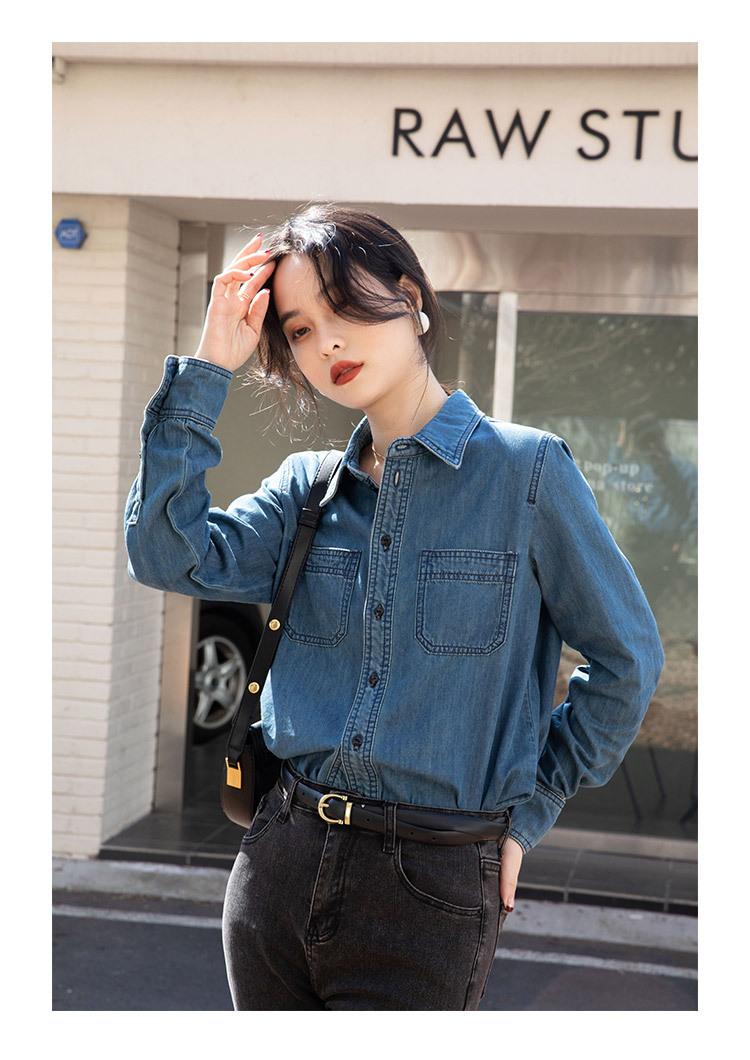 Camisa Retro de Mezclilla de Algodón Suave para Mujer Primavera y Otoño 2025 Manga Larga Nueva Chaqueta Francesa Handsome Moda Capas Ropa Interior