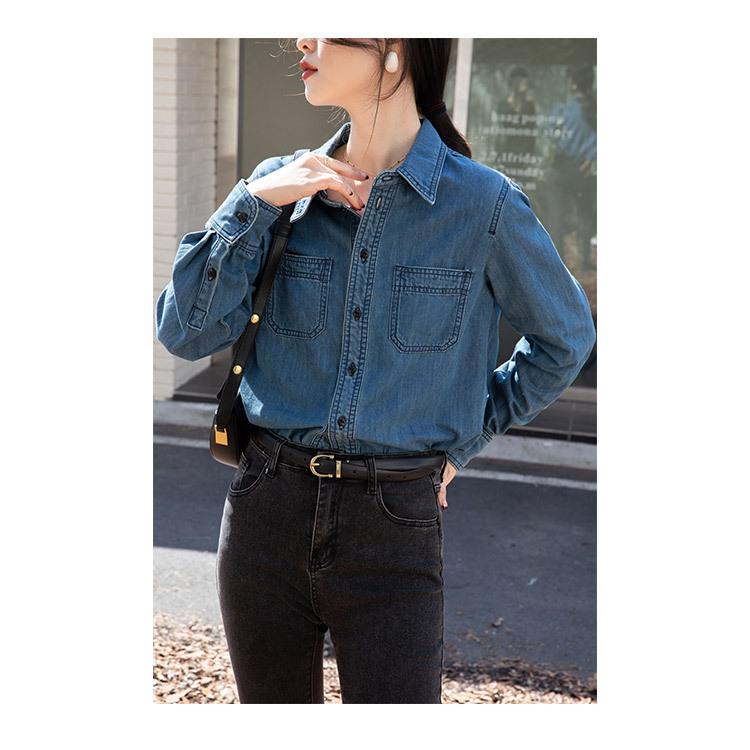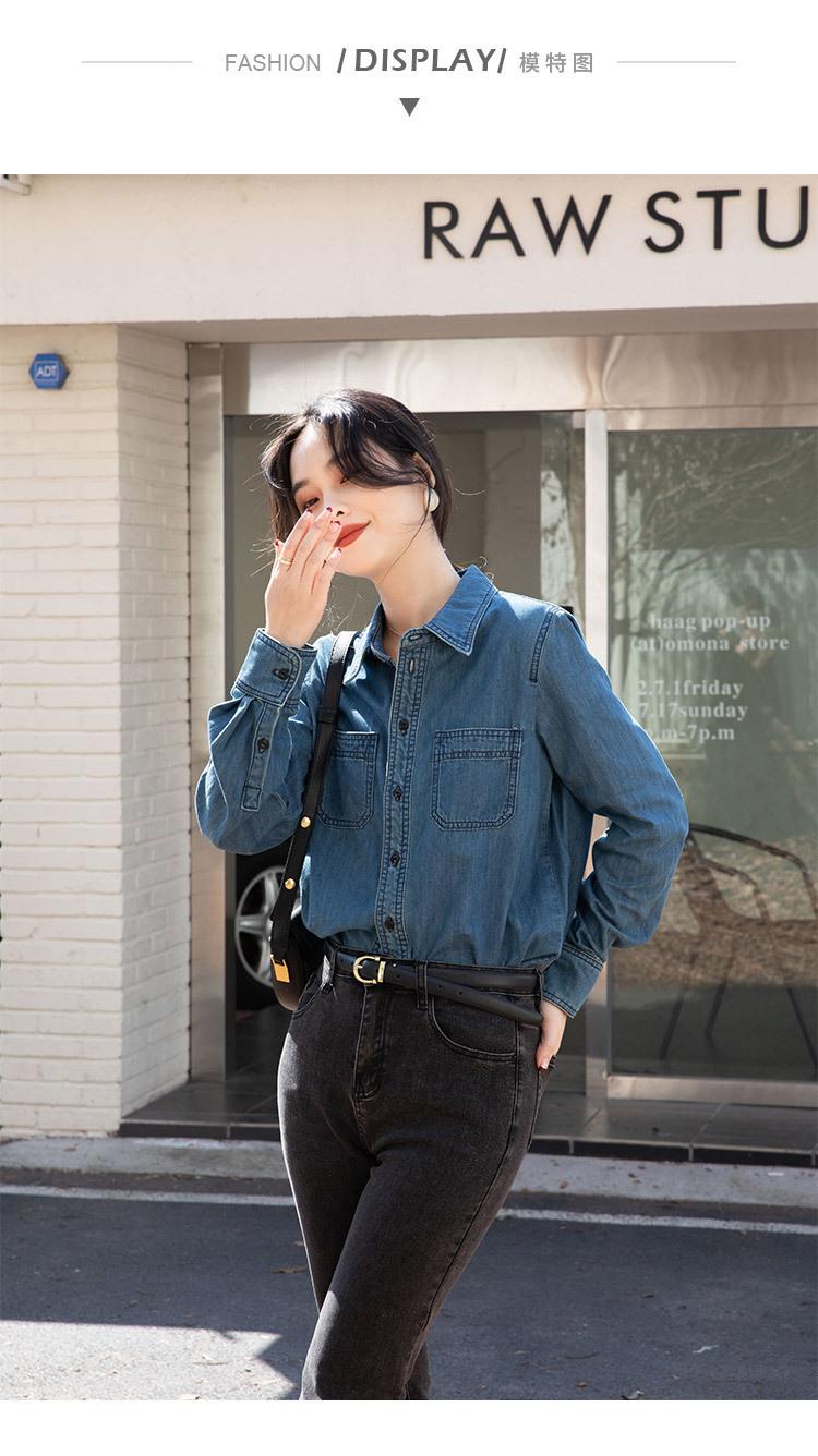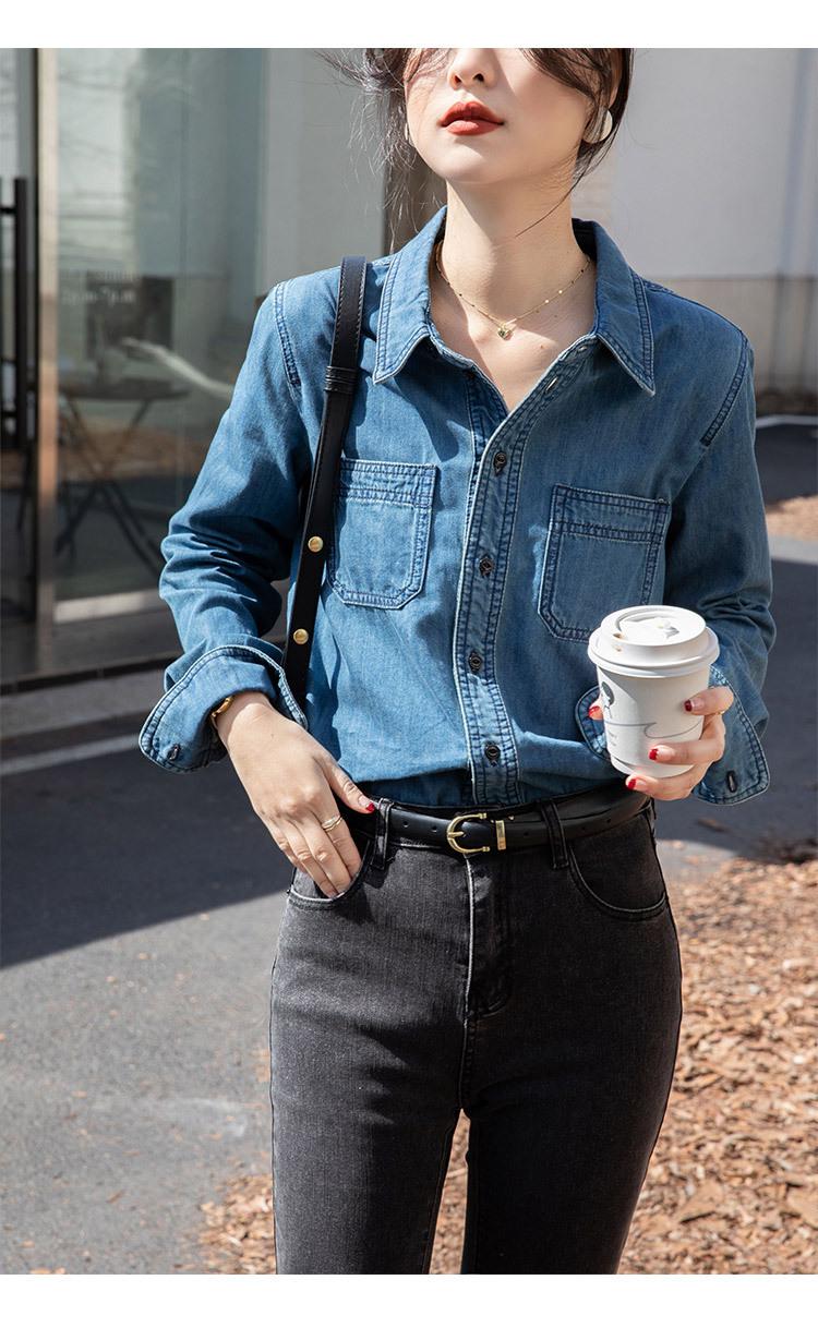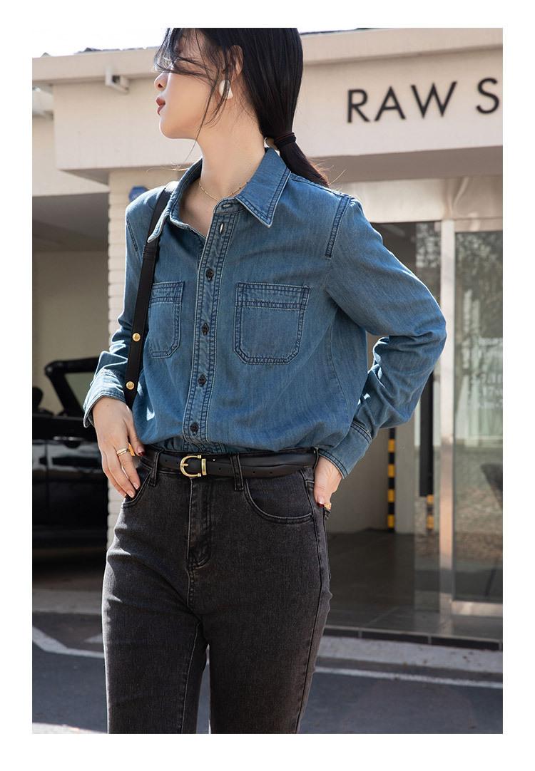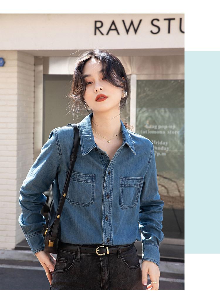 Camisa Retro de Mezclilla de Algodón Suave para Mujer Primavera y Otoño 2025 Manga Larga Nueva Chaqueta Francesa Handsome Moda Capas Ropa Interior