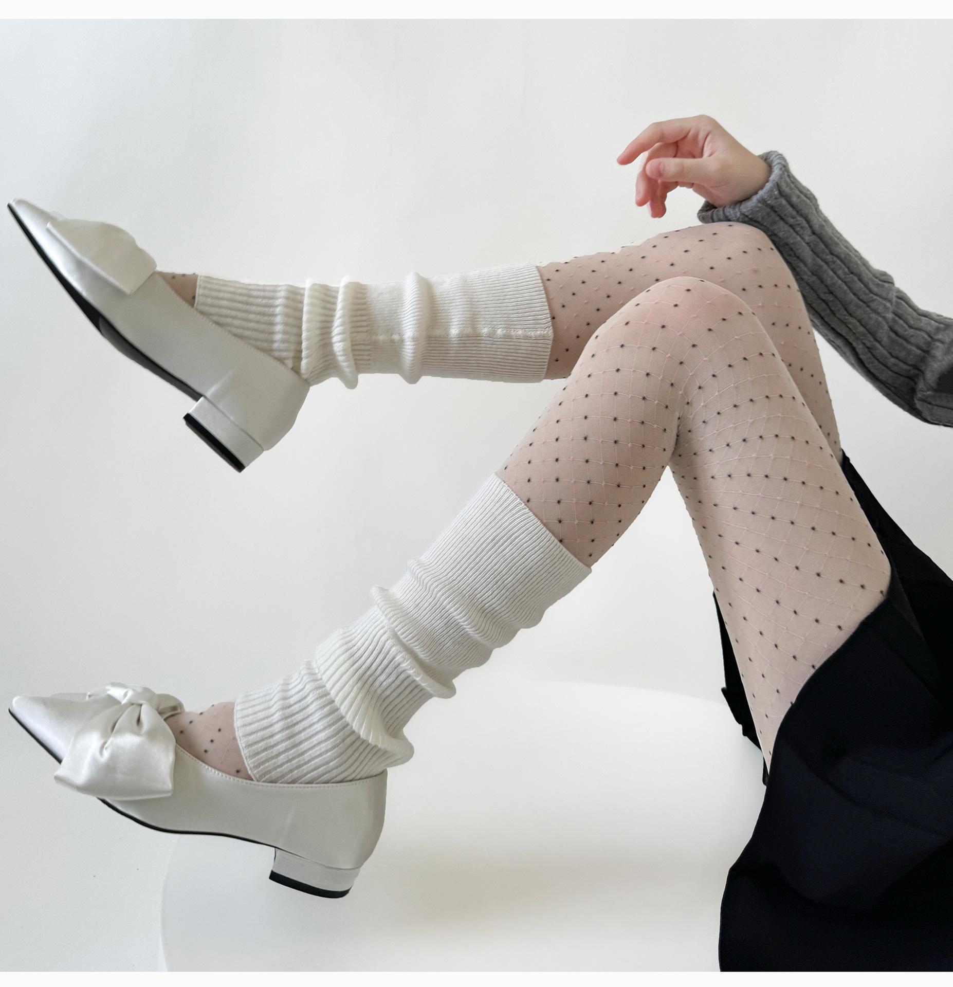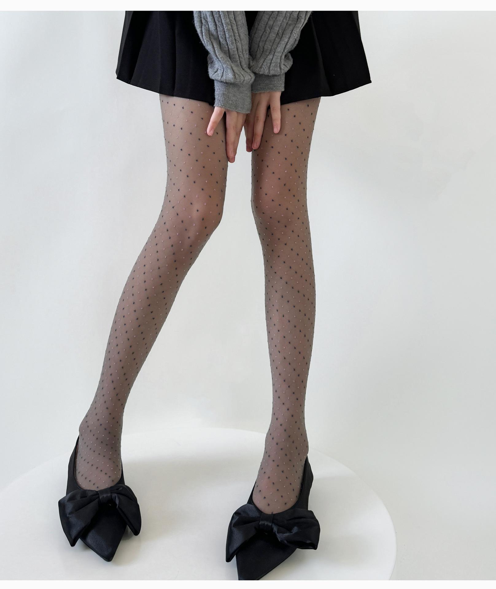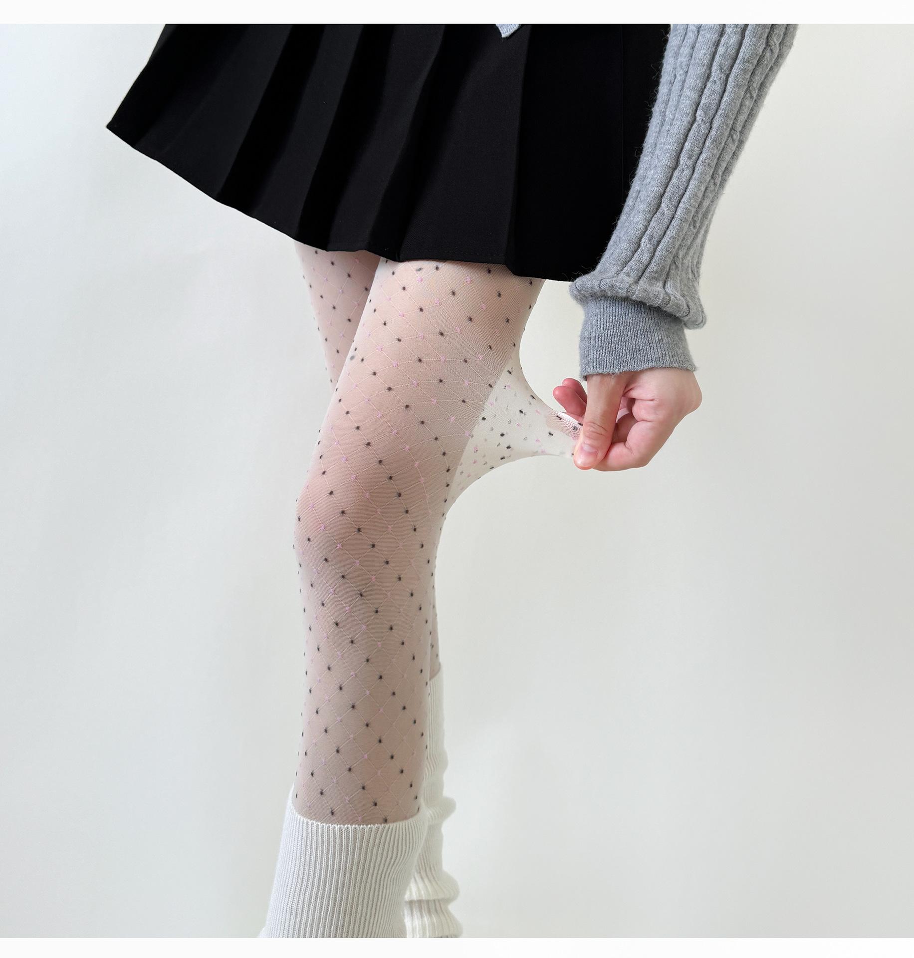 Primavera y Otoño Nuevo Sexy Romboplaid Verano Delgadas Color Contraste Punto Calcetines Jacquard Adelgazantes Gris Rosa Punto Base