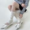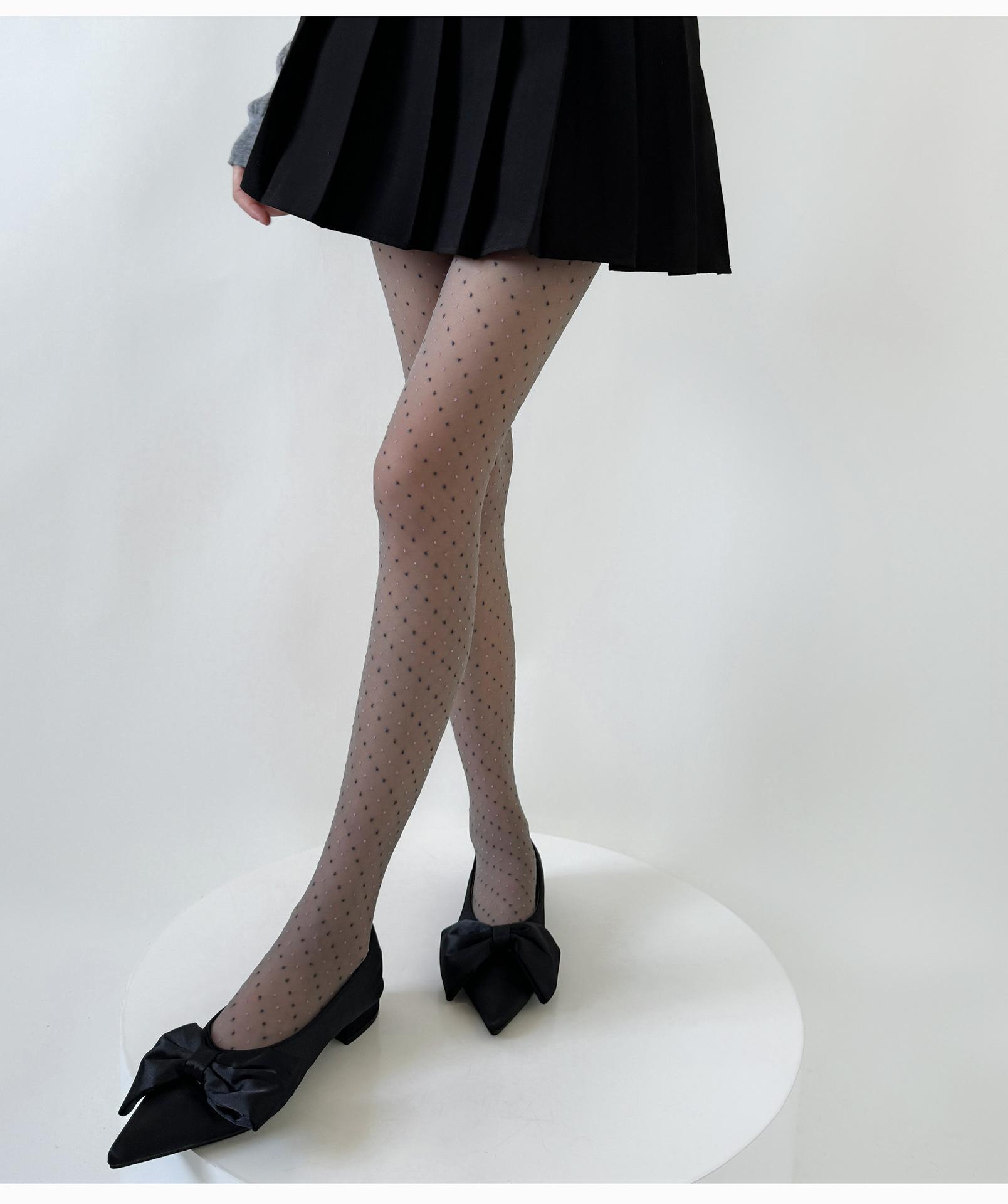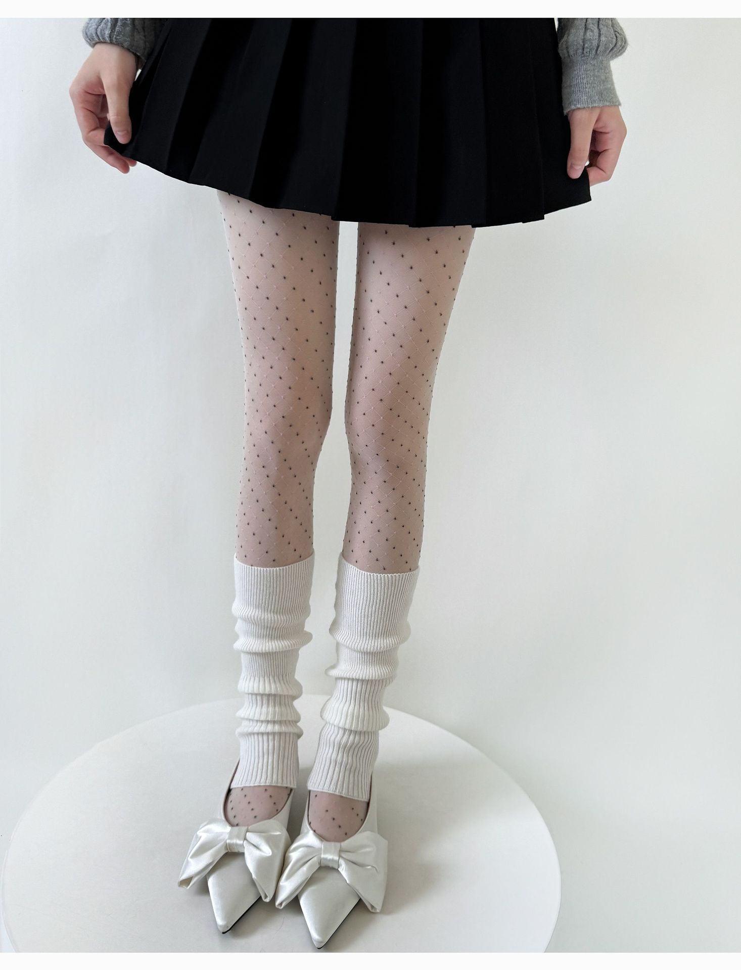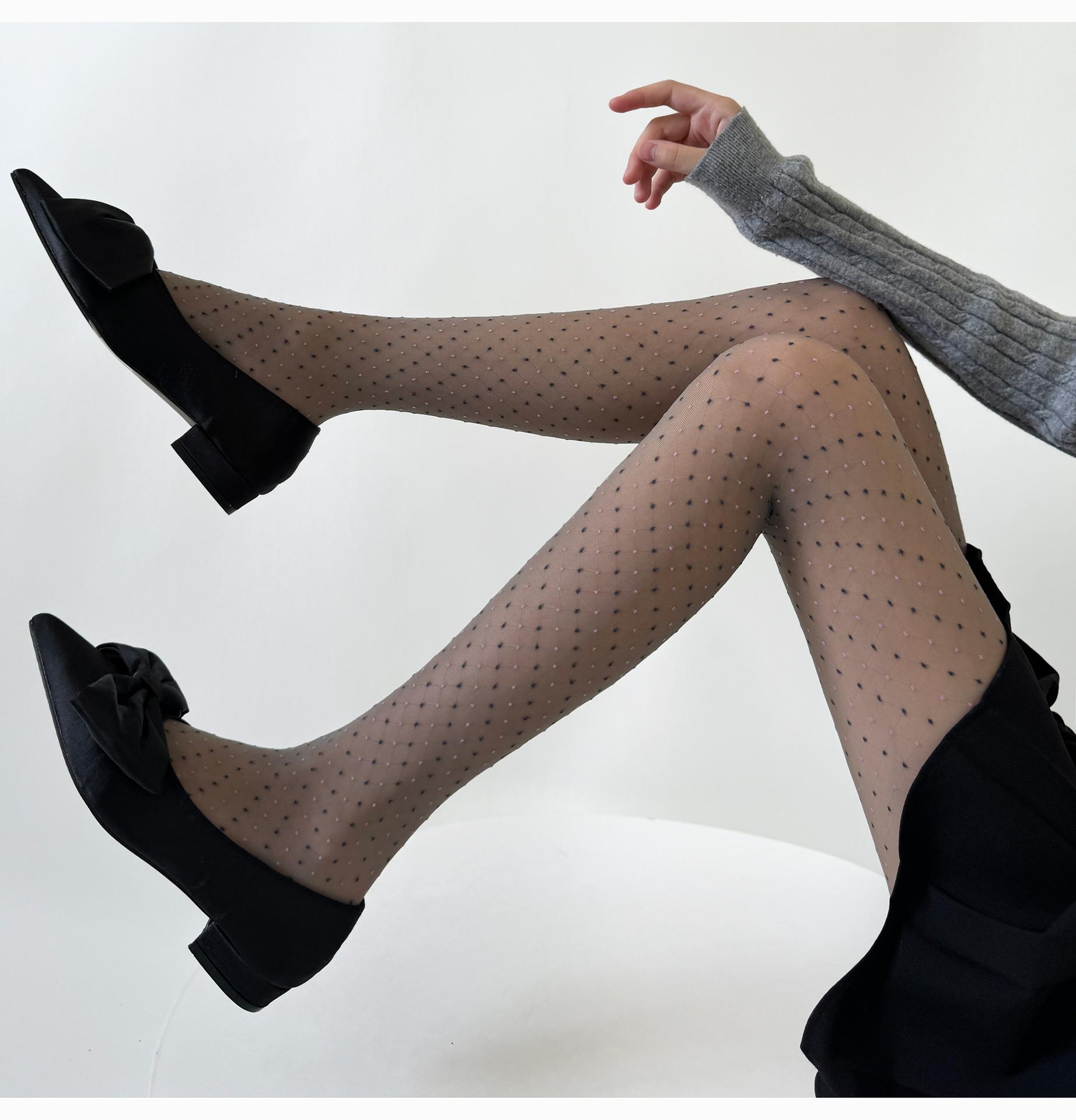 Primavera y Otoño Nuevo Sexy Romboplaid Verano Delgadas Color Contraste Punto Calcetines Jacquard Adelgazantes Gris Rosa Punto Base