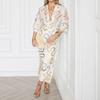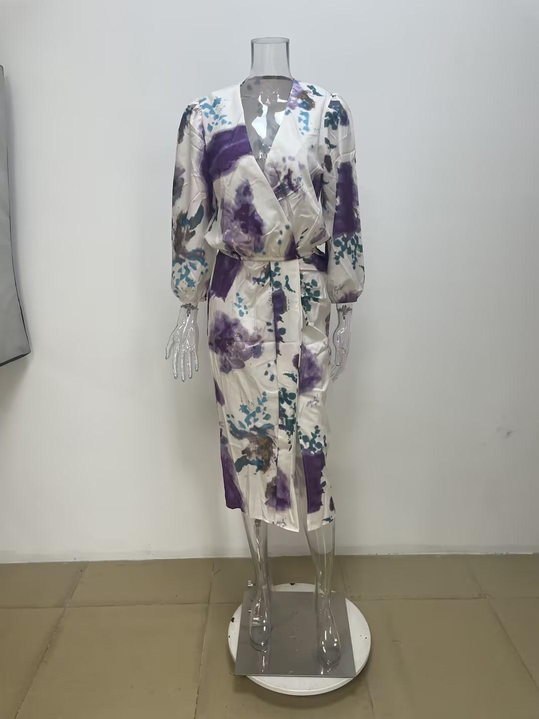 Traje Nuevo Transfronterizo 2025 de Amazon Europeo y Americano para Mujer Chic Cuello en V Manga Larga Falda con Abertura Traje de Moda