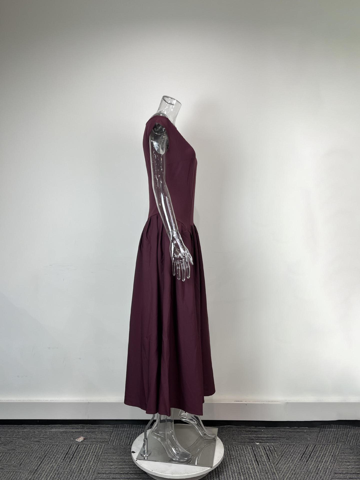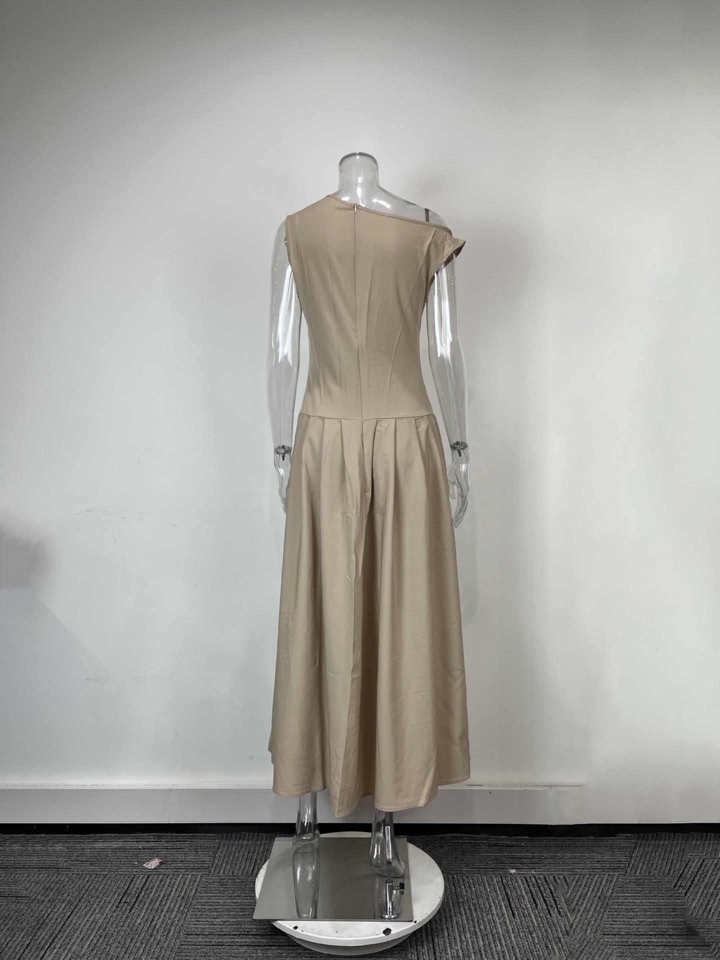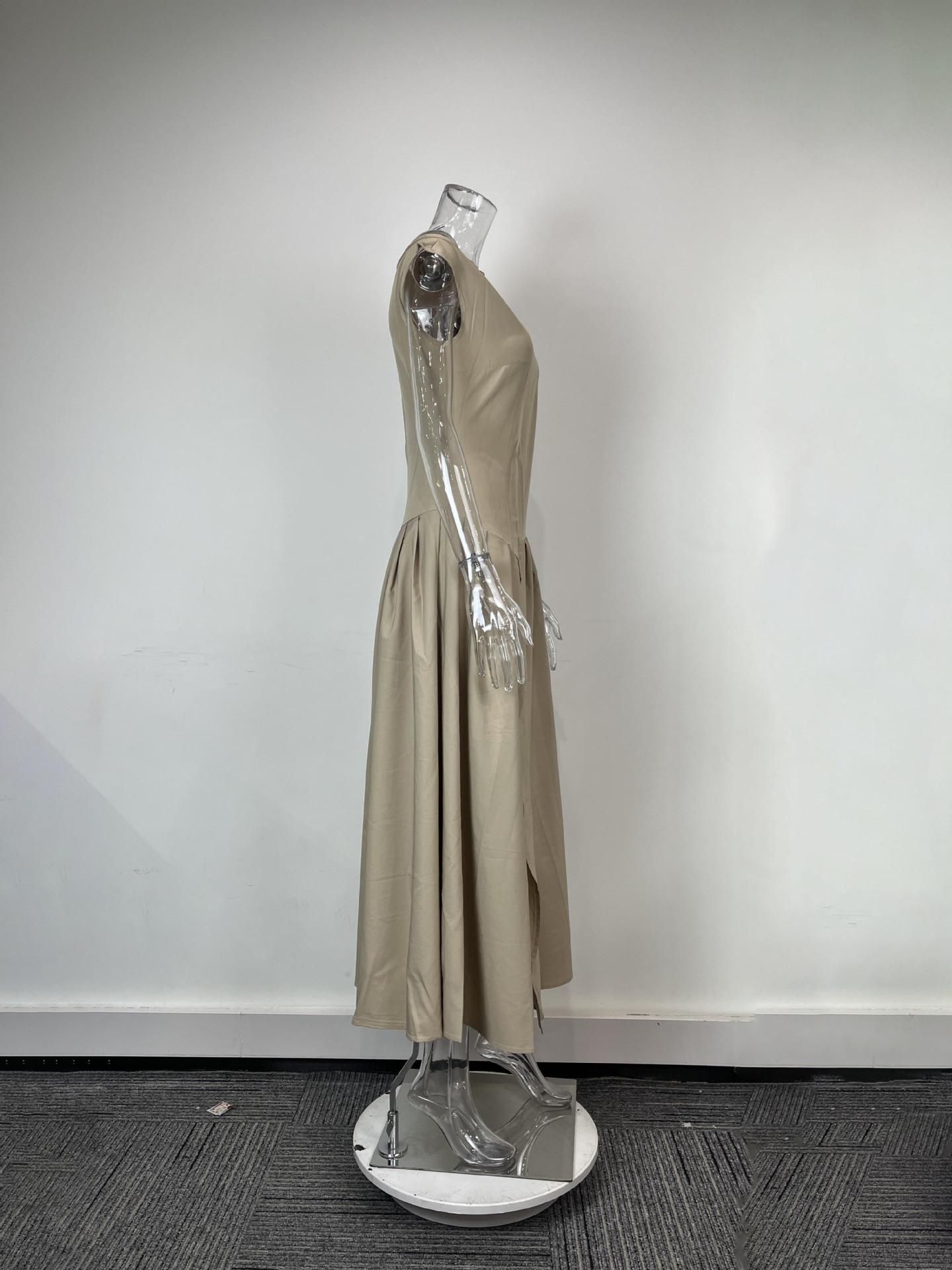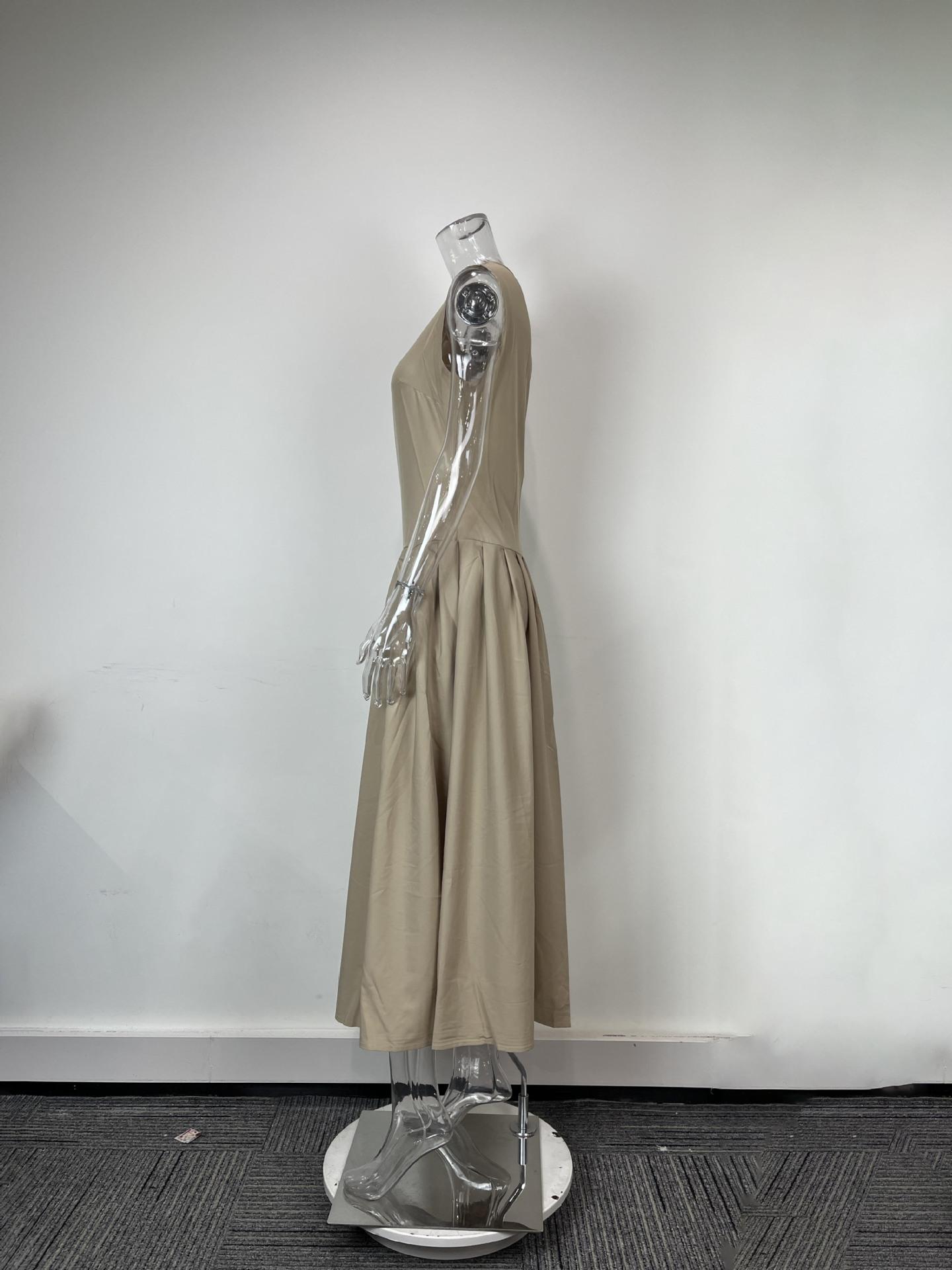Transfronterizo 2025 Amazon Nuevo Vestido Elegante para Mujer Europeo y Americano Moda Cintura Alta Color Sólido Vestido de Primavera