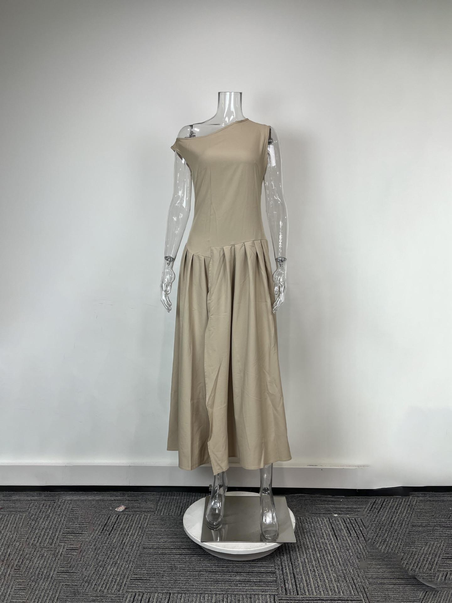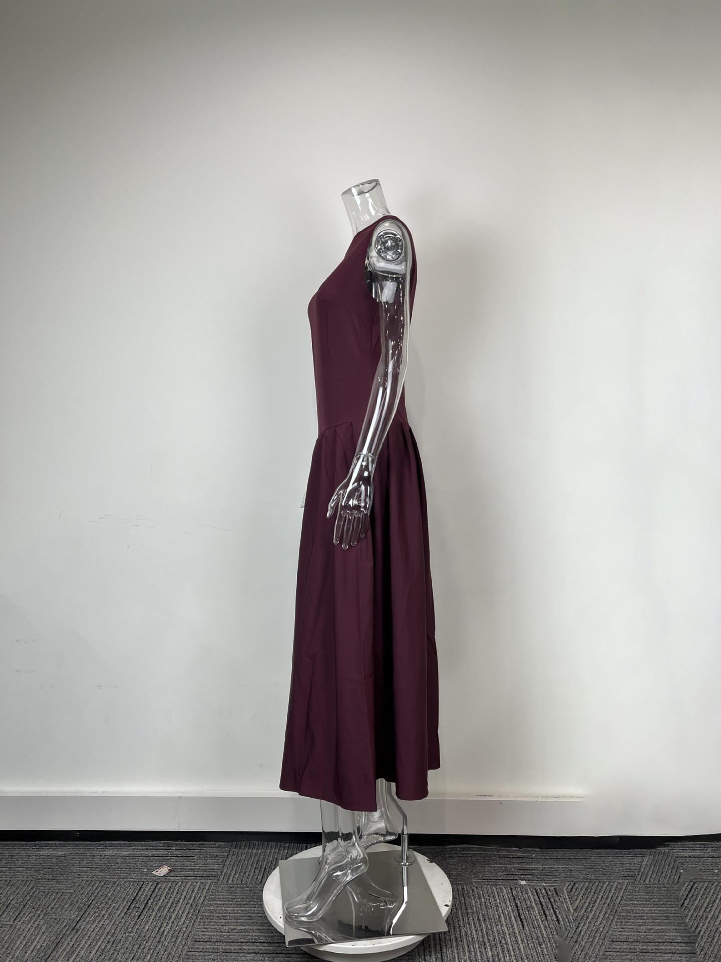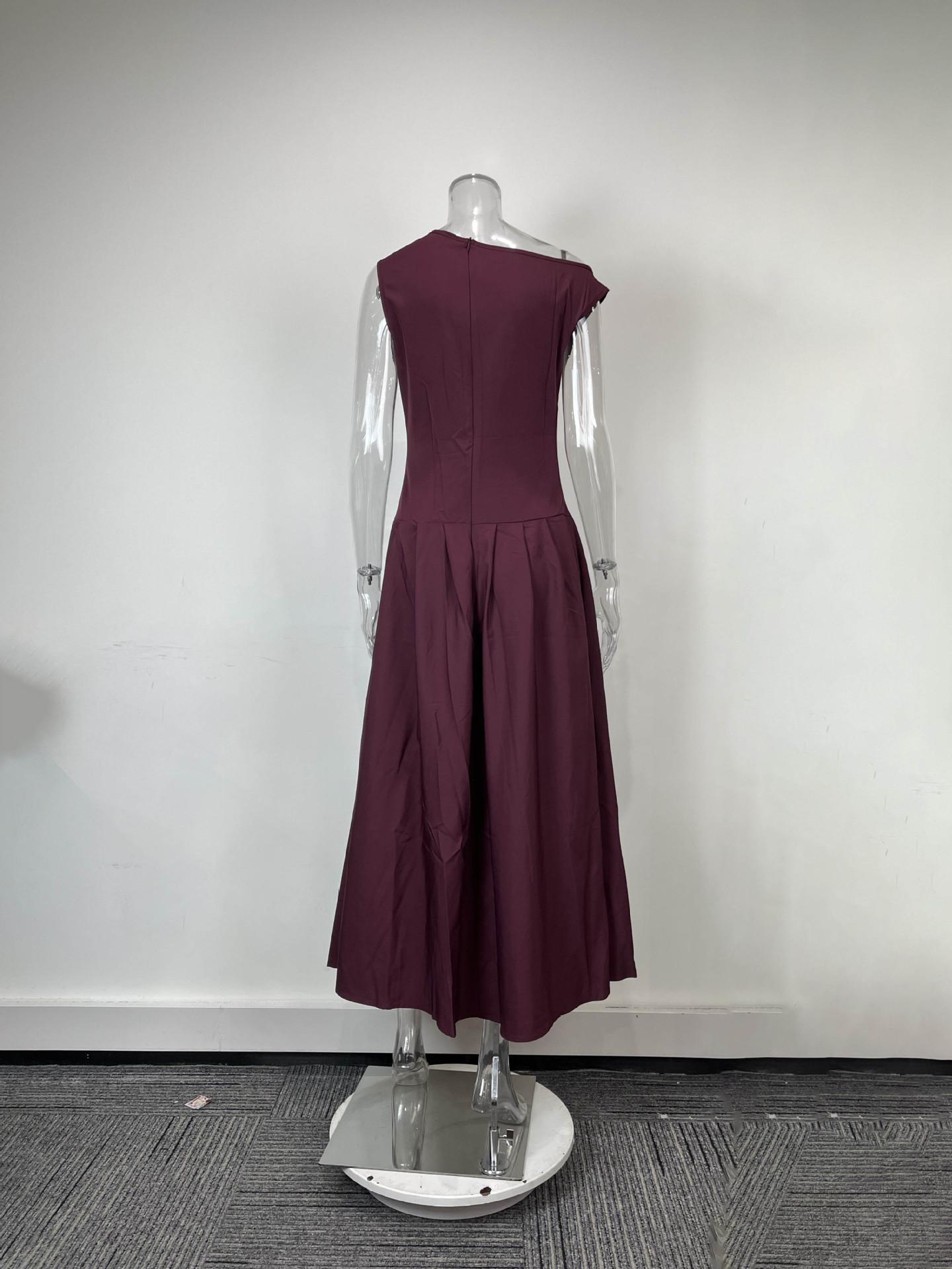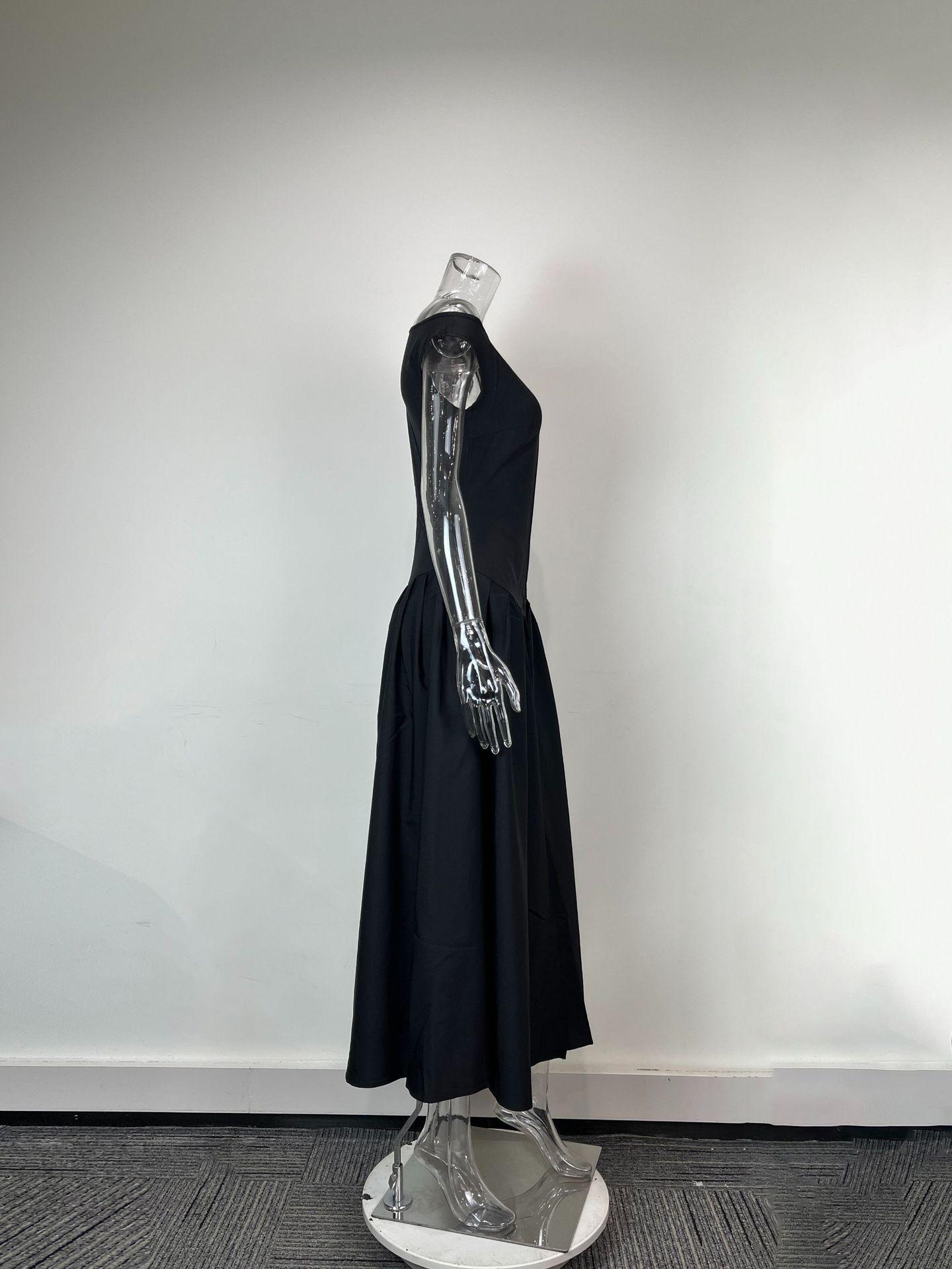 Transfronterizo 2025 Amazon Nuevo Vestido Elegante para Mujer Europeo y Americano Moda Cintura Alta Color Sólido Vestido de Primavera
