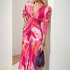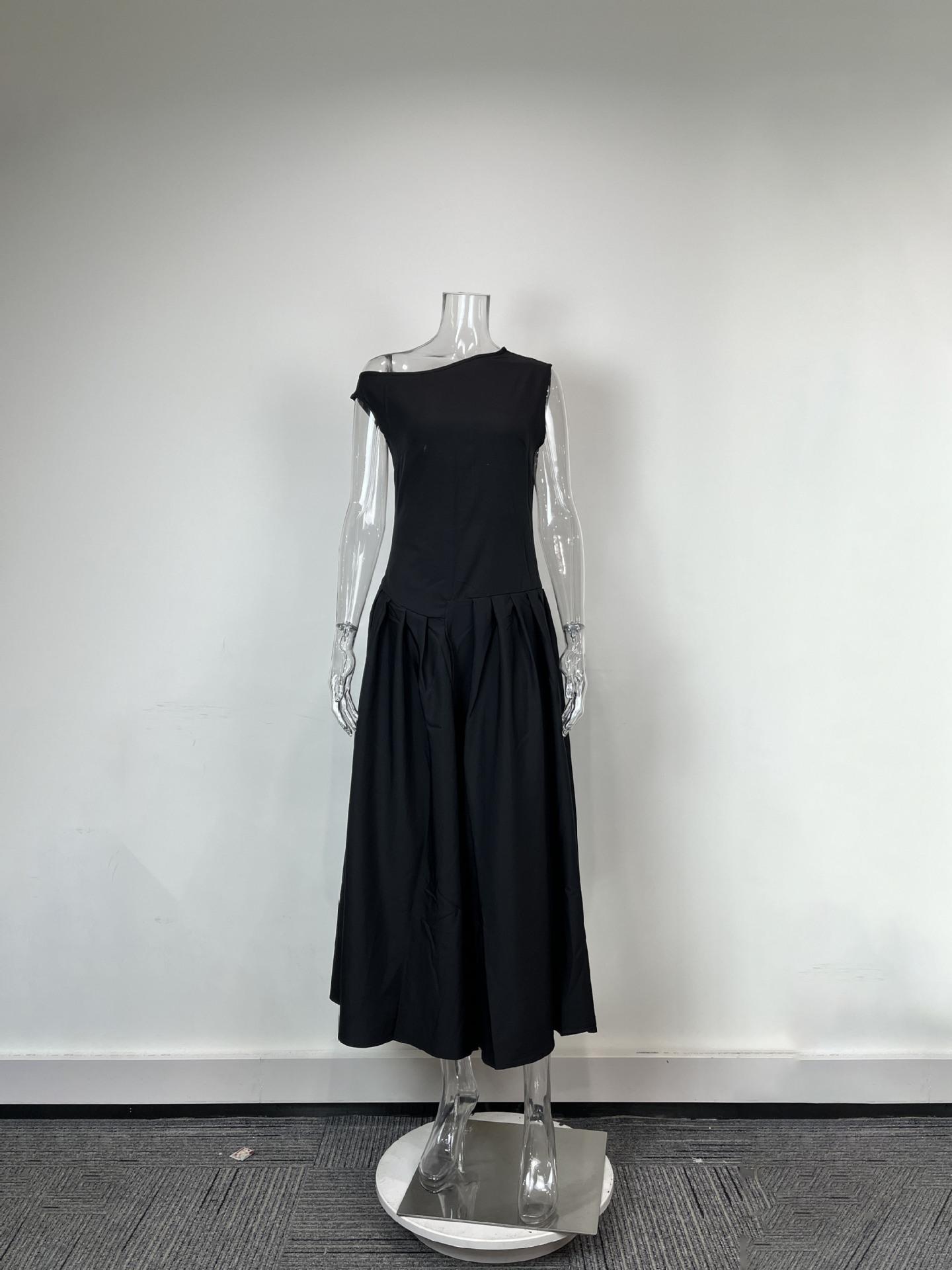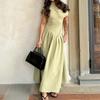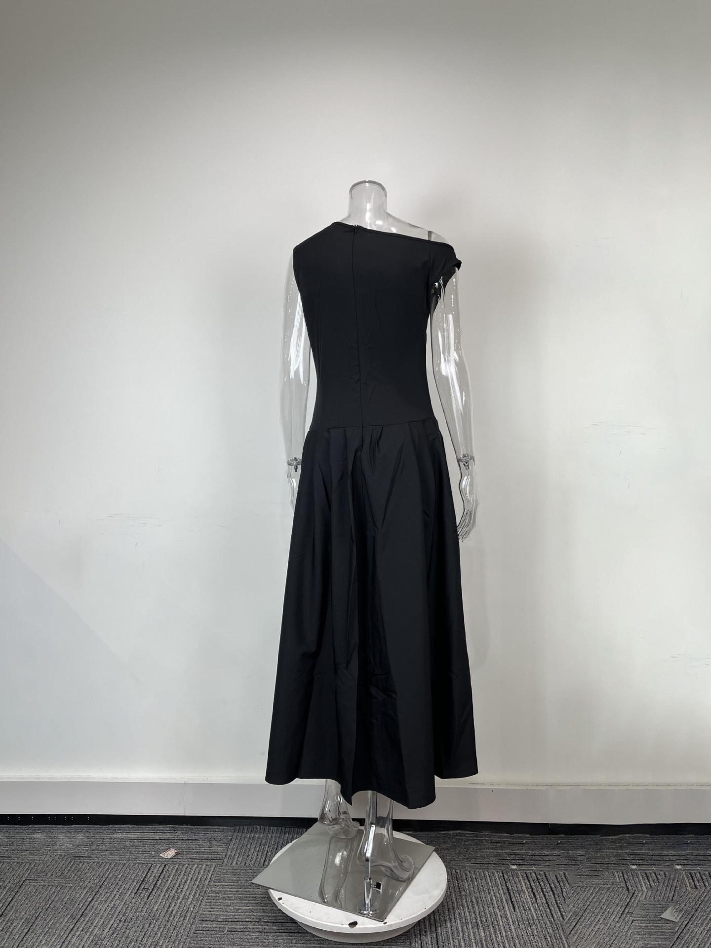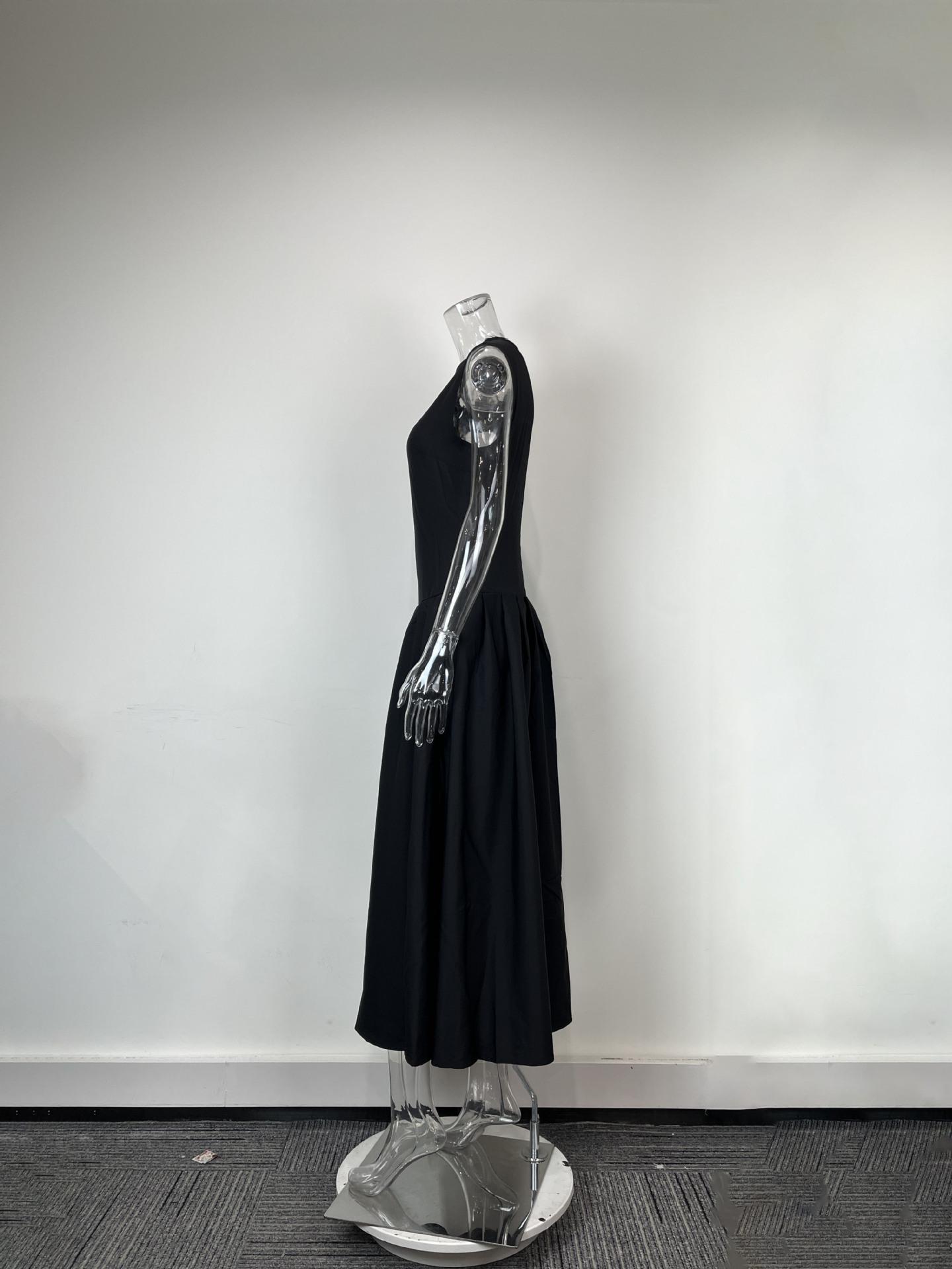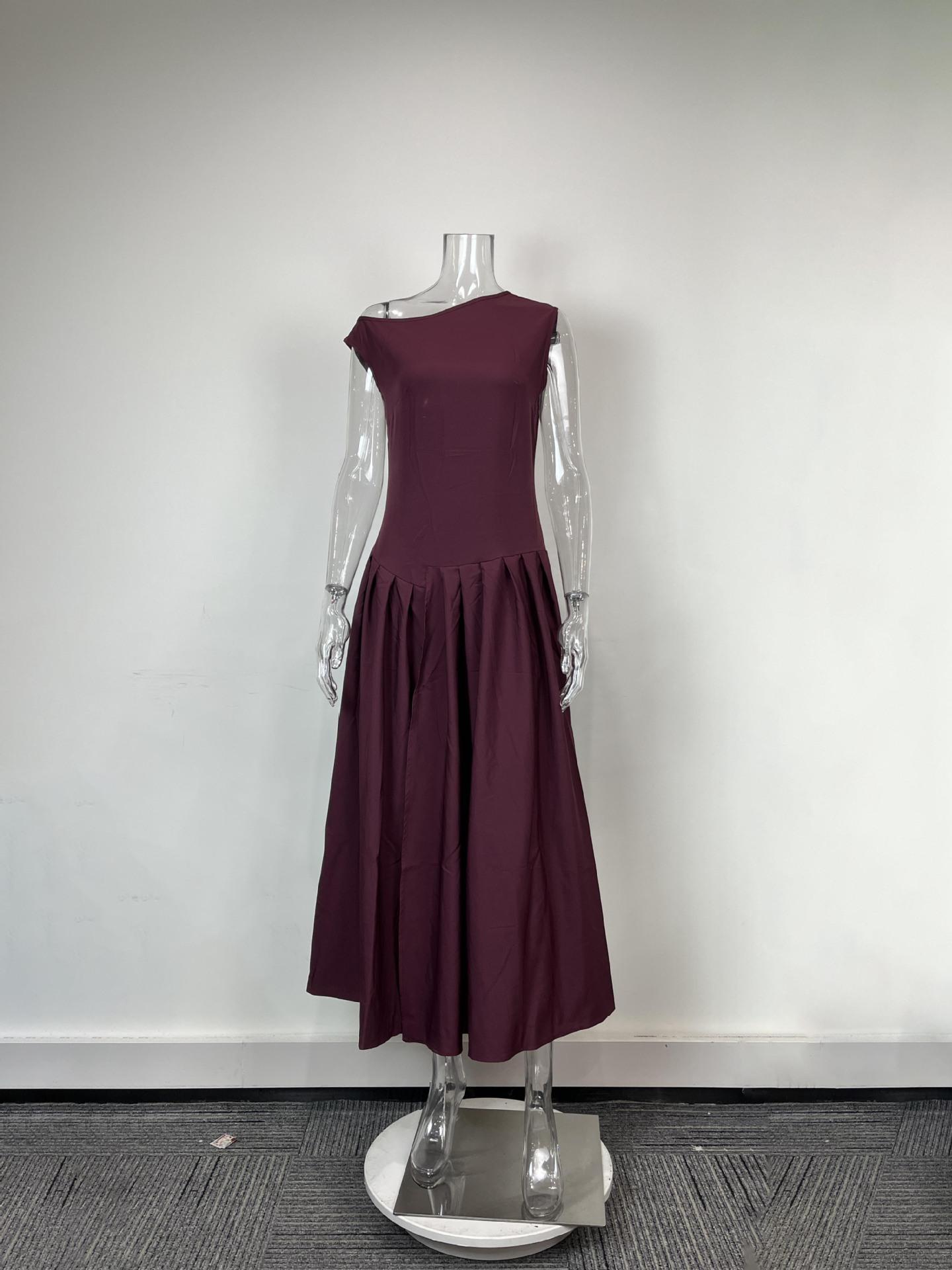 Transfronterizo 2025 Amazon Nuevo Vestido Elegante para Mujer Europeo y Americano Moda Cintura Alta Color Sólido Vestido de Primavera