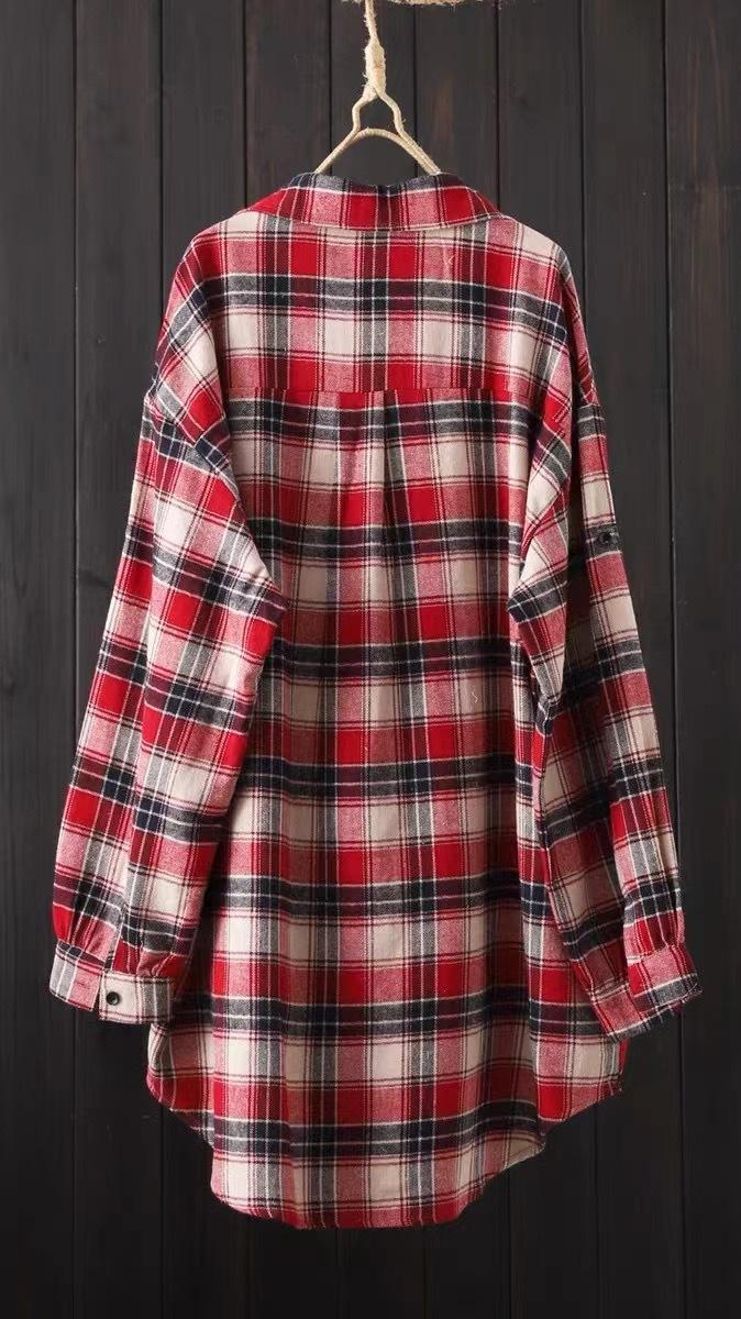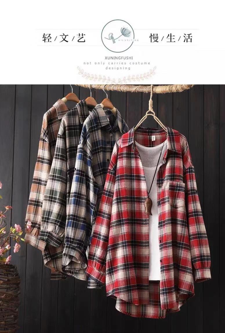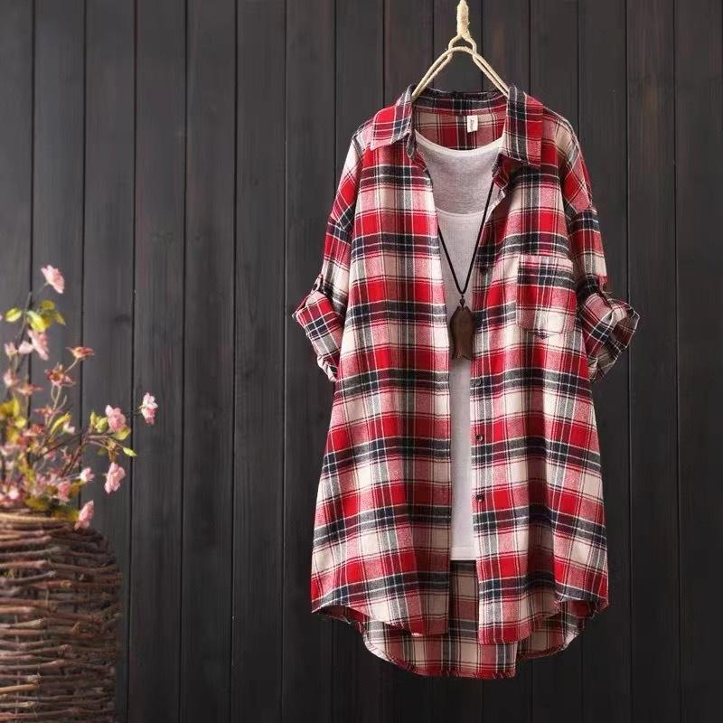 Camisa a cuadros para mujer, abrigo de primavera y otoño, nueva, informal, de largo medio, holgada, ajustada, tipo cárdigan exterior