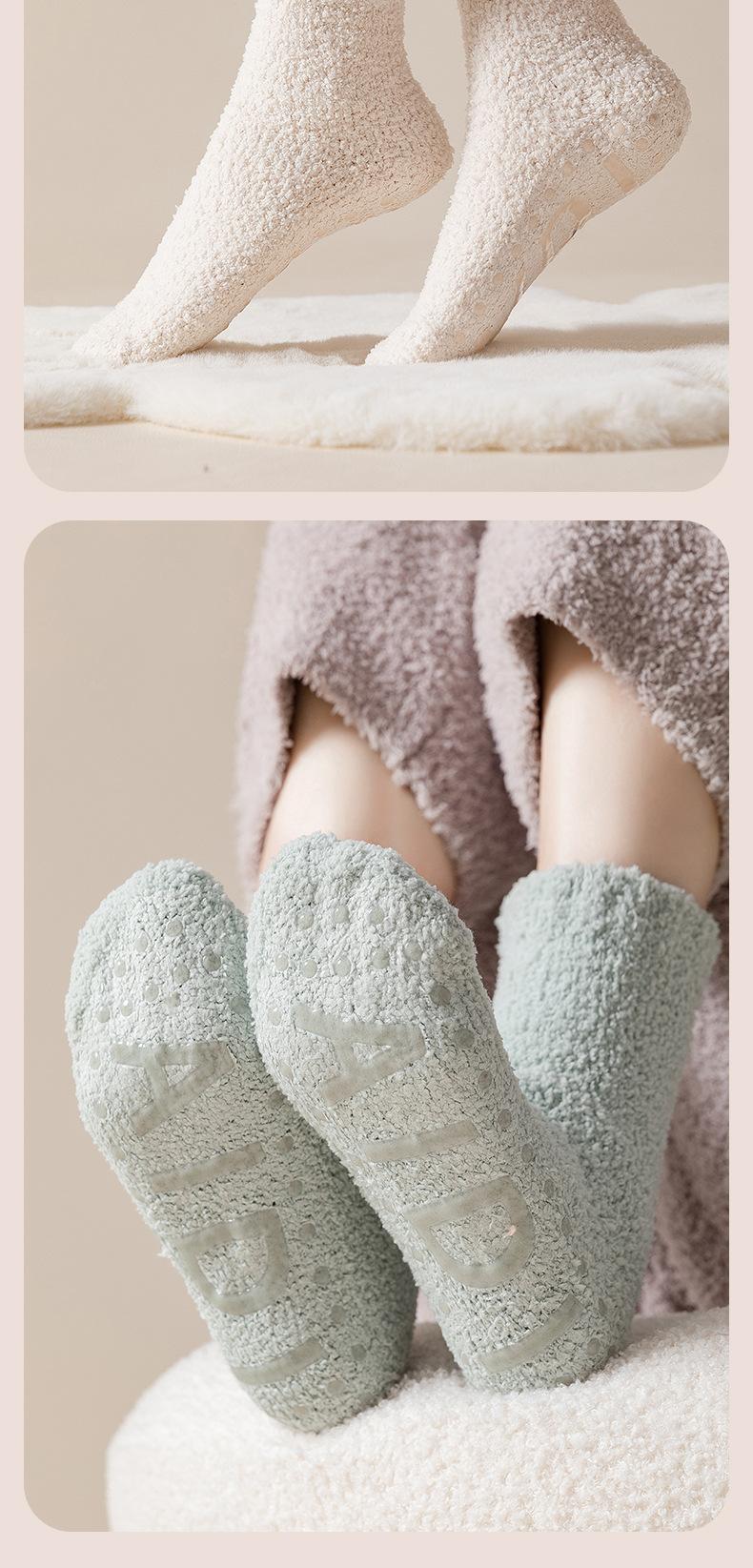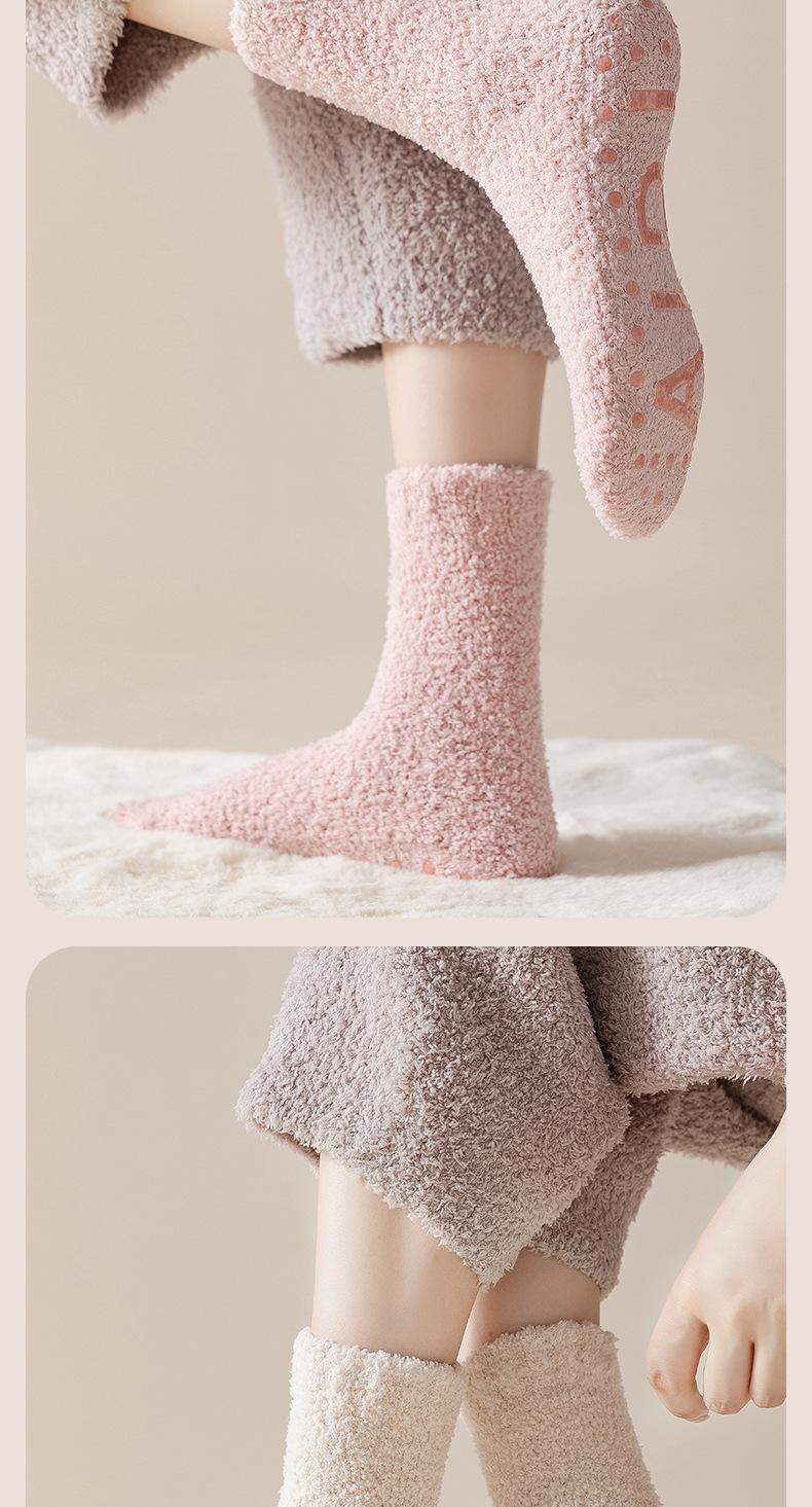Calcetines de Vellón Coral Calcetines de Piso Antideslizantes de Silicona Calcetines Largos Gruesos Cálidos con Forro Polar de Invierno para Mujer Calcetines de Dormir Lunares para Casa