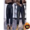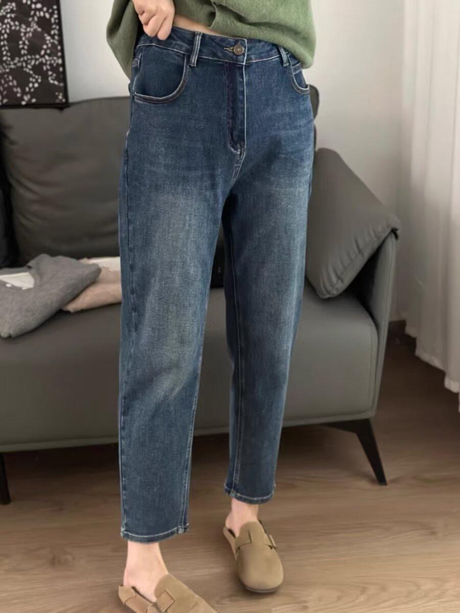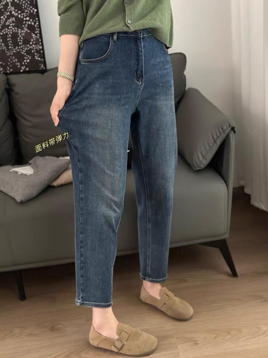 Pantalones vaqueros harén elásticos con forma de pera de talla grande para mujer, pantalones de papá rectos recortados con cintura alta y adelgazantes de primavera y otoño
