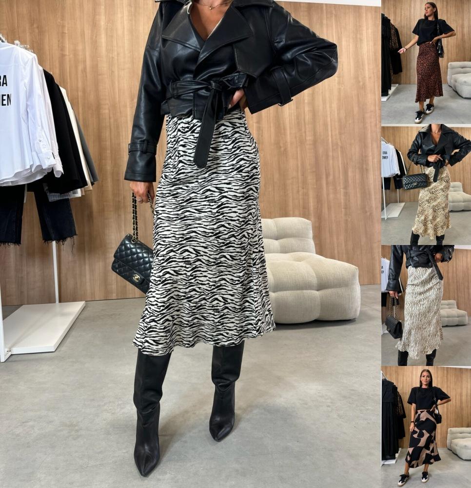 2024 explosión moda otoño falda de mujer estampada adelgazante de cintura alta mujer