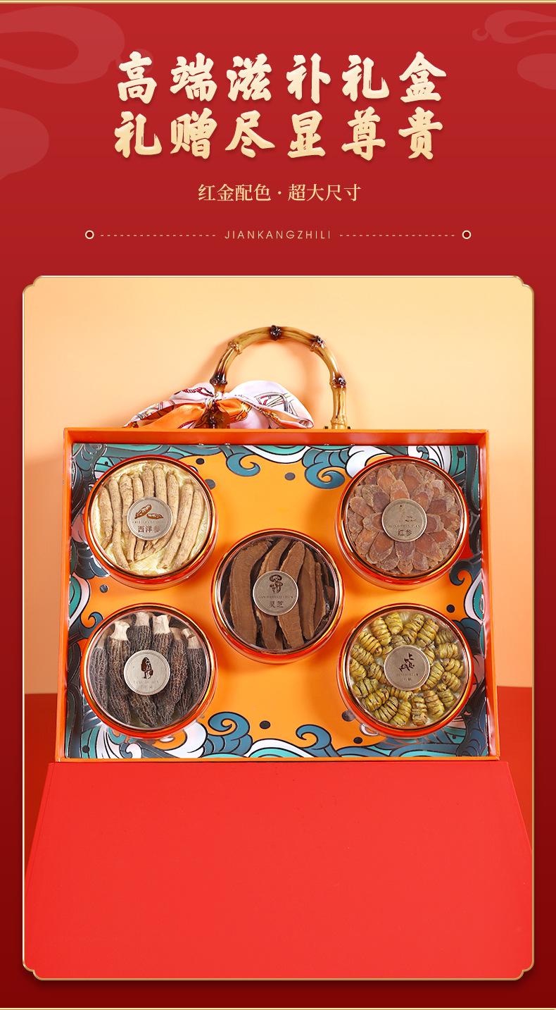 Caja de regalo combinada de cinco piezas de ginseng americano canadiense regalo Morchella Ganoderma lucidum ginseng rojo Dendrobium candidum tónico