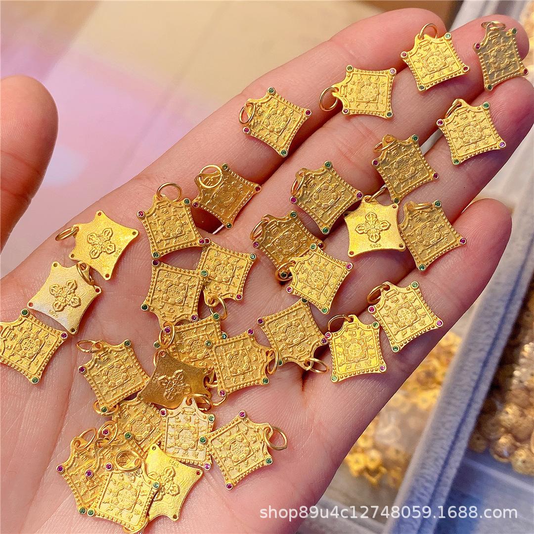 Color Oro Antiguo Conservador de Color Plata S925 Marca Fortuna Paz y Alegría Marca Flor Pulsera Colgante Accesorios para Pulsera DIY Accesorios de Plata