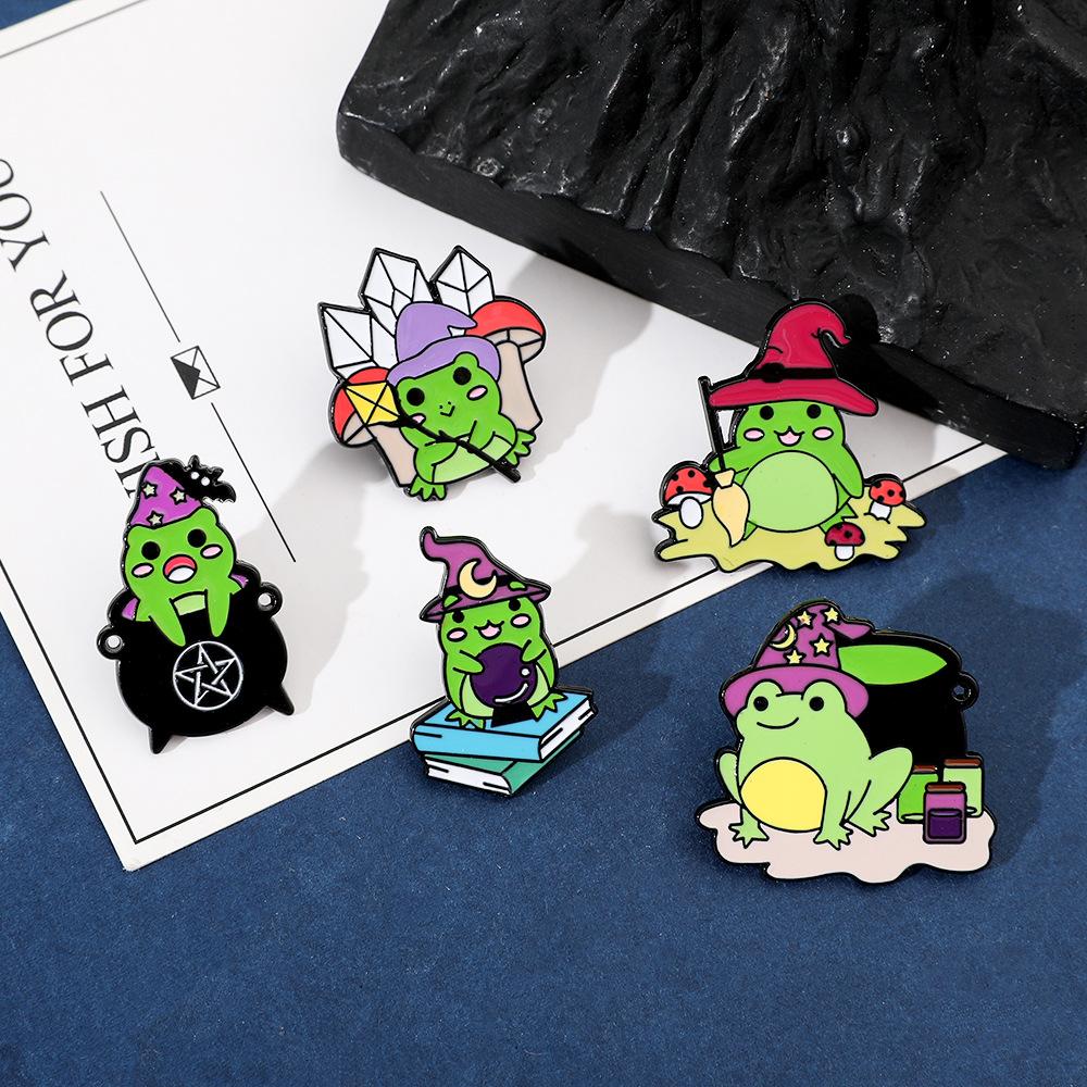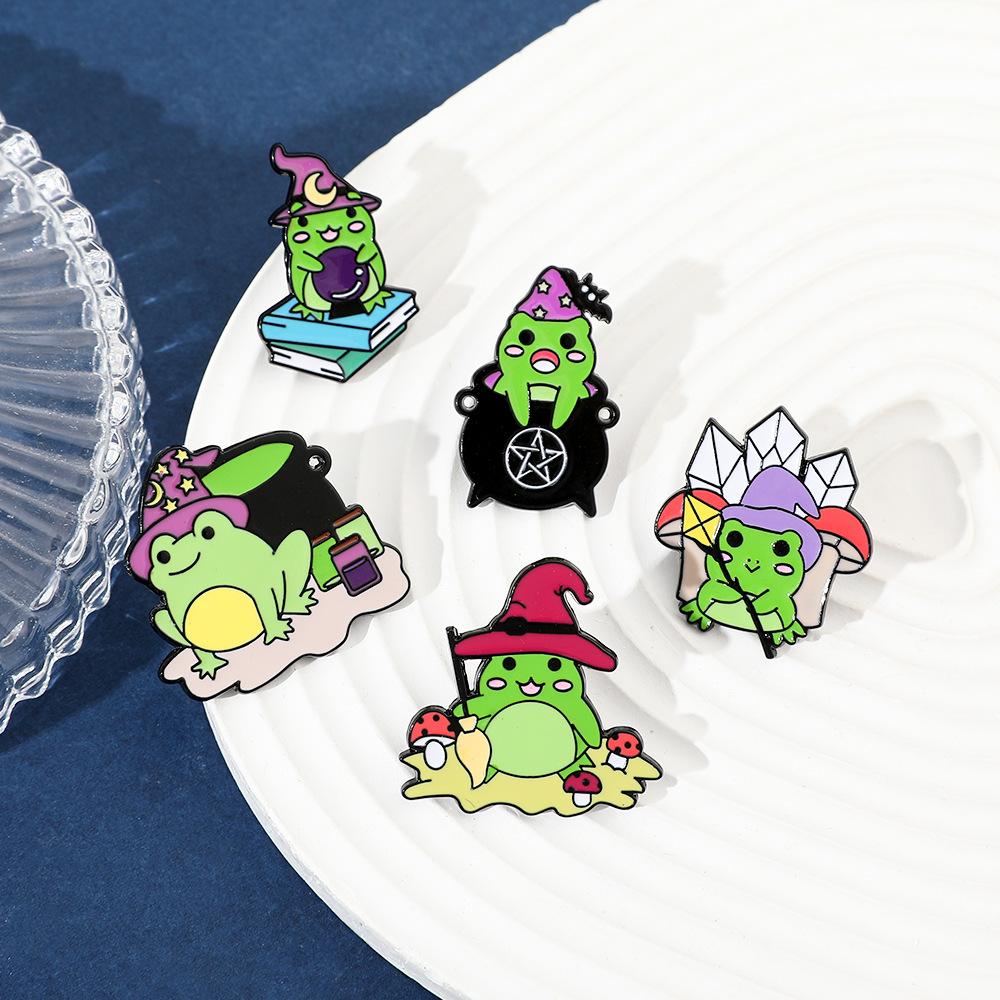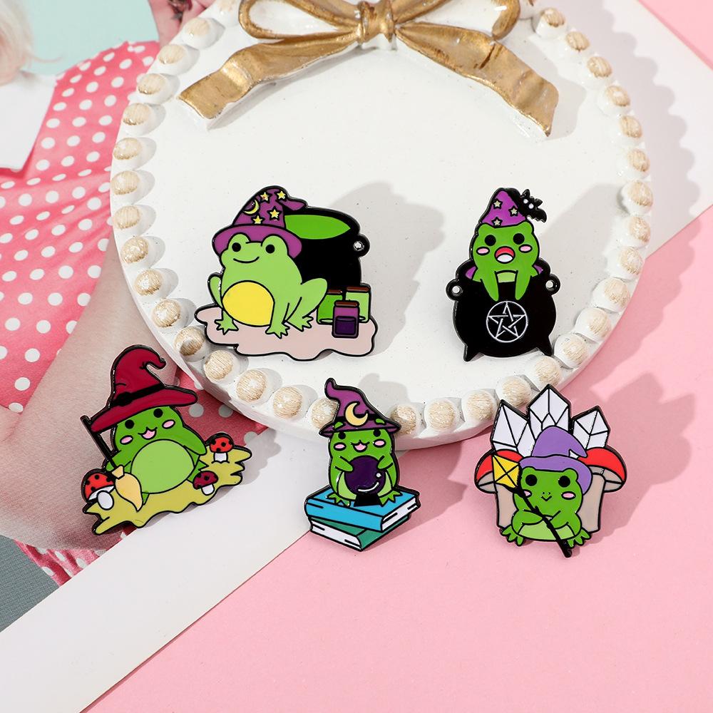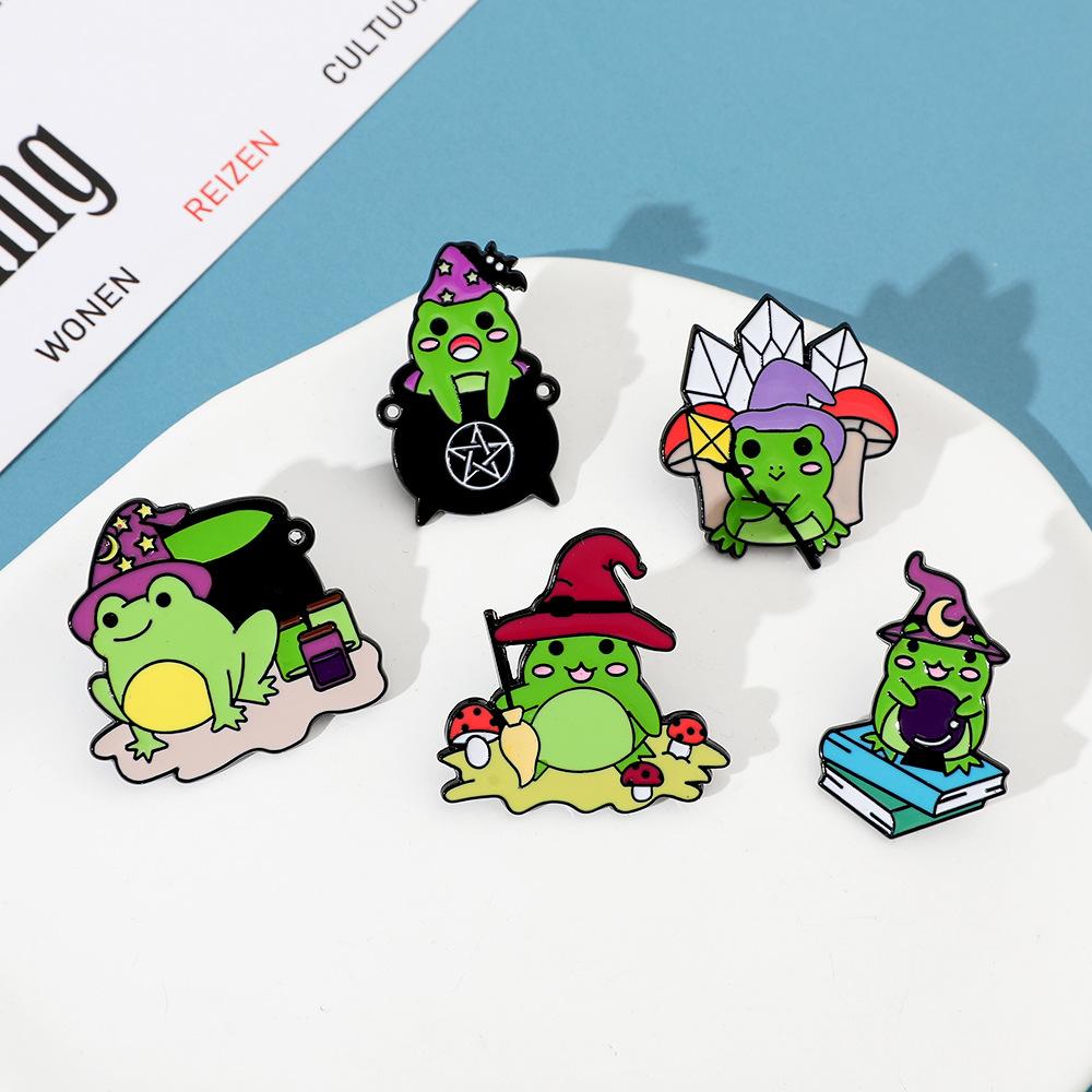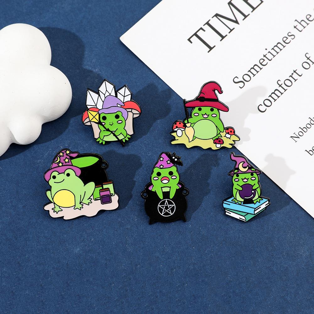 Broche de rana mágica creativa de dibujos animados tema Wansheng forma de rana insignia de metal aleación goteo de aceite accesorios pin