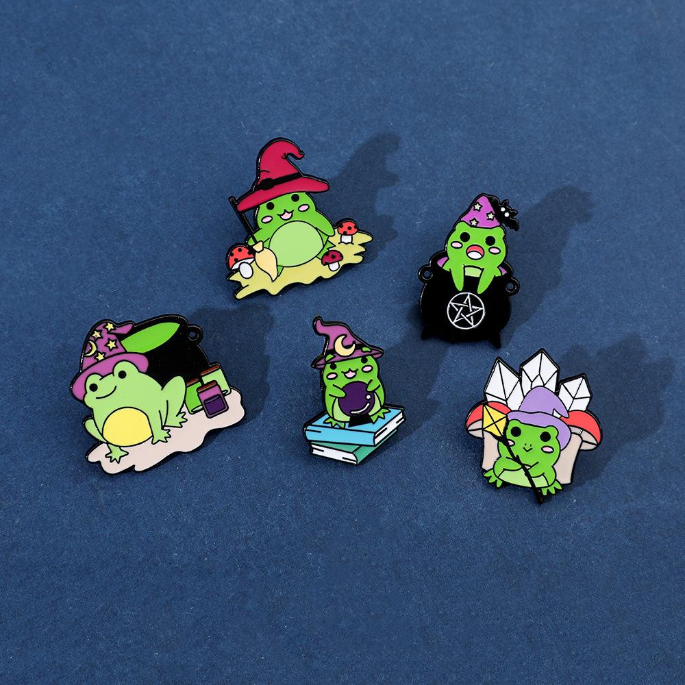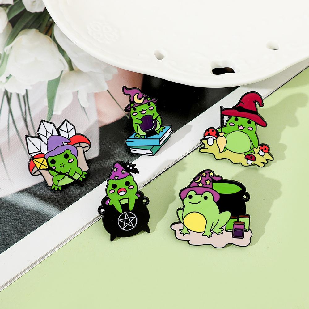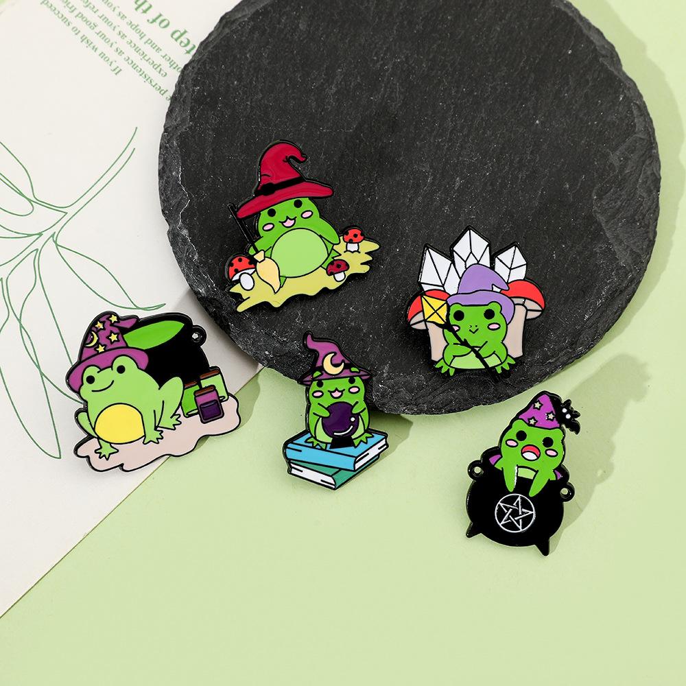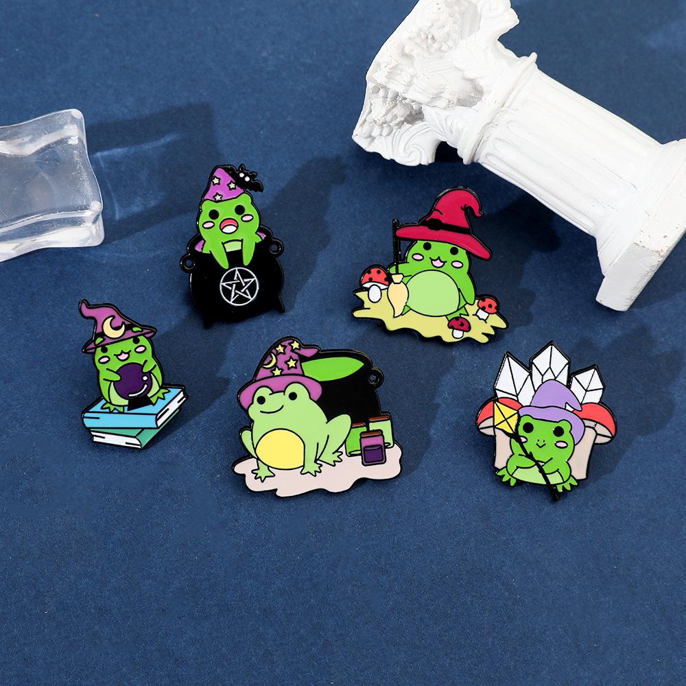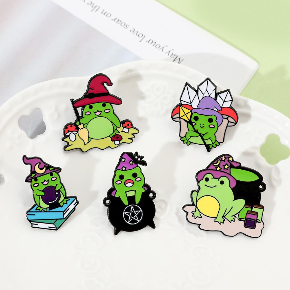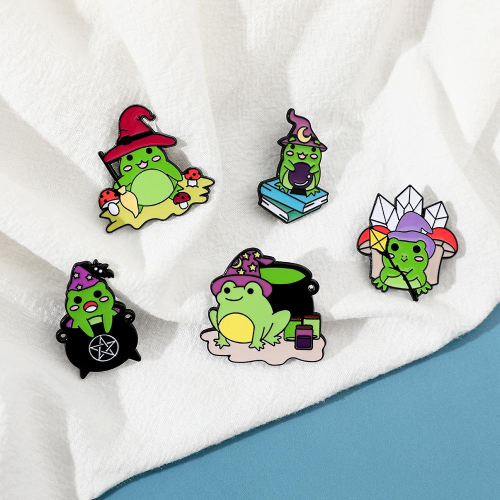 Broche de rana mágica creativa de dibujos animados tema Wansheng forma de rana insignia de metal aleación goteo de aceite accesorios pin