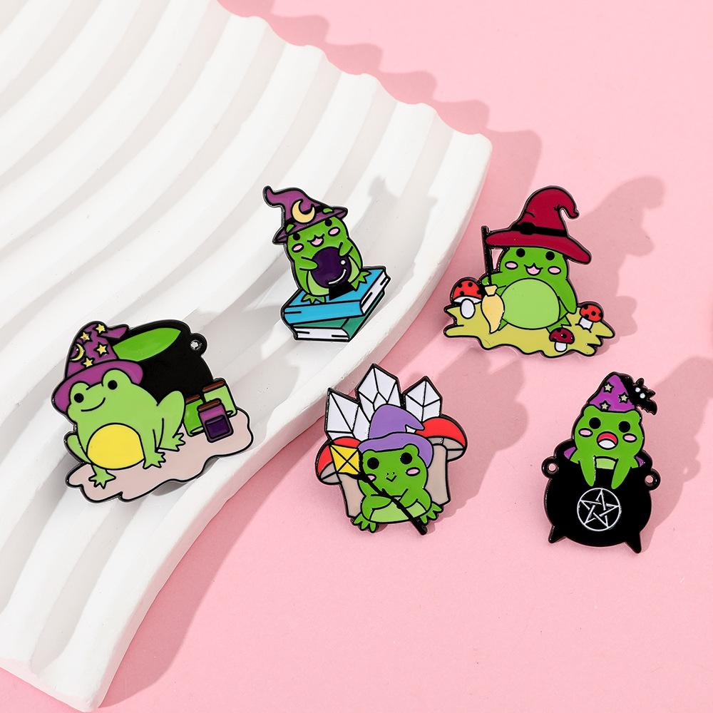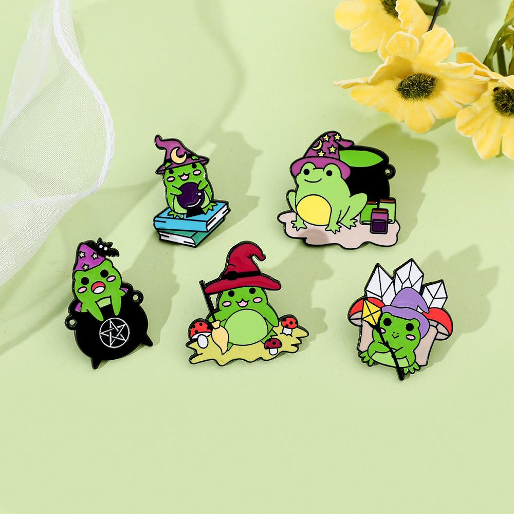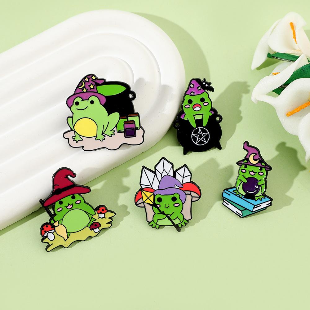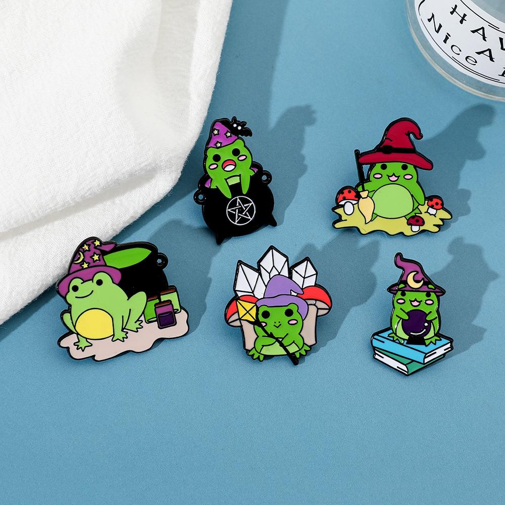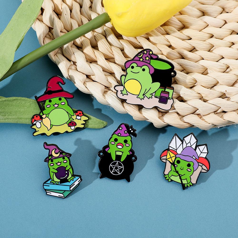 Broche de rana mágica creativa de dibujos animados tema Wansheng forma de rana insignia de metal aleación goteo de aceite accesorios pin