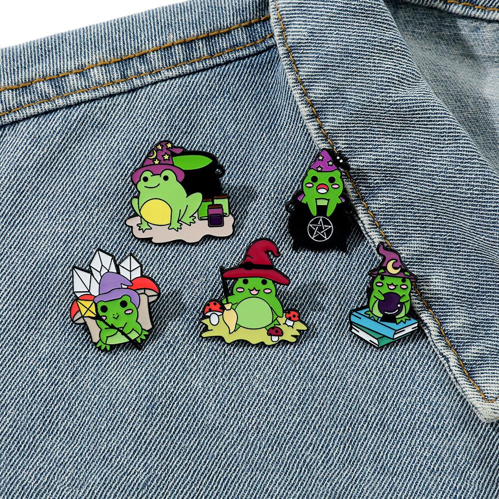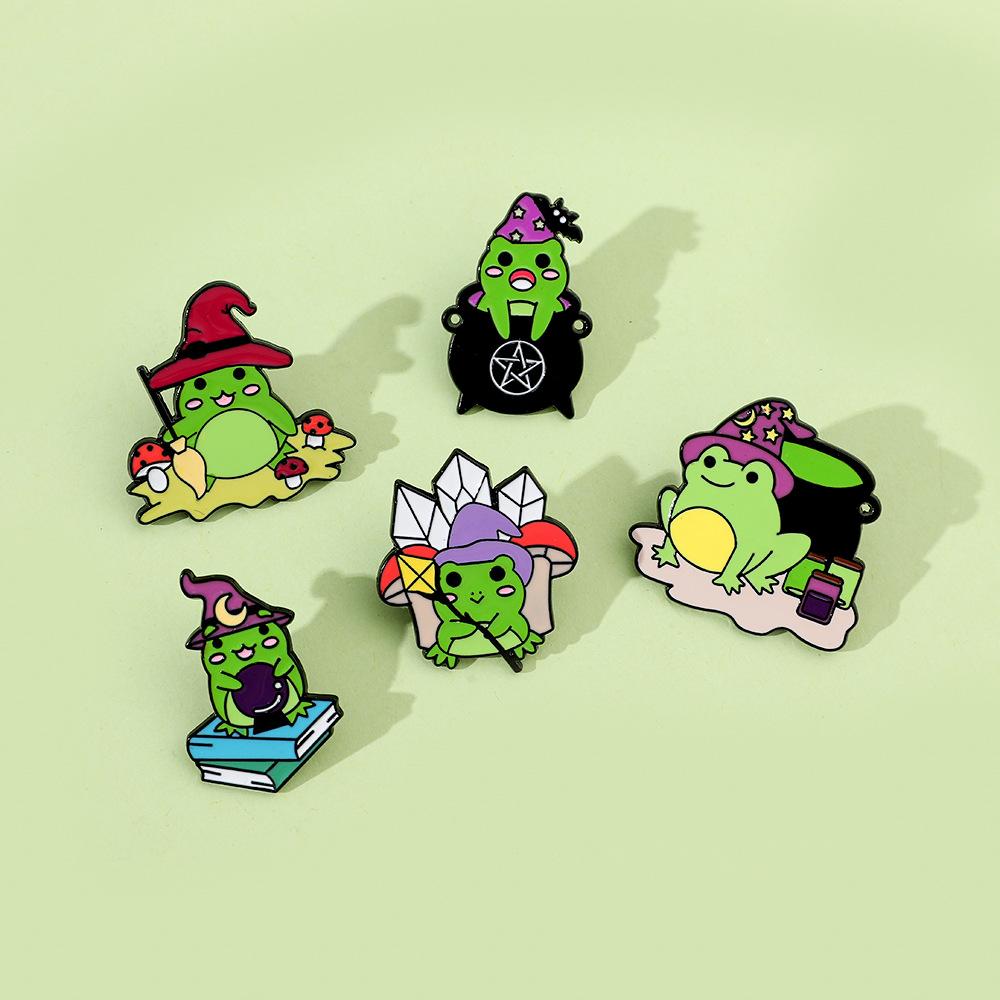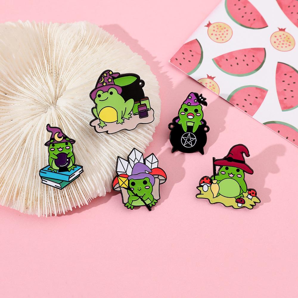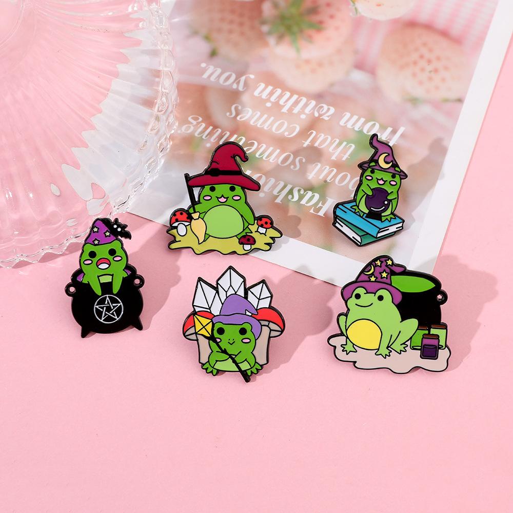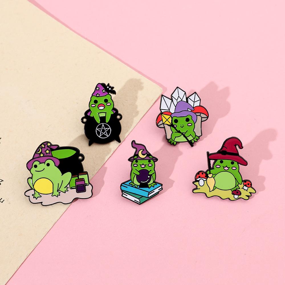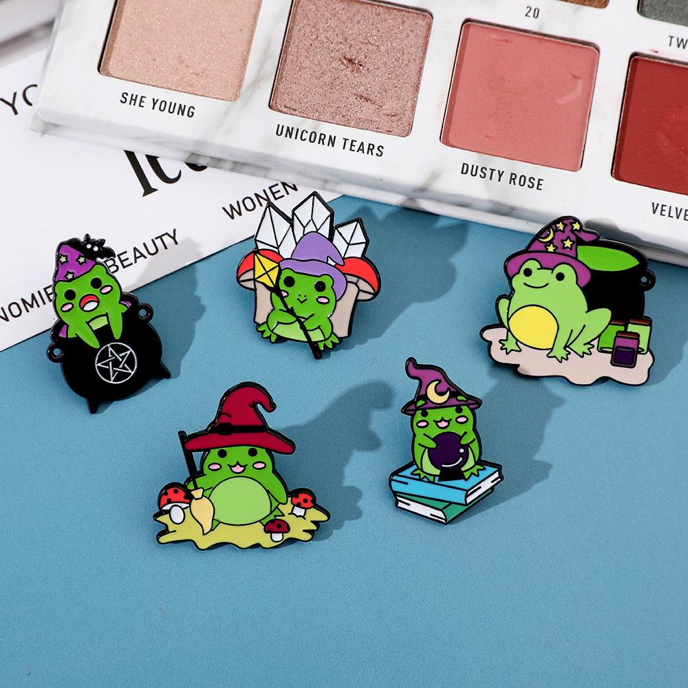 Broche de rana mágica creativa de dibujos animados tema Wansheng forma de rana insignia de metal aleación goteo de aceite accesorios pin