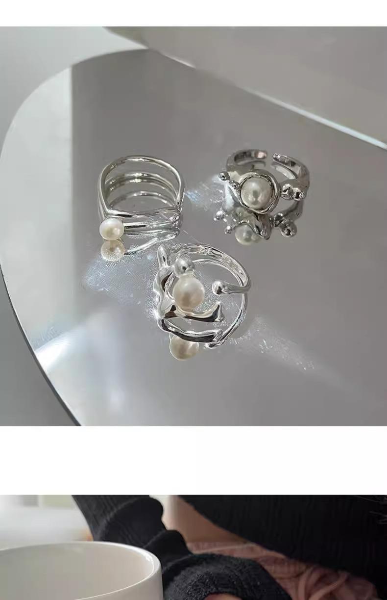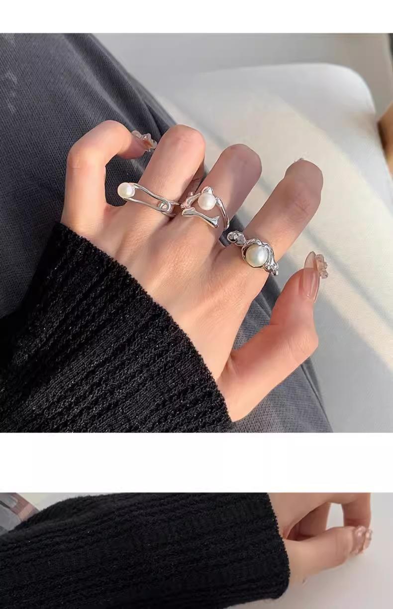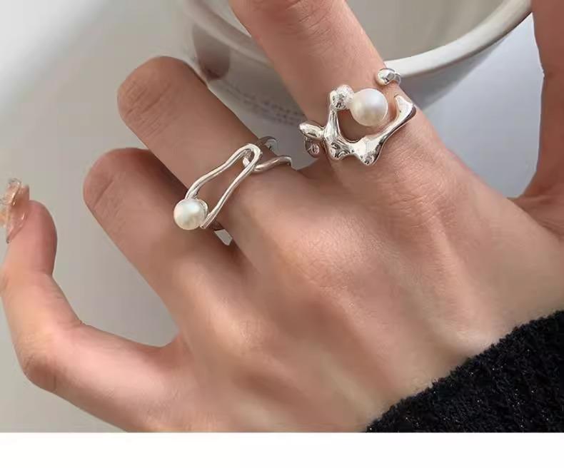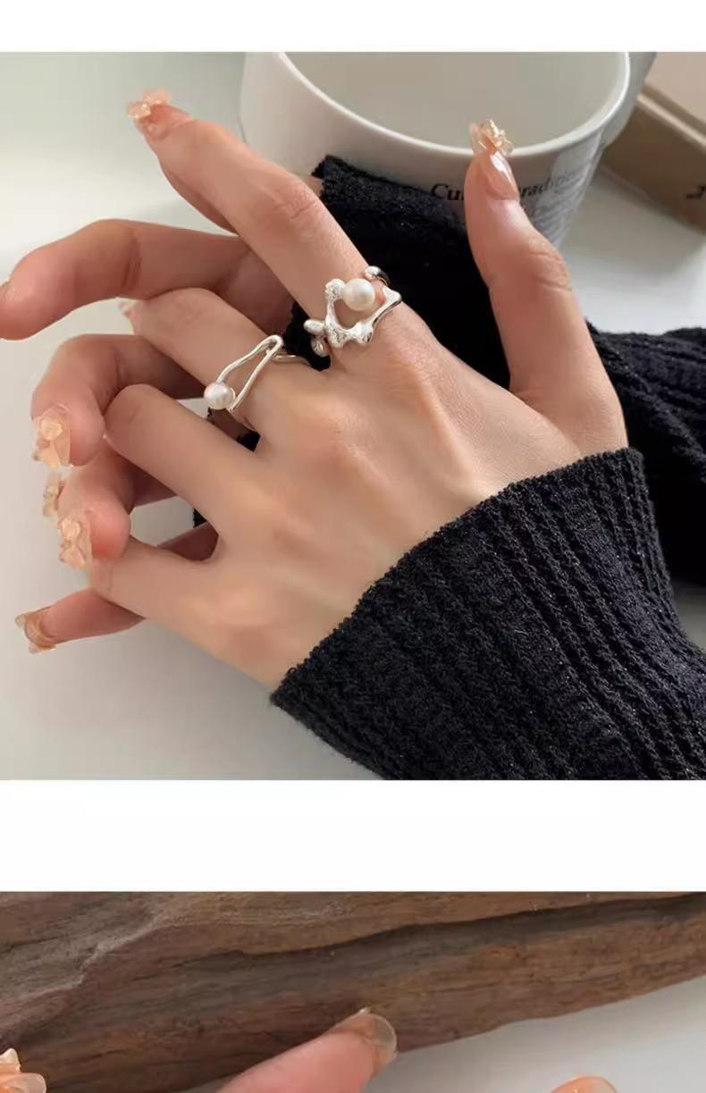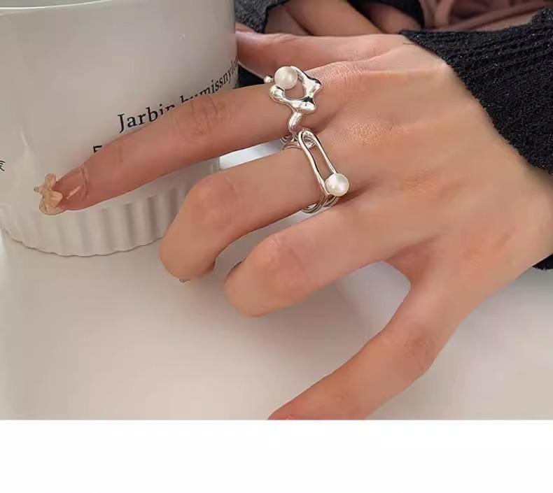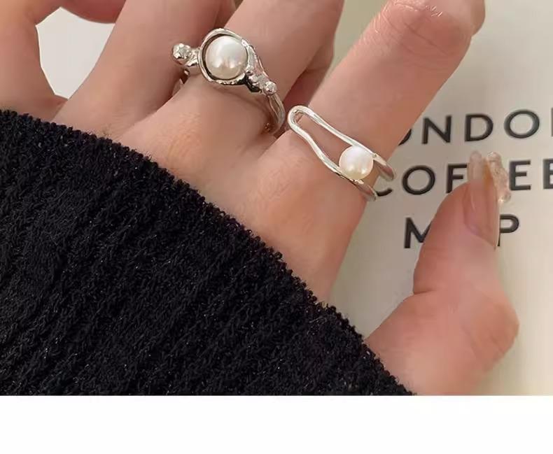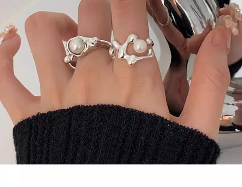 Anillo de perlas para mujer, nuevo anillo de dedo retro de alta gama con nicho irregular, de moda, ligero y de lujo, combinable con todo, 2024
