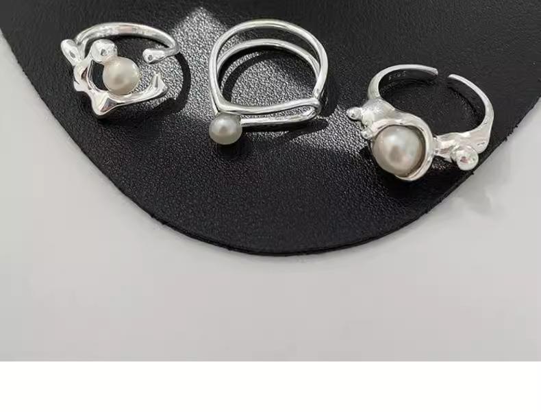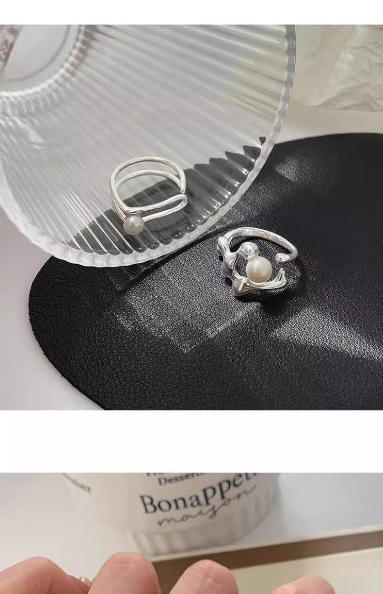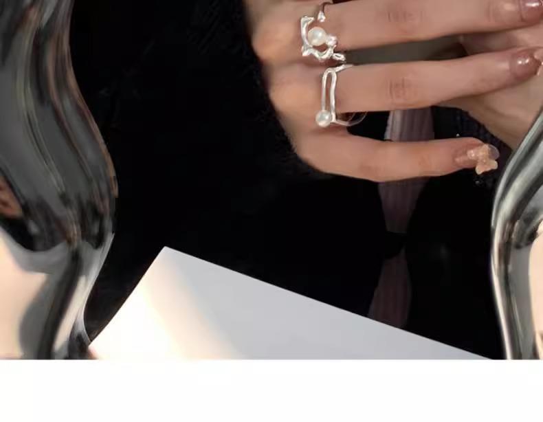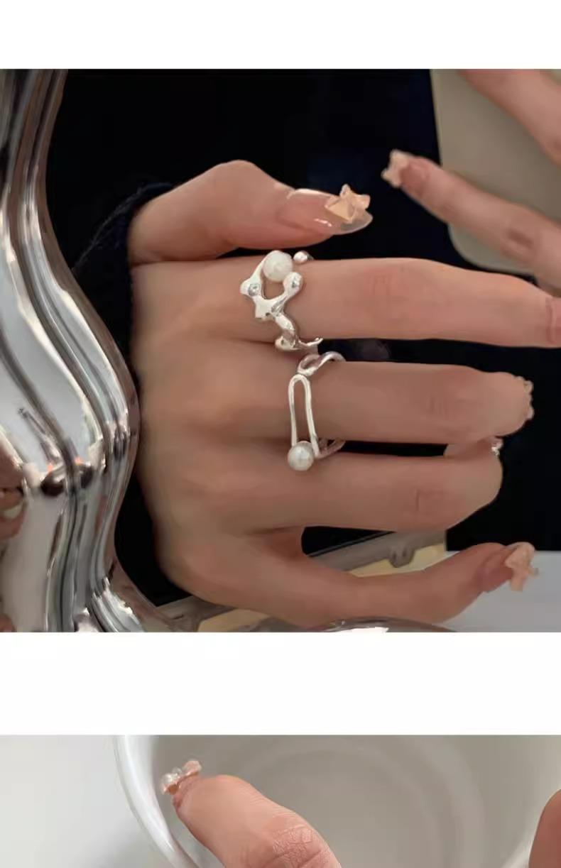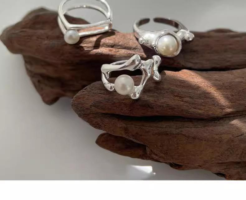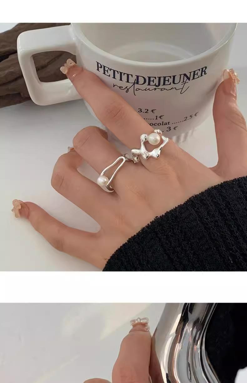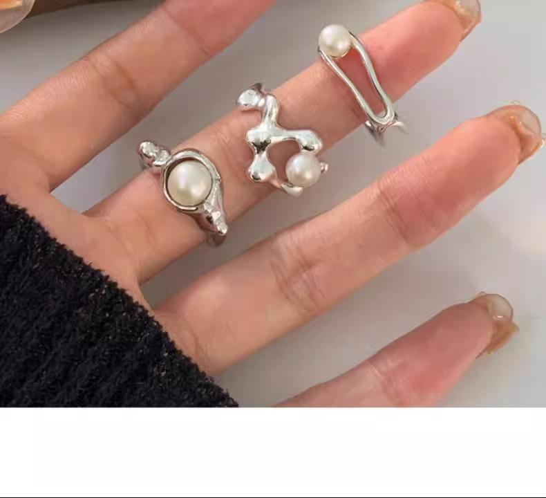 Anillo de perlas para mujer, nuevo anillo de dedo retro de alta gama con nicho irregular, de moda, ligero y de lujo, combinable con todo, 2024