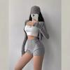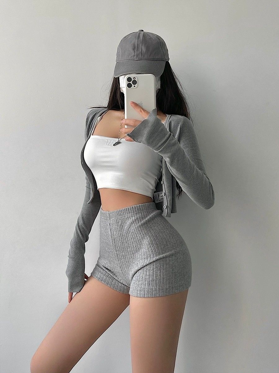 Pantalones cortos deportivos casuales de punto de color sólido con cintura alta, ajustados, sexys, adelgazantes, elásticos, de estilo europeo y americano, transfronterizos