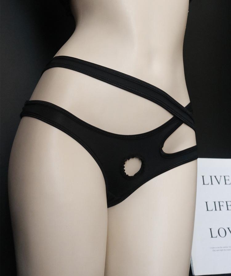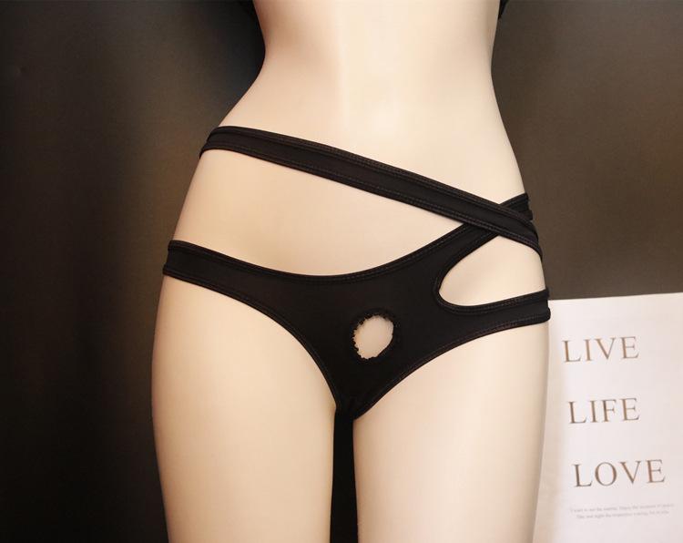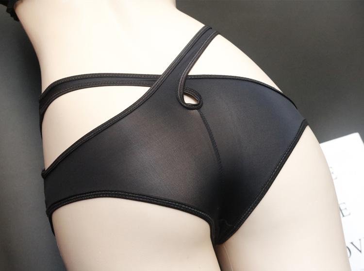 Ropa interior sexy con agujeros en forma de jj, de seda de hielo negra, nueva para hombre, que se puede insertar en un calzoncillo tentador y sexy.
