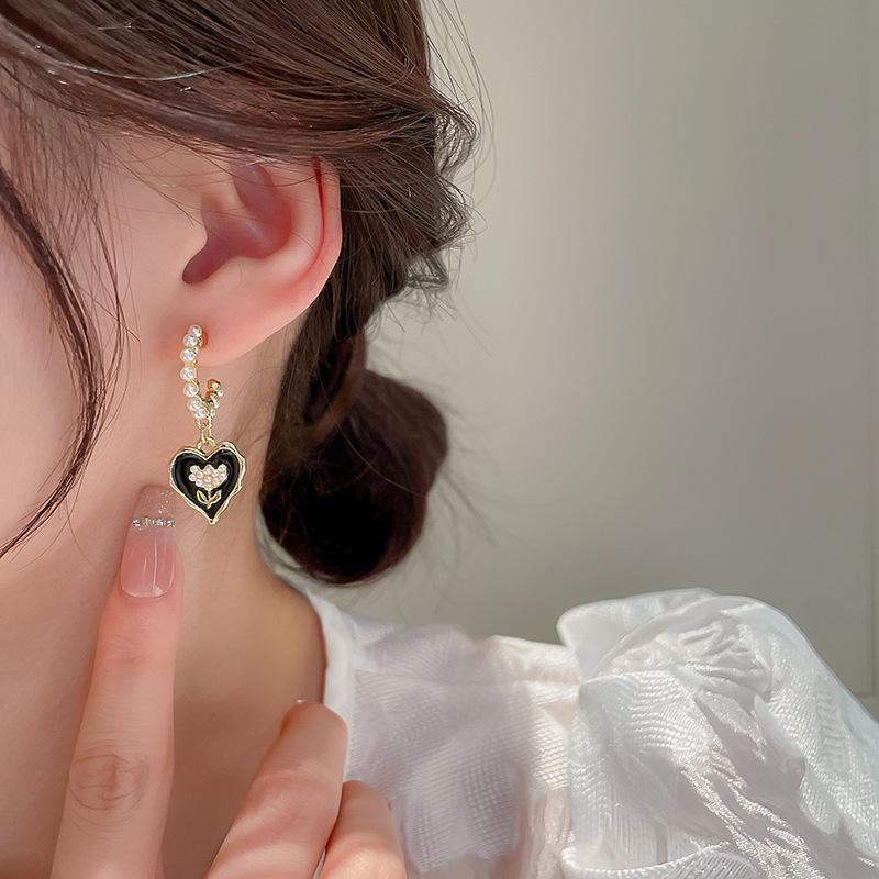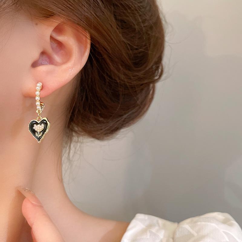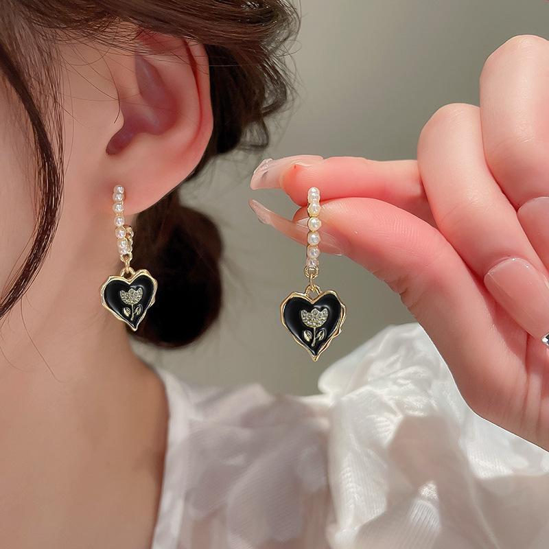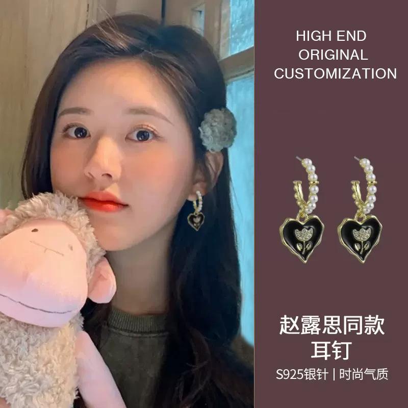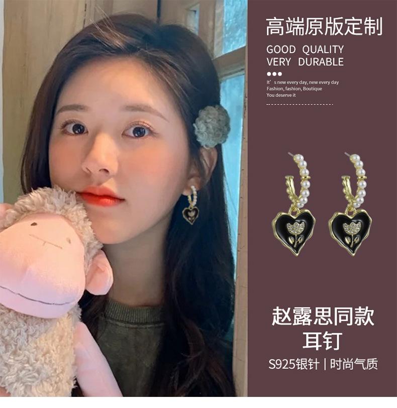 Pendientes de plata s925 con aguja negra, preciosos pendientes de perlas de alta calidad para mujer, nuevos y elegantes pendientes de flores de moda 2023.