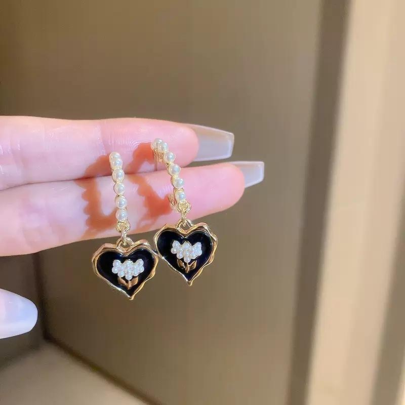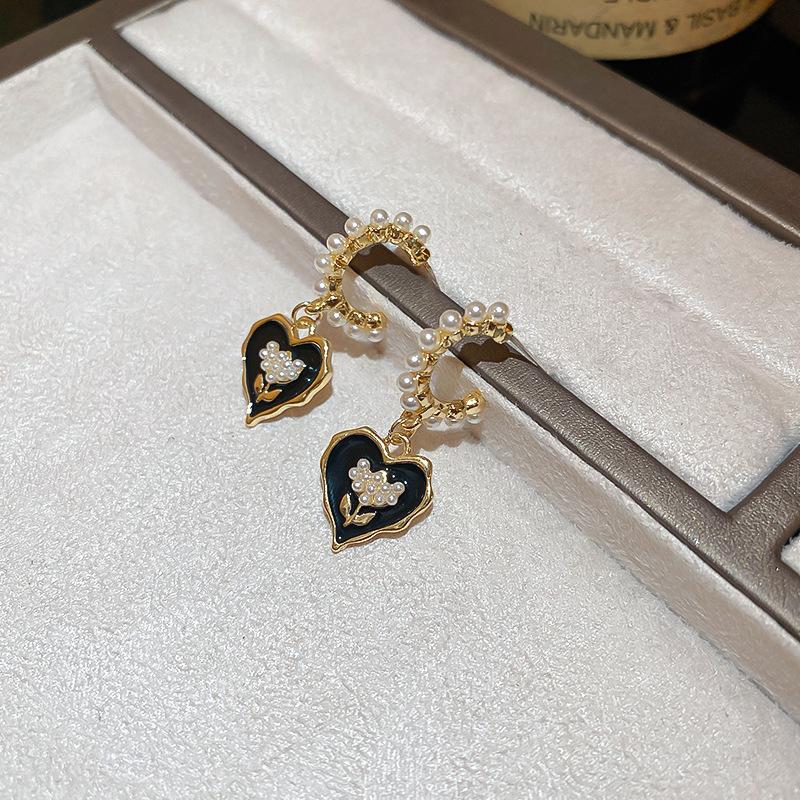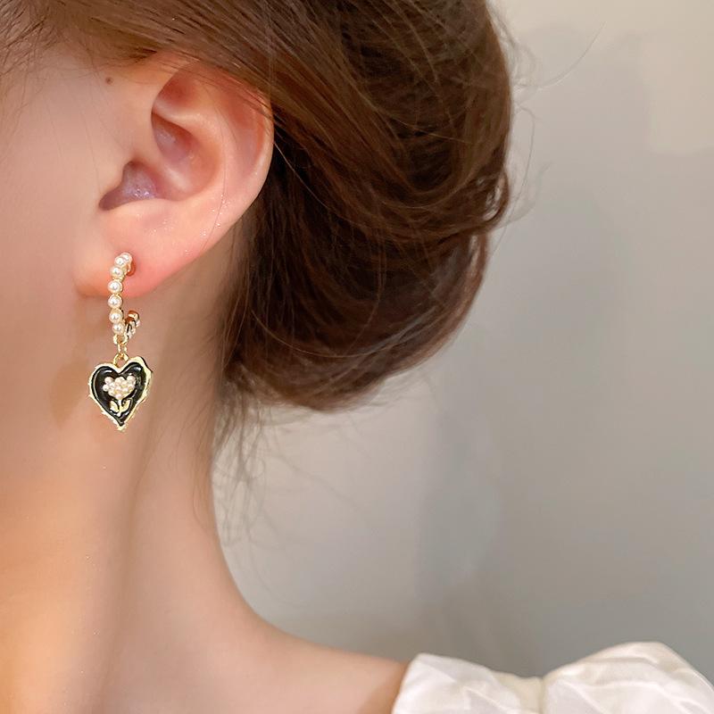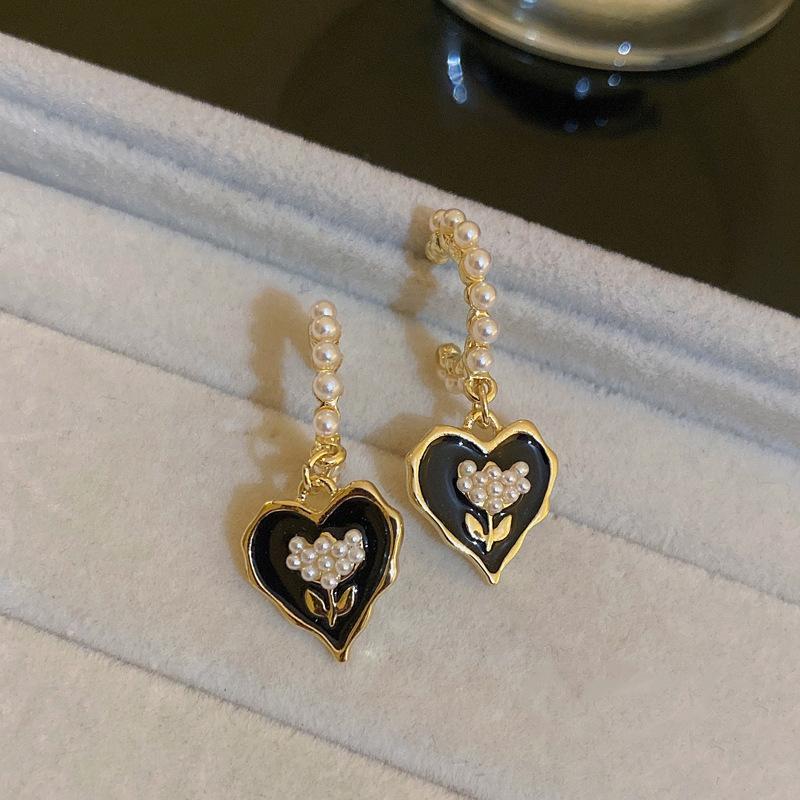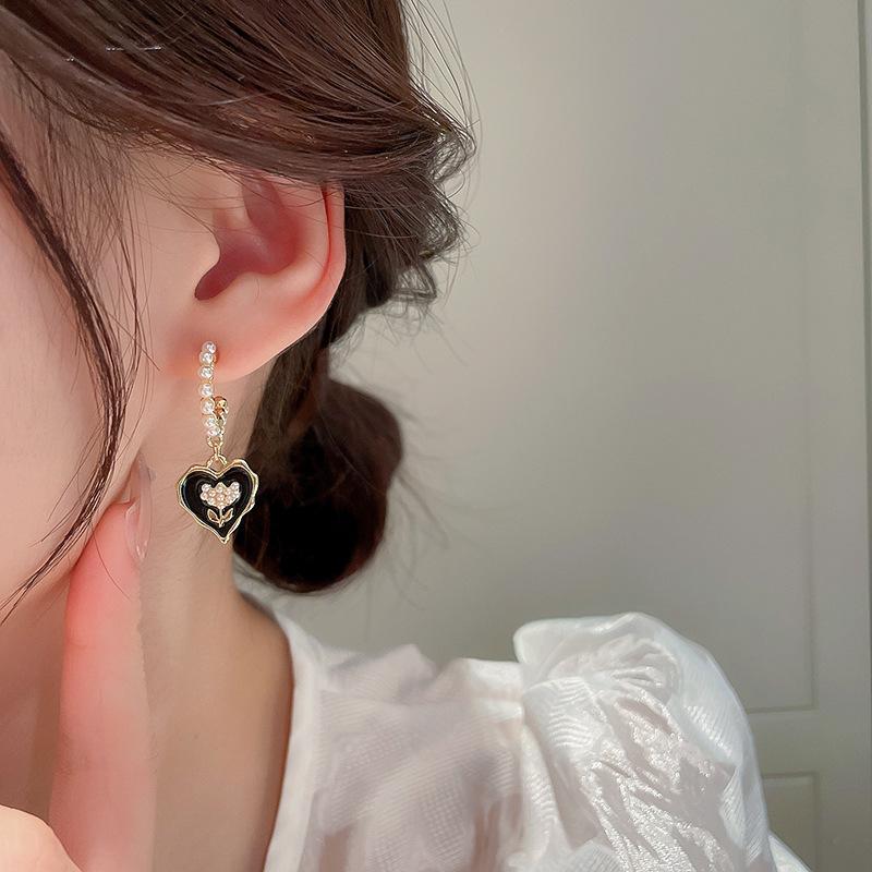 Pendientes de plata s925 con aguja negra, preciosos pendientes de perlas de alta calidad para mujer, nuevos y elegantes pendientes de flores de moda 2023.