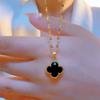 Diseño de nicho collar de trébol de doble cara para mujer cadena de clavícula de lujo ligero de alta gama nueva joyería colgante de doble cara de hierba de la suerte
