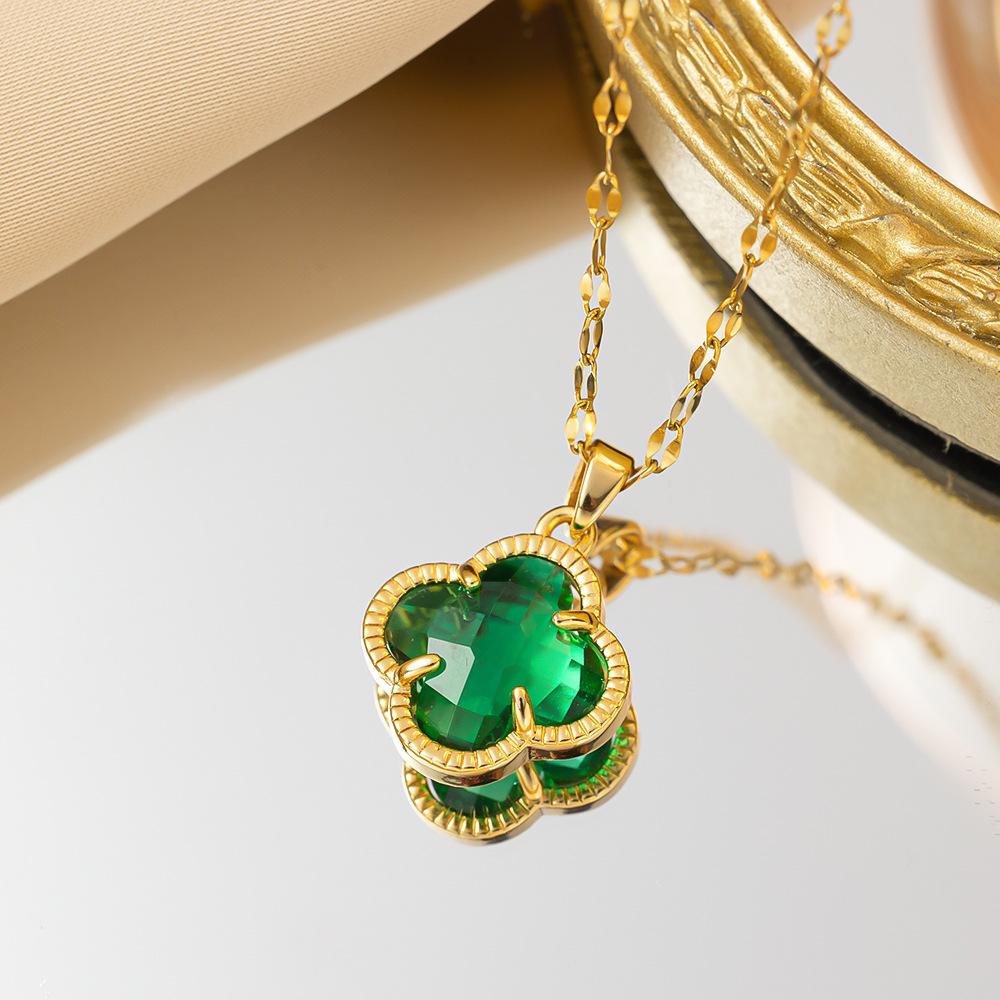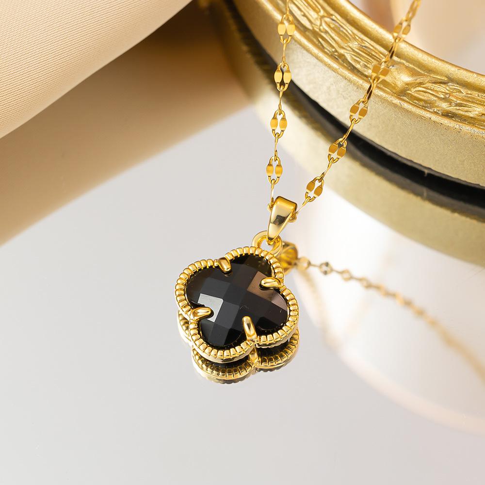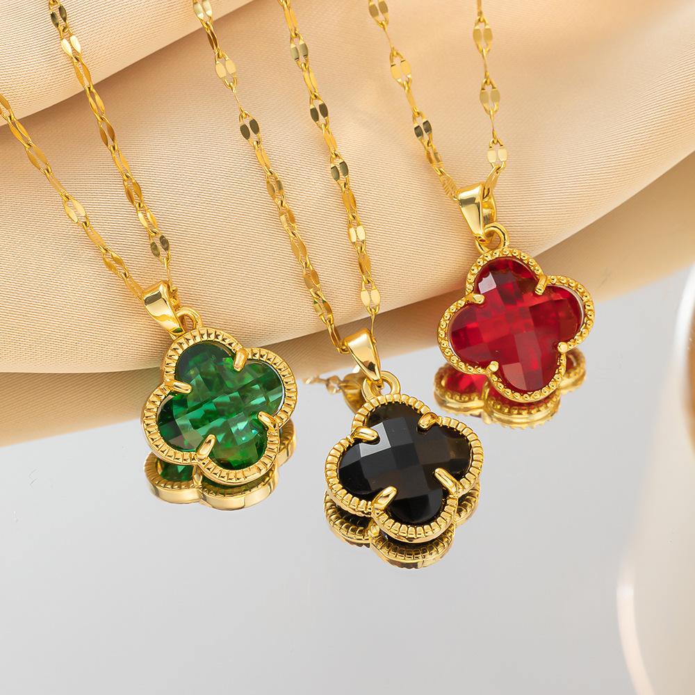 L9066 Clover red necklace gold, L9067 four-leaf clover black necklace gold, L9068 clover green necklace gold