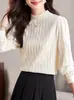 Camiseta de manga larga con cuello medio alto y diseño de principios de otoño para mujer, nueva camiseta de otoño 2024, top corto