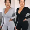 Mono corto de manga larga con cremallera frontal y cuello redondo de color liso ajustado de moda europea y americana