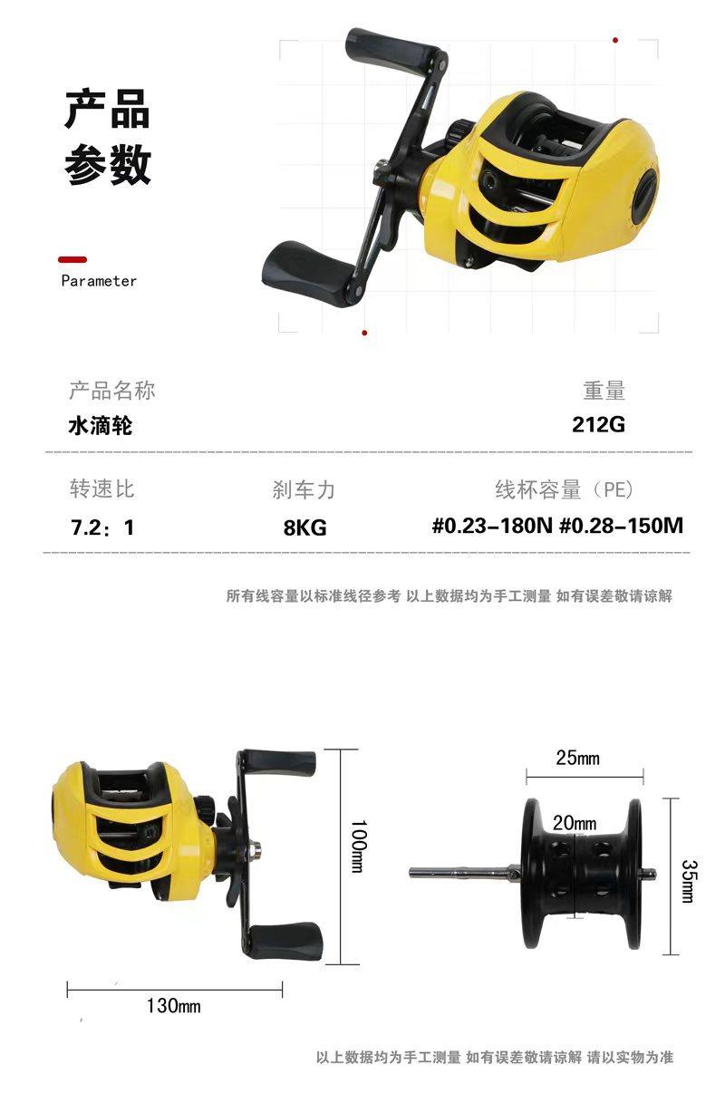 Rueda amarilla pequeña, rueda de gota de agua, rueda de freno magnético universal, rueda de pesca de línea antiexplosiva de lanzamiento largo negra Luya, equipo de pesca, generación mayorista