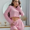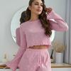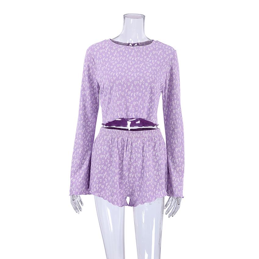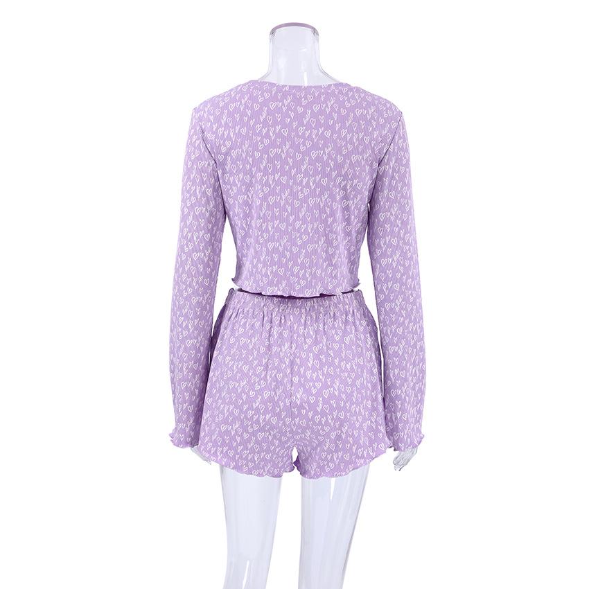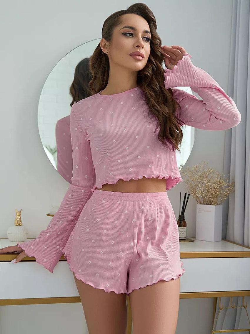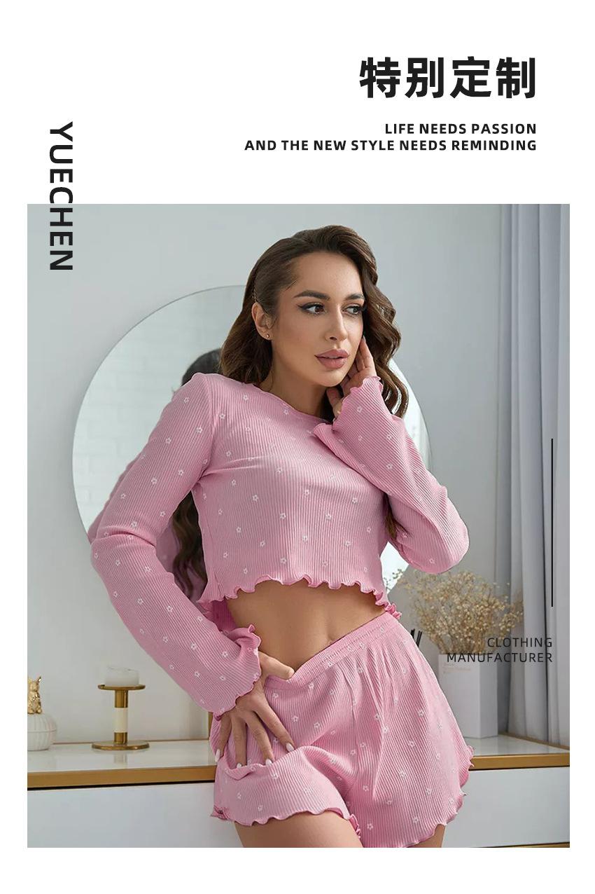 2024 Otoño e Invierno Europeos y Americanos Nueva Moda Cómoda Estampada Tejida Manga Larga Shorts Pijamas para Mujer Ropa de Casa Transfronteriza