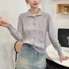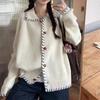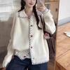 Suéter tipo cárdigan con solapa y diseño de sentido para mujer, otoño e invierno, nuevo, retro, suelto, adelgazante, de punto, parte superior exterior