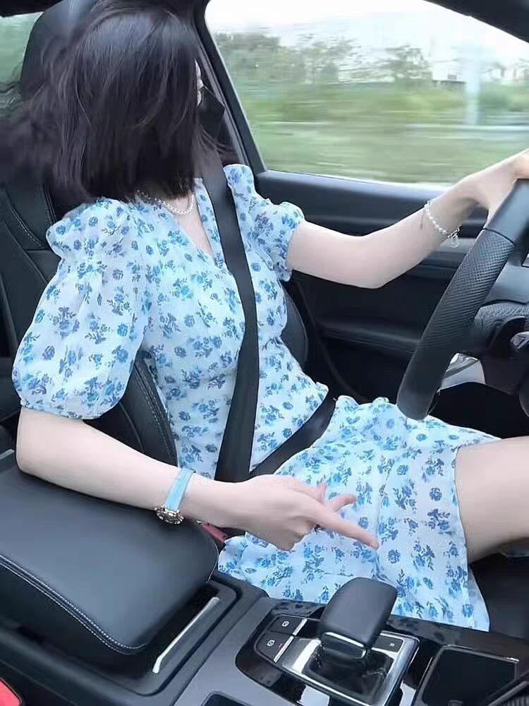 Vestido Fresco de Hada Estilo Francés Nuevo de Verano 2025, Elegante y que Reduce la Edad, Vestido Floral de Chifón Elegante y Adelgazante
