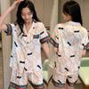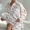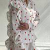 Moda Otoño 2024 Europea y Americana Estampado de Corazón con Borde de Loto de Manga Larga Ropa de Casa Casual Conjunto de Pijama con Shorts